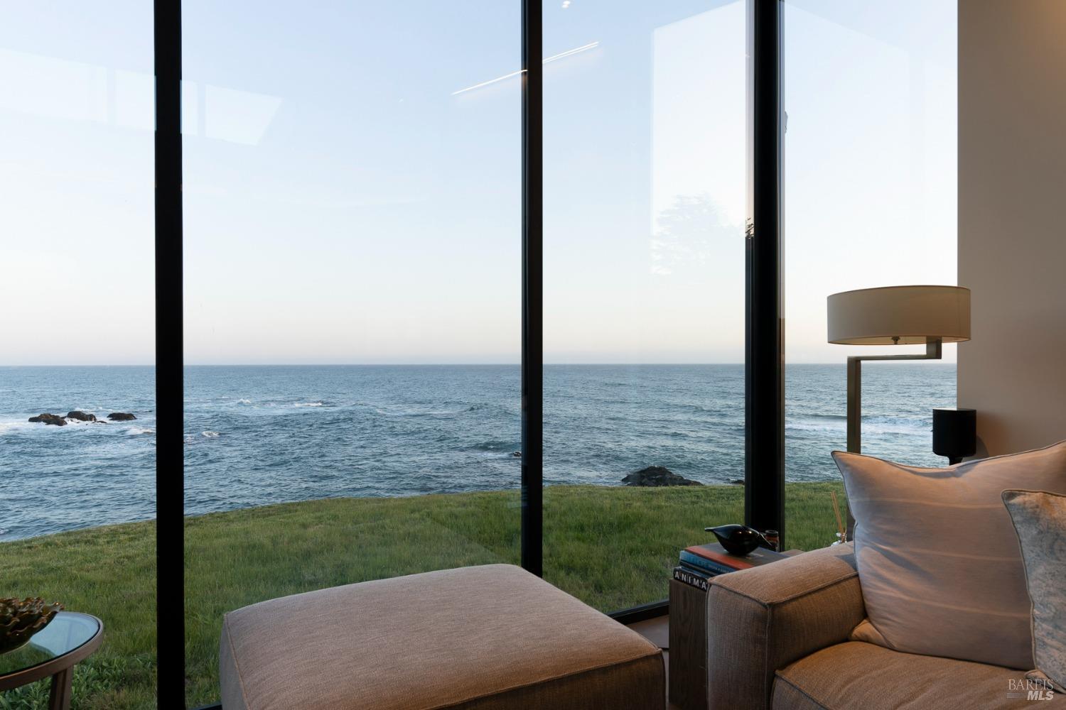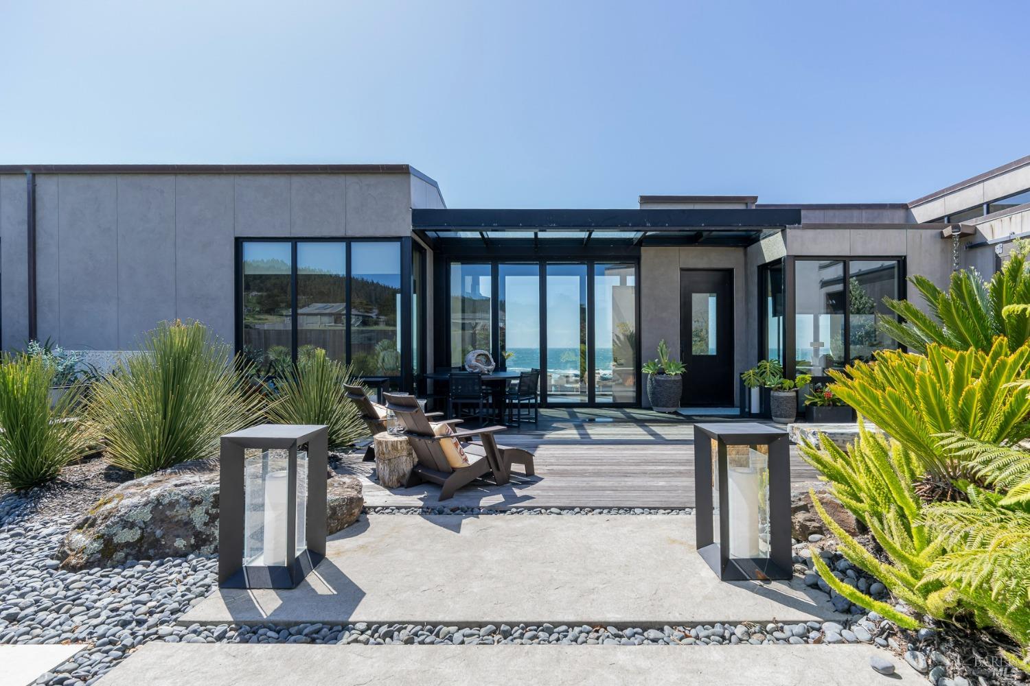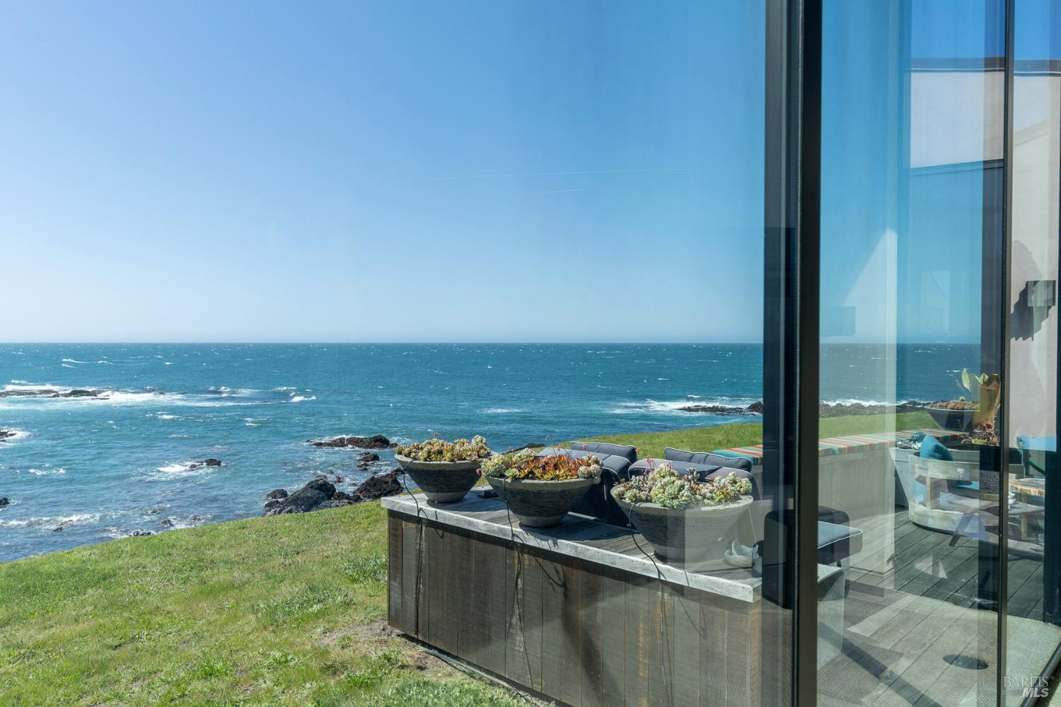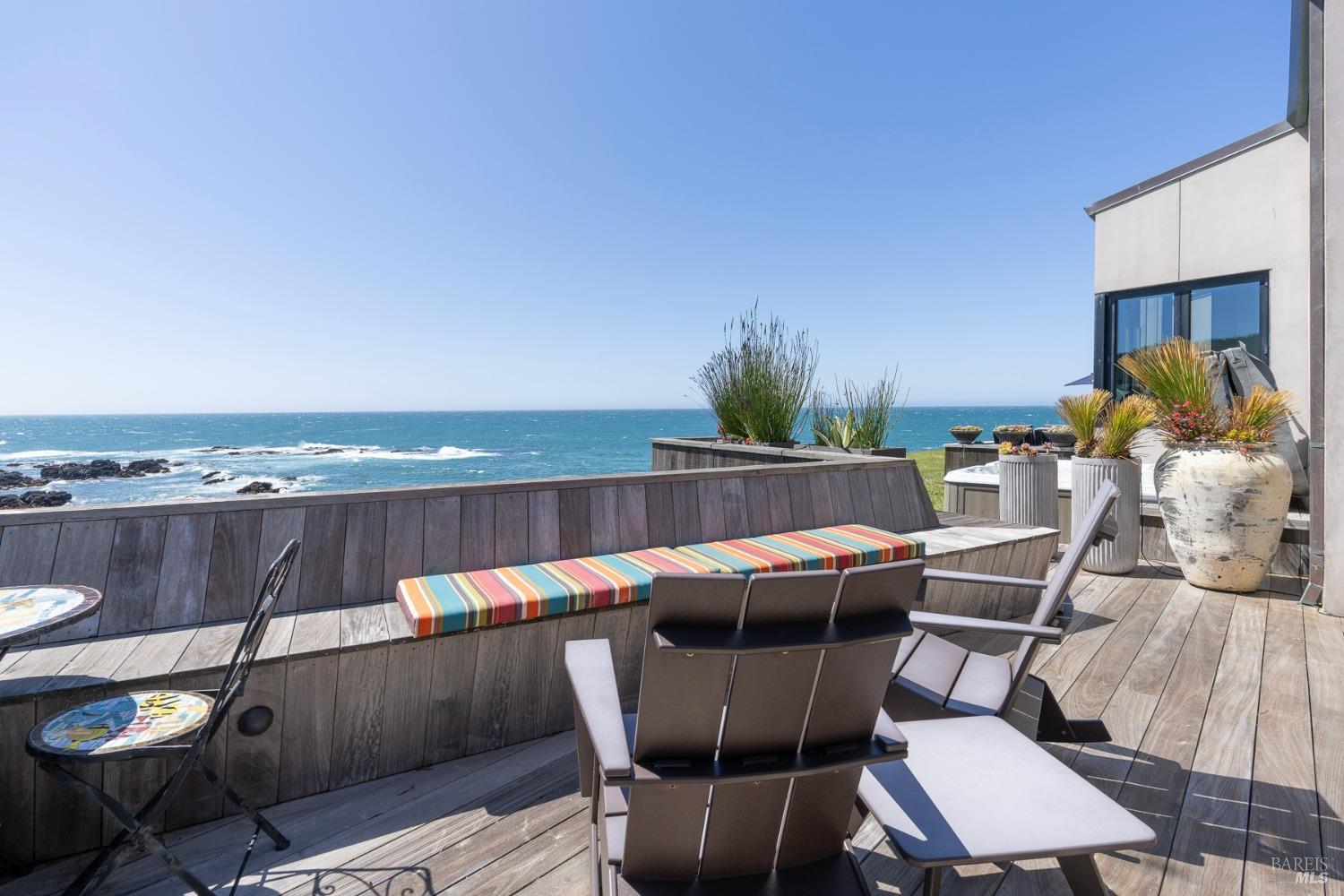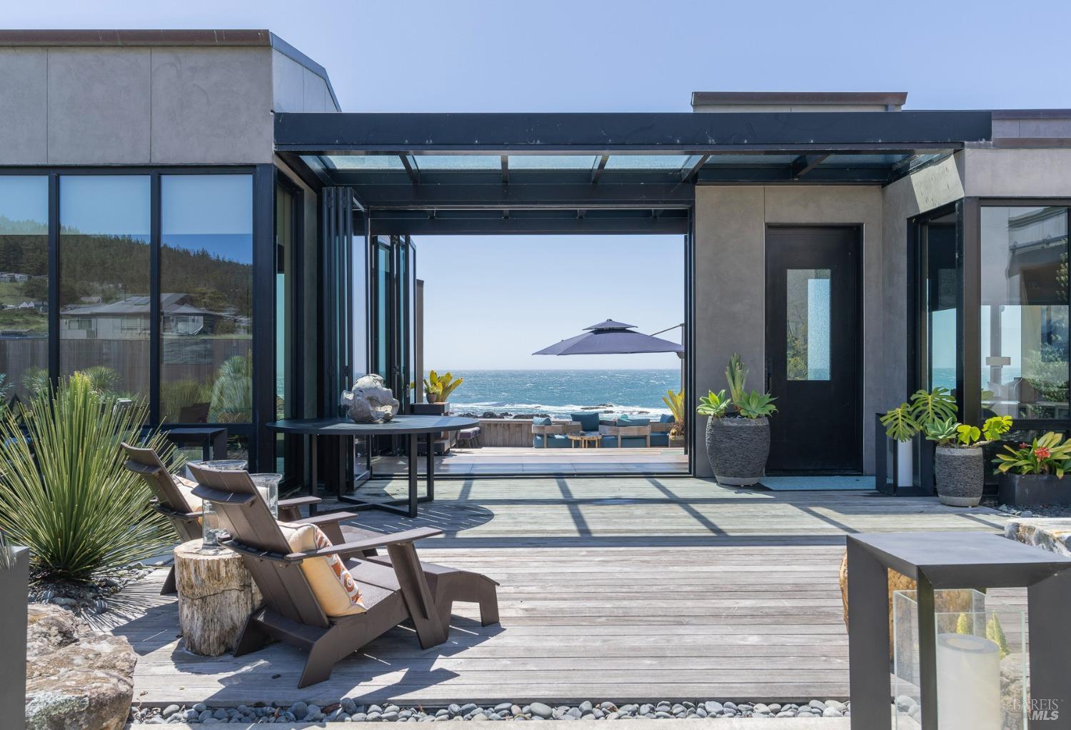 Experience coastal luxury with this ultra-custom 3-bed, 3.5-bath oceanfront masterpiece on a bluff top lot with unobstructed miles of Sonoma Coast whitewater views and no trail in front. The modern architecture features seamless indoor-outdoor flow from the beautifully landscaped courtyard, breezeway folding doors through the house to the expansive oceanfront deck ideal for entertaining or peaceful relaxation. Open concept living and dining areas are designed to maximize the breathtaking ocean views. The premium chef's kitchen is a culinary dream with Dacor and Sub-Zero appliances, custom cabinetry, and luxurious countertops. The primary bedroom suite features a cozy fireplace, a window seat and panoramic whitewater views. The spa-like primary bath has a deep soaking tub, glass-enclosed shower and white-water views from the sinks. Two large guest suites open to private ocean view decks with sitting nooks and built-in spa. Systems incl. high-quality LED lighting, in-floor radiant heating, whole-house generator, solar arrays, battery back-up walls, EV charger, high-quality low-maintenance concrete siding, copper roof and Ipe decks. This one-of-a-kind home is a true coastal sanctuary. This is more than a home; it's a lifestyle you can only find at The Sea Ranch.
