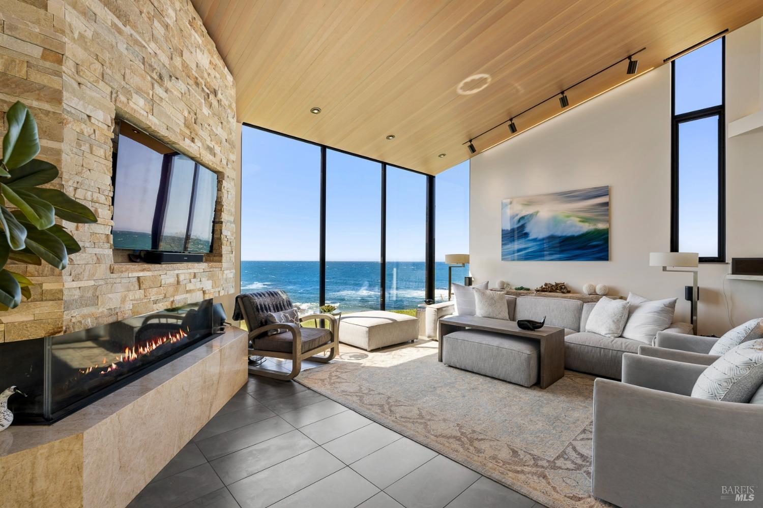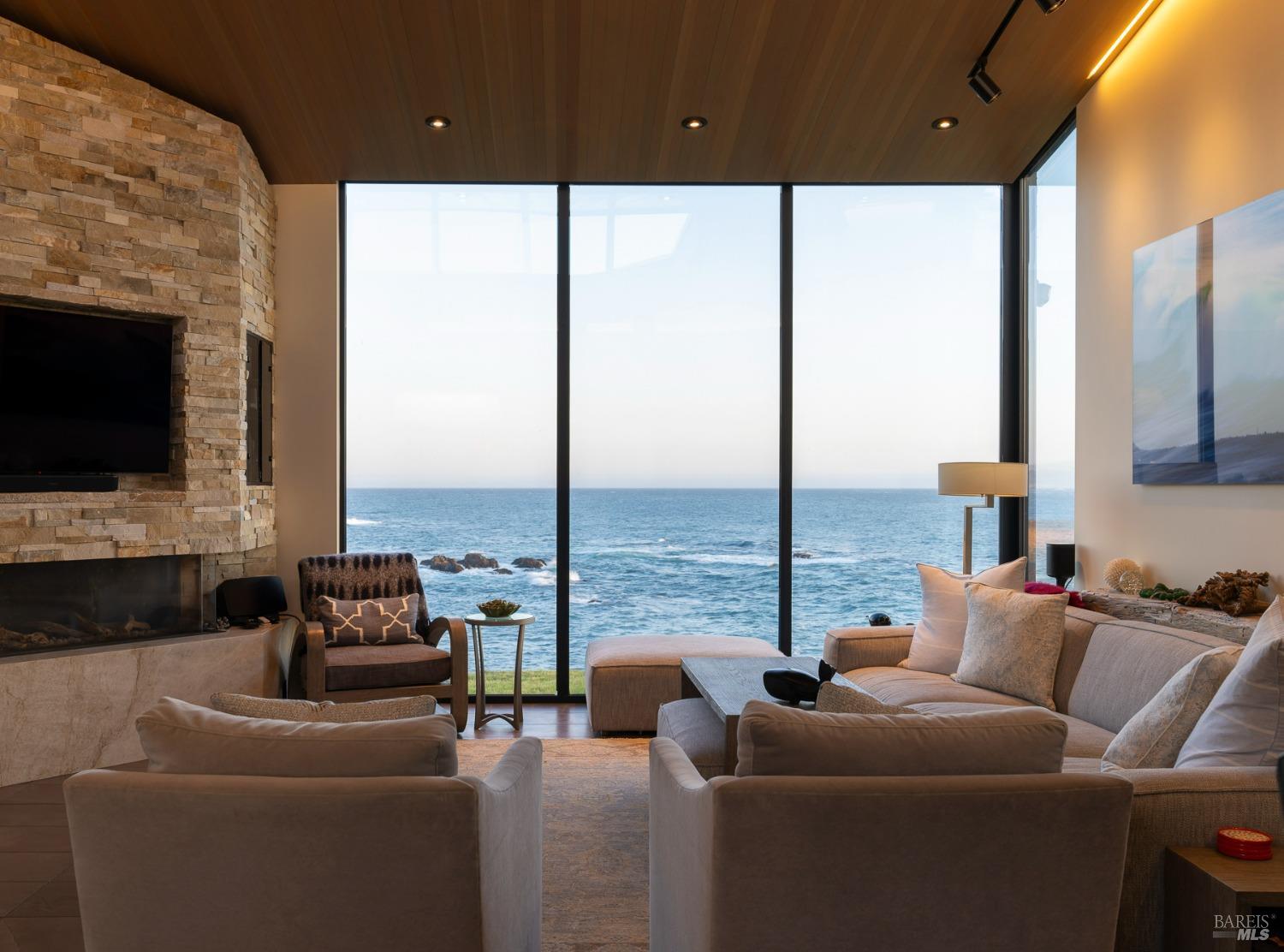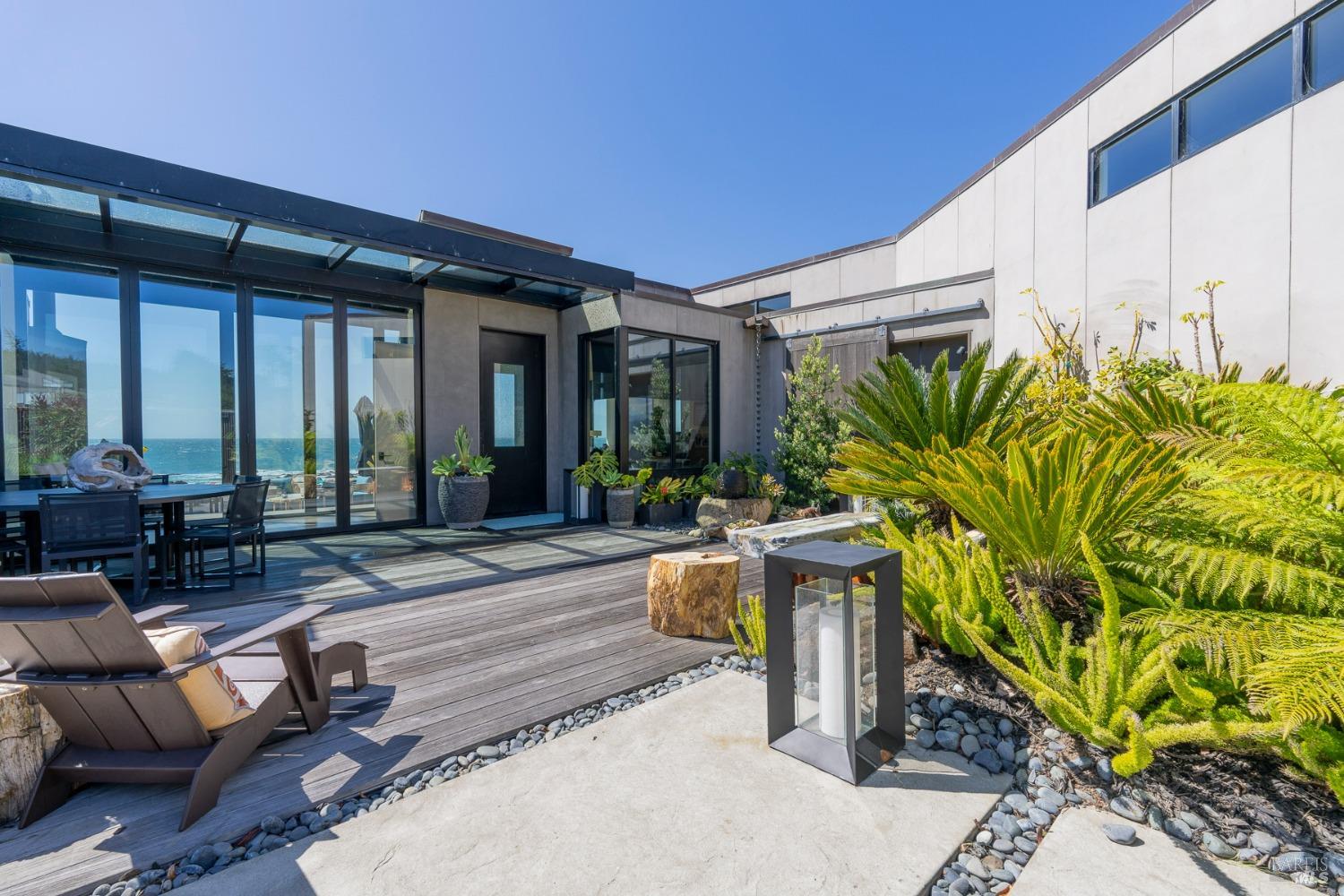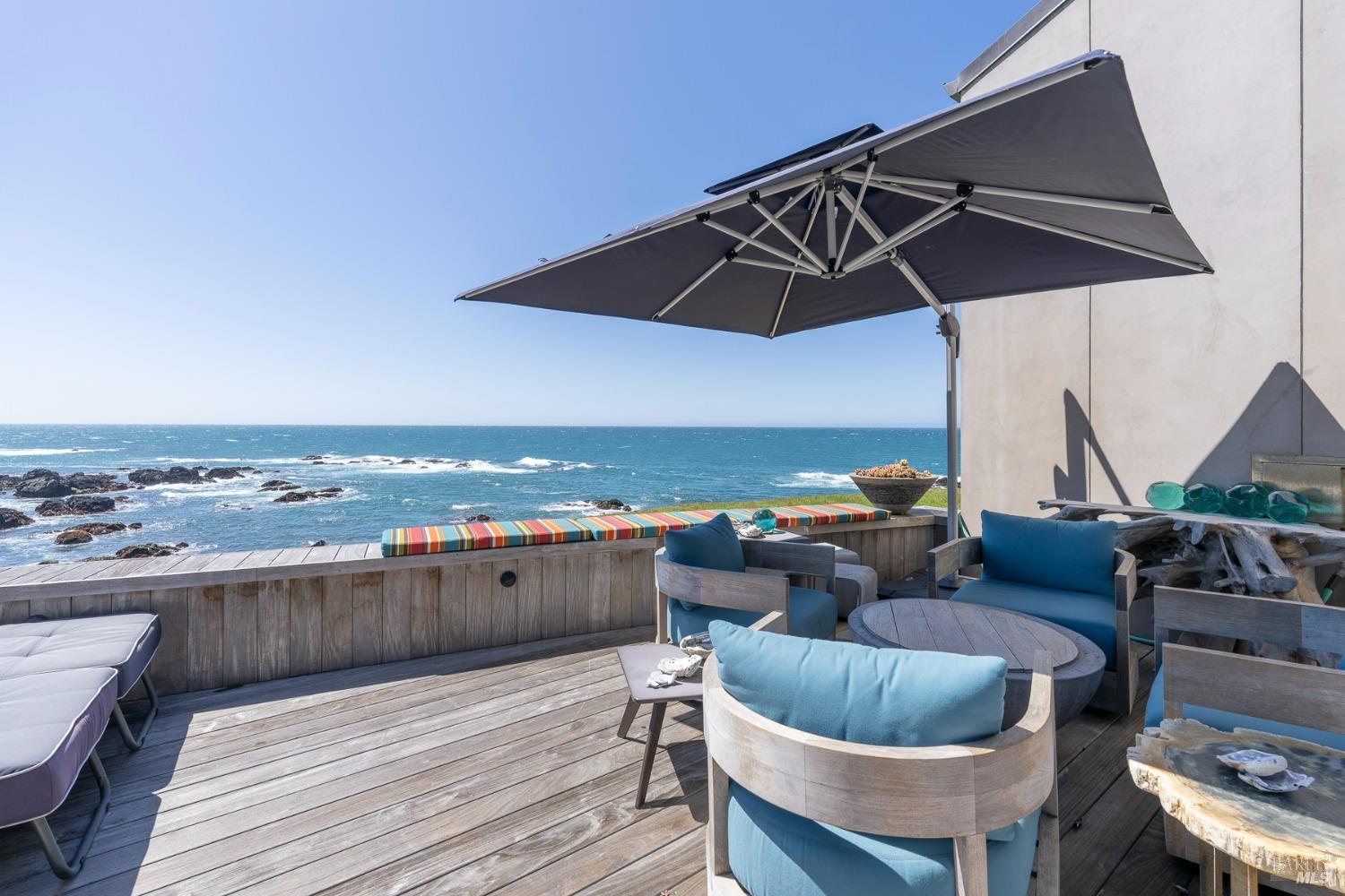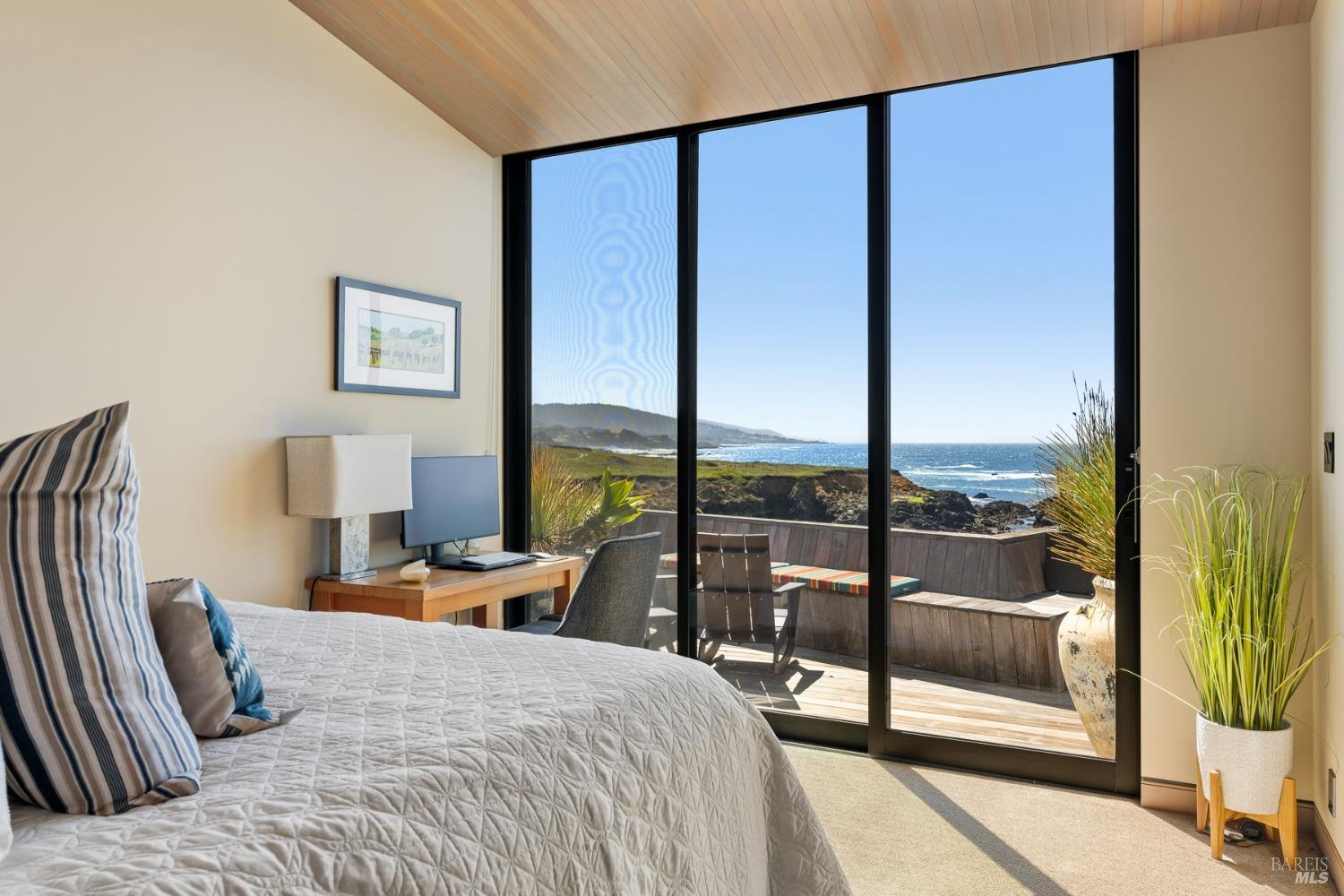 Experience coastal luxury with this ultra-custom 3-bed, 3.5-bath oceanfront masterpiece on a bluff top lot with unobstructed miles of Sonoma Coast whitewater views and no trail in front. The modern architecture features seamless indoor-outdoor flow from the beautifully landscaped courtyard, breezeway folding doors through the house to the expansive oceanfront deck ideal for entertaining or peaceful relaxation. Open concept living and dining areas are designed to maximize the breathtaking ocean views. The premium chef's kitchen is a culinary dream with Dacor and Sub-Zero appliances, custom cabinetry, and luxurious countertops. The primary bedroom suite features a cozy fireplace, a window seat and panoramic whitewater views. The spa-like primary bath has a deep soaking tub, glass-enclosed shower and white-water views from the sinks. Two large guest suites open to private ocean view decks with sitting nooks and built-in spa. Systems incl. high-quality LED lighting, in-floor radiant heating, whole-house generator, solar arrays, battery back-up walls, EV charger, high-quality low-maintenance concrete siding, copper roof and Ipe decks. This one-of-a-kind home is a true coastal sanctuary. This is more than a home; it's a lifestyle you can only find at The Sea Ranch.