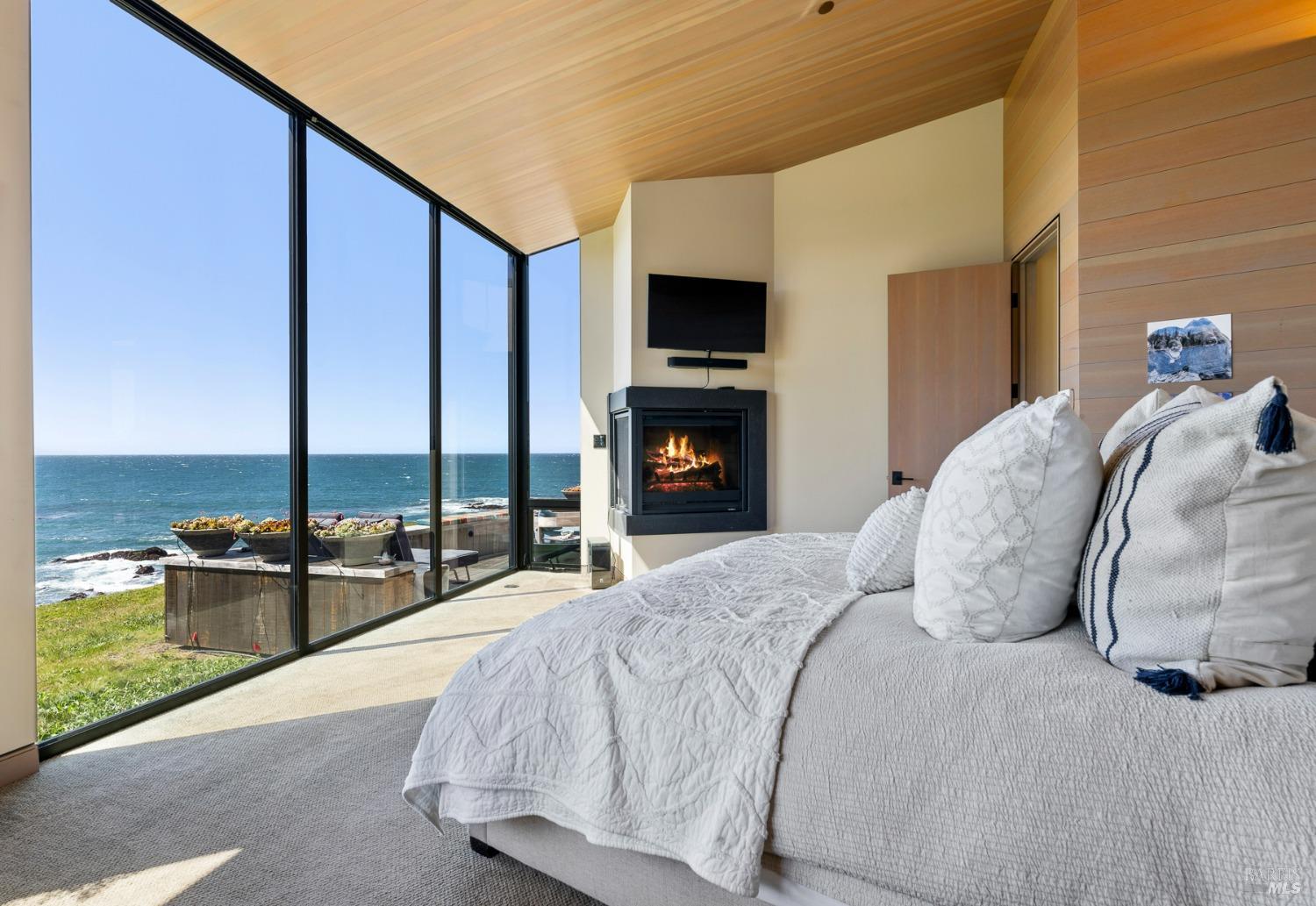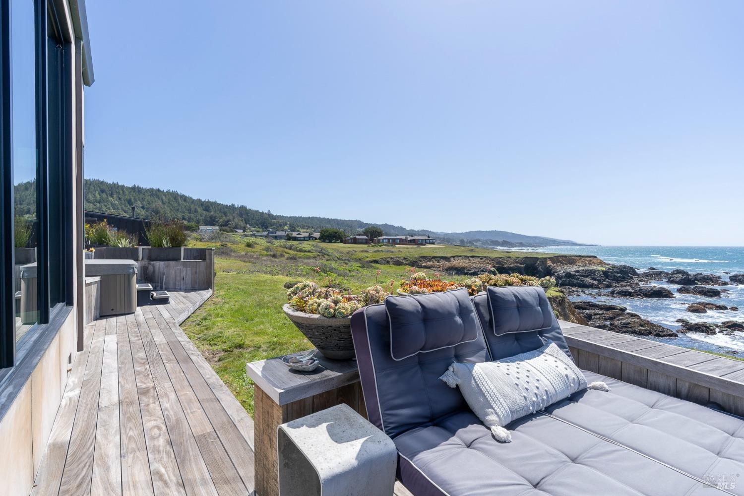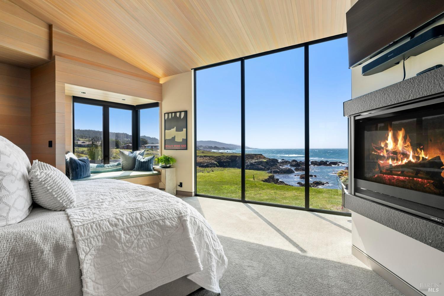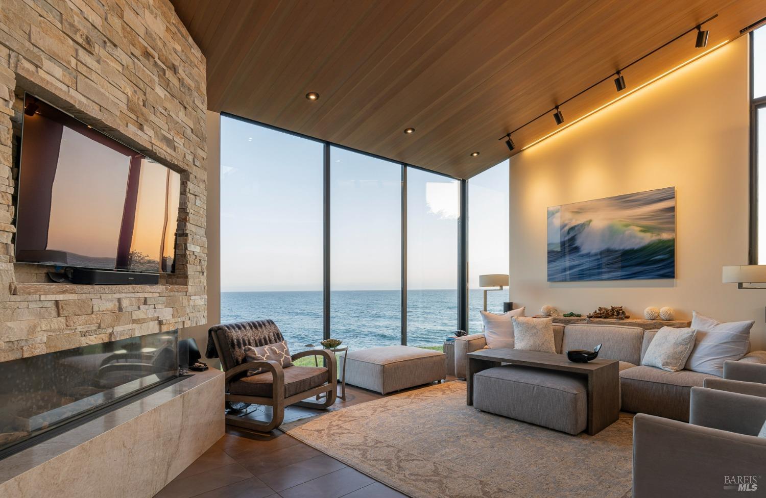 Experience coastal luxury with this ultra-custom 3-bed, 3.5-bath oceanfront masterpiece on a bluff top lot with unobstructed miles of Sonoma Coast whitewater views and no trail in front. The modern architecture features seamless indoor-outdoor flow from the beautifully landscaped courtyard, breezeway folding doors through the house to the expansive oceanfront deck ideal for entertaining or peaceful relaxation. Open concept living and dining areas are designed to maximize the breathtaking ocean views. The premium chef's kitchen is a culinary dream with Dacor and Sub-Zero appliances, custom cabinetry, and luxurious countertops. The primary bedroom suite features a cozy fireplace, a window seat and panoramic whitewater views. The spa-like primary bath has a deep soaking tub, glass-enclosed shower and white-water views from the sinks. Two large guest suites open to private ocean view decks with sitting nooks and built-in spa. Systems incl. high-quality LED lighting, in-floor radiant heating, whole-house generator, solar arrays, battery back-up walls, EV charger, high-quality low-maintenance concrete siding, copper roof and Ipe decks. This one-of-a-kind home is a true coastal sanctuary. This is more than a home; it's a lifestyle you can only find at The Sea Ranch.