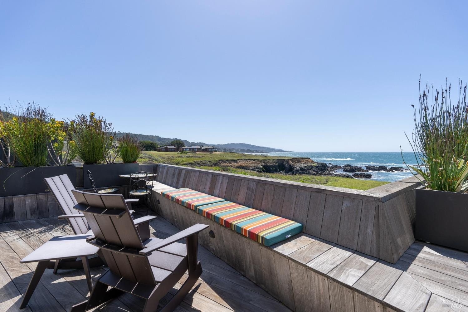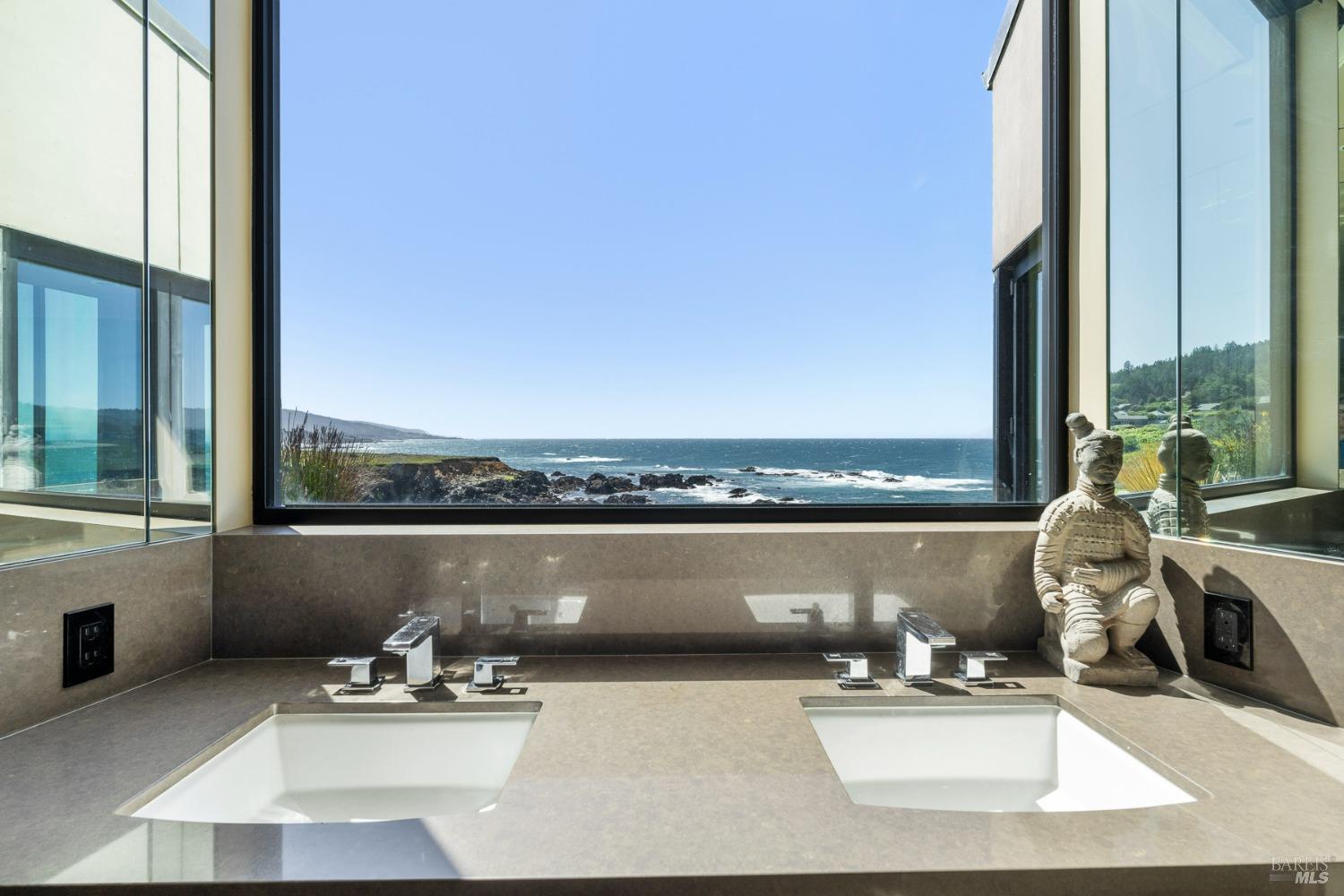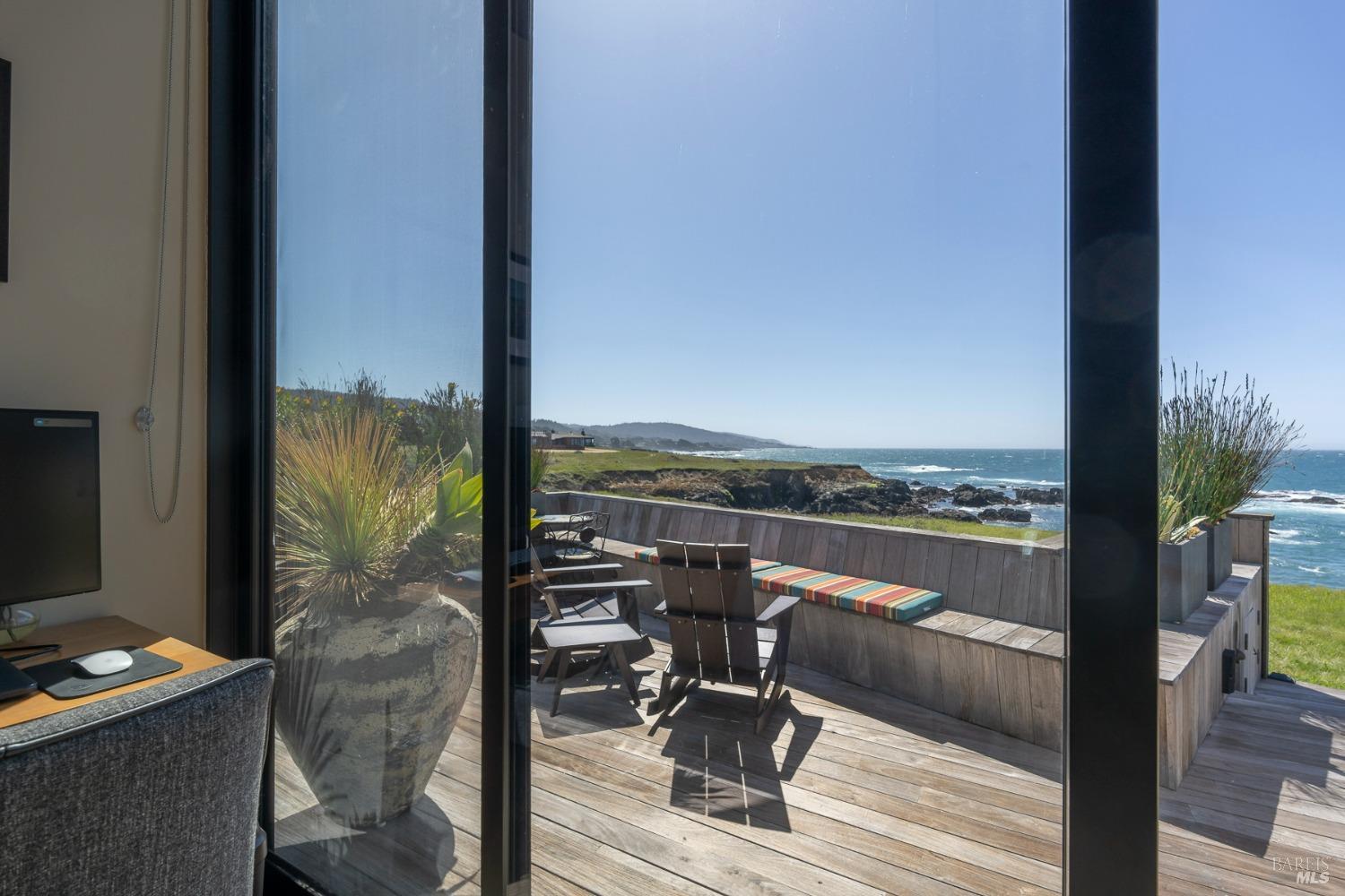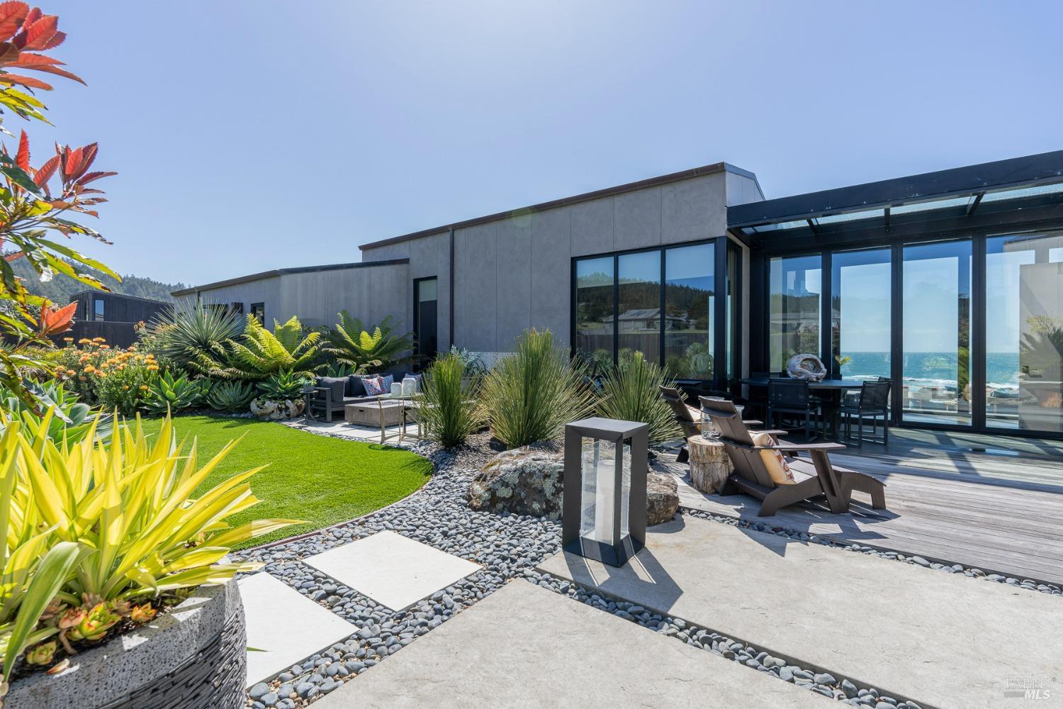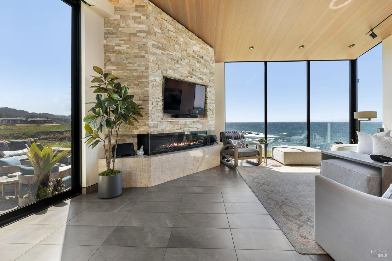 Experience coastal luxury with this ultra-custom 3-bed, 3.5-bath oceanfront masterpiece on a bluff top lot with unobstructed miles of Sonoma Coast whitewater views and no trail in front. The modern architecture features seamless indoor-outdoor flow from the beautifully landscaped courtyard, breezeway folding doors through the house to the expansive oceanfront deck ideal for entertaining or peaceful relaxation. Open concept living and dining areas are designed to maximize the breathtaking ocean views. The premium chef's kitchen is a culinary dream with Dacor and Sub-Zero appliances, custom cabinetry, and luxurious countertops. The primary bedroom suite features a cozy fireplace, a window seat and panoramic whitewater views. The spa-like primary bath has a deep soaking tub, glass-enclosed shower and white-water views from the sinks. Two large guest suites open to private ocean view decks with sitting nooks and built-in spa. Systems incl. high-quality LED lighting, in-floor radiant heating, whole-house generator, solar arrays, battery back-up walls, EV charger, high-quality low-maintenance concrete siding, copper roof and Ipe decks. This one-of-a-kind home is a true coastal sanctuary. This is more than a home; it's a lifestyle you can only find at The Sea Ranch.