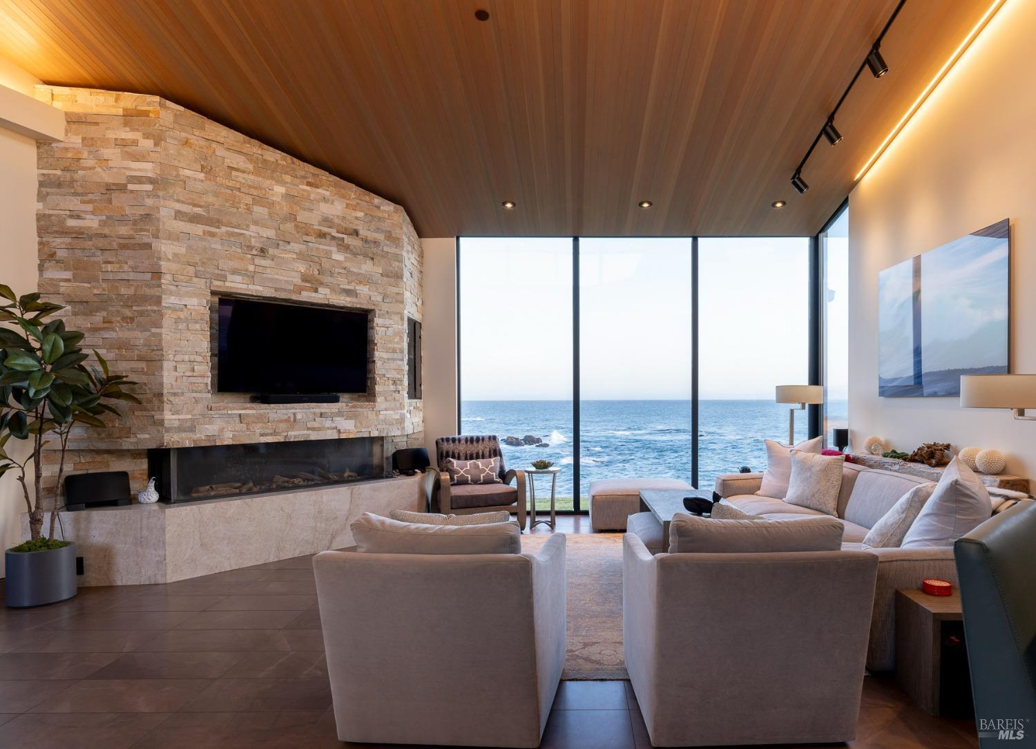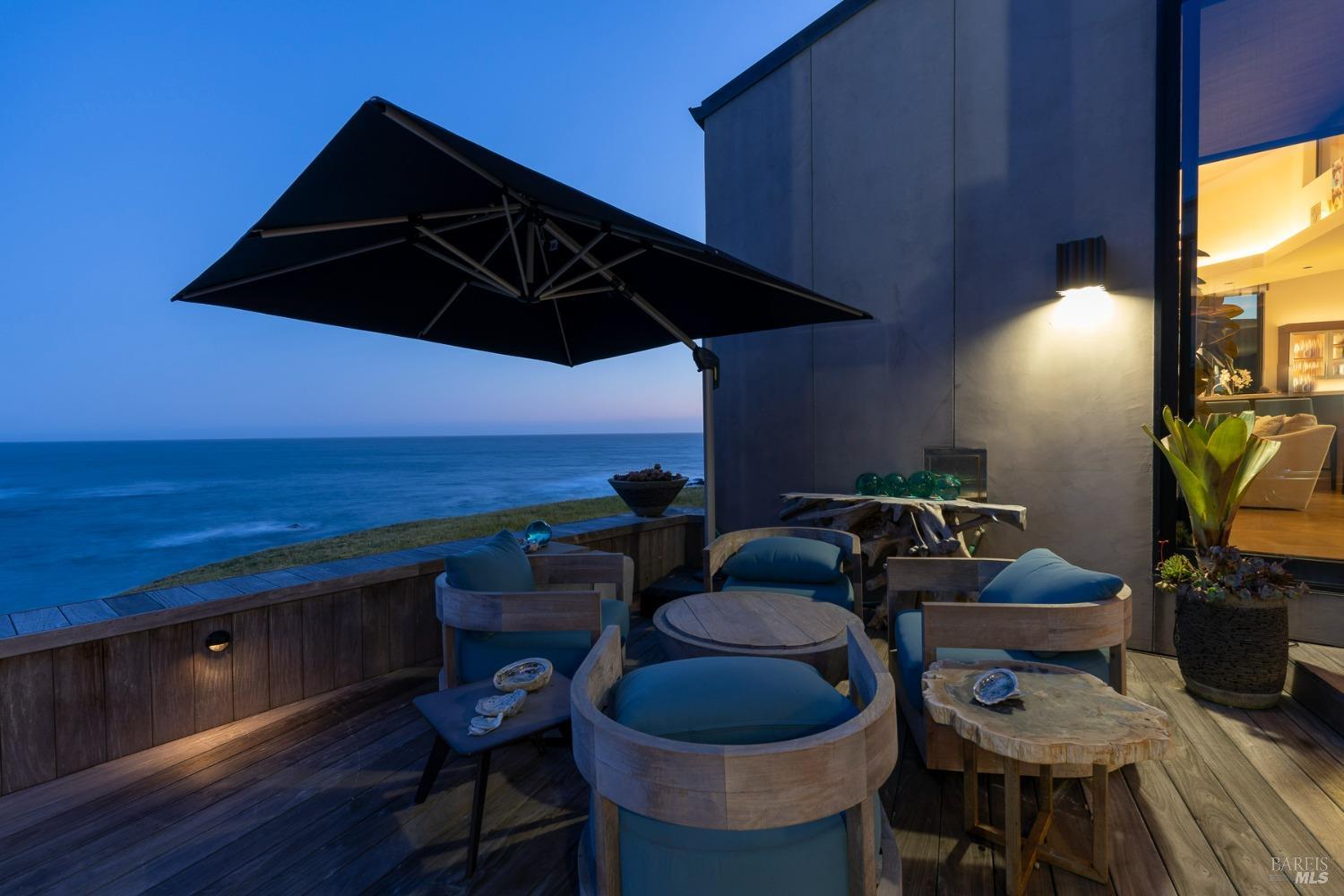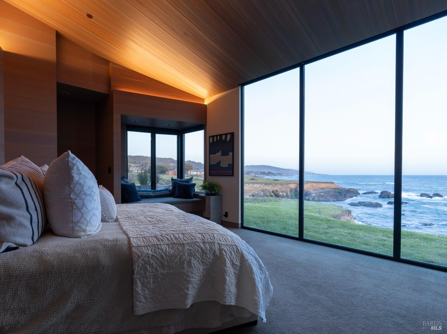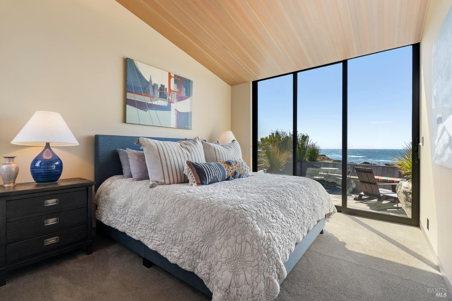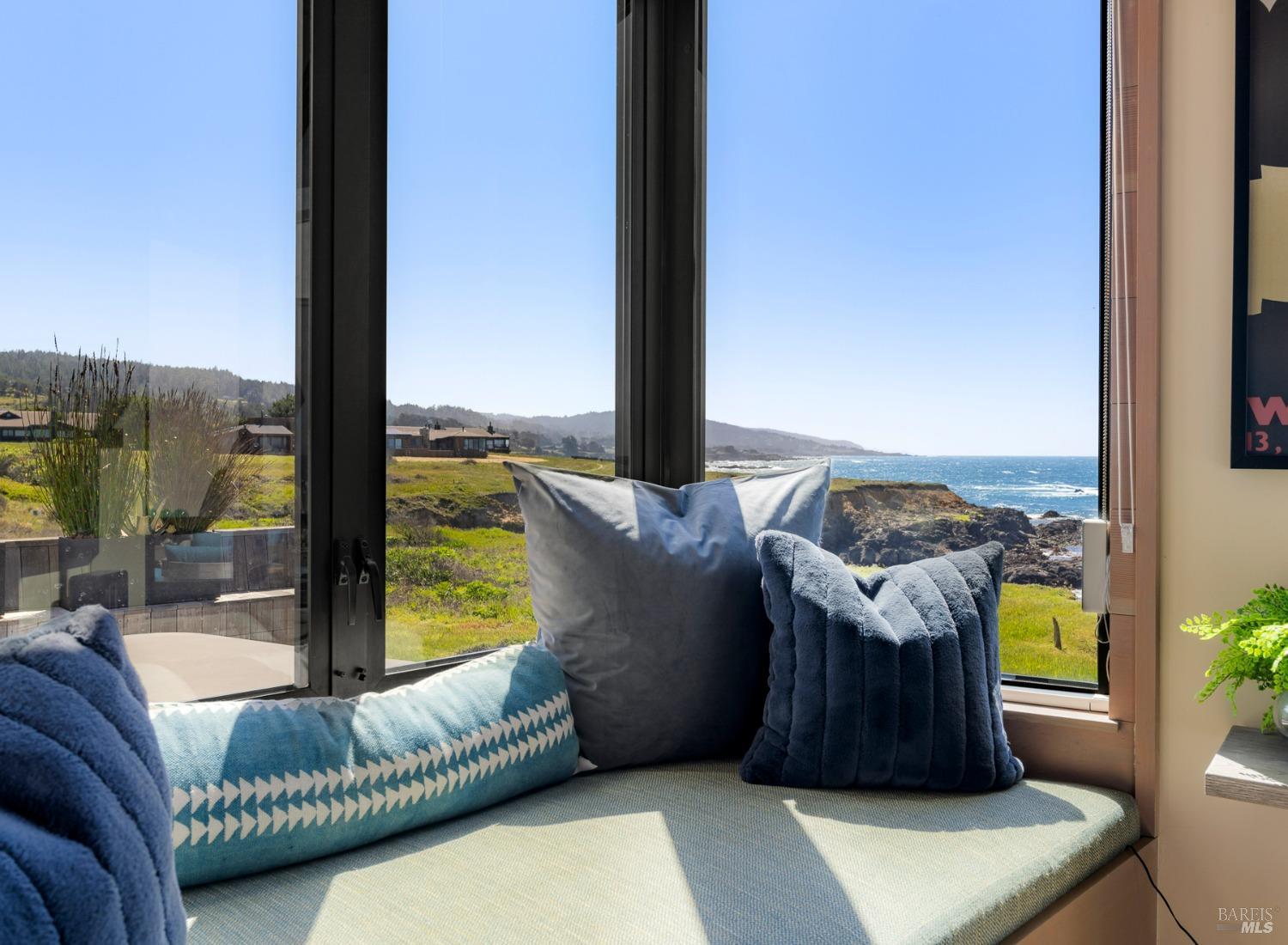 Experience coastal luxury with this ultra-custom 3-bed, 3.5-bath oceanfront masterpiece on a bluff top lot with unobstructed miles of Sonoma Coast whitewater views and no trail in front. The modern architecture features seamless indoor-outdoor flow from the beautifully landscaped courtyard, breezeway folding doors through the house to the expansive oceanfront deck ideal for entertaining or peaceful relaxation. Open concept living and dining areas are designed to maximize the breathtaking ocean views. The premium chef's kitchen is a culinary dream with Dacor and Sub-Zero appliances, custom cabinetry, and luxurious countertops. The primary bedroom suite features a cozy fireplace, a window seat and panoramic whitewater views. The spa-like primary bath has a deep soaking tub, glass-enclosed shower and white-water views from the sinks. Two large guest suites open to private ocean view decks with sitting nooks and built-in spa. Systems incl. high-quality LED lighting, in-floor radiant heating, whole-house generator, solar arrays, battery back-up walls, EV charger, high-quality low-maintenance concrete siding, copper roof and Ipe decks. This one-of-a-kind home is a true coastal sanctuary. This is more than a home; it's a lifestyle you can only find at The Sea Ranch.