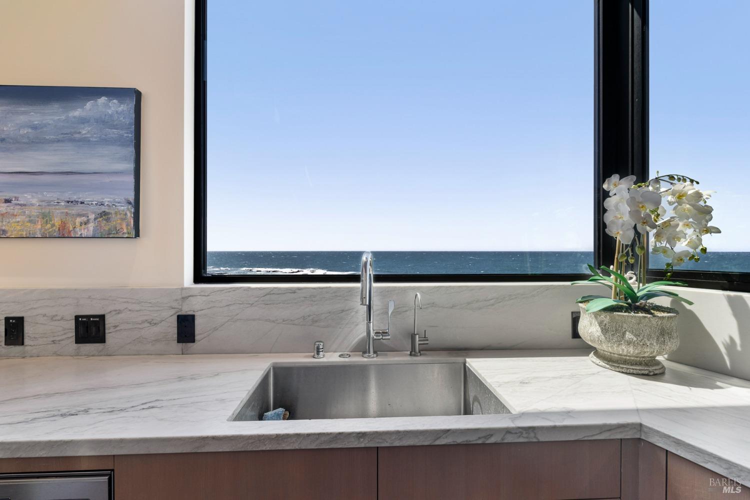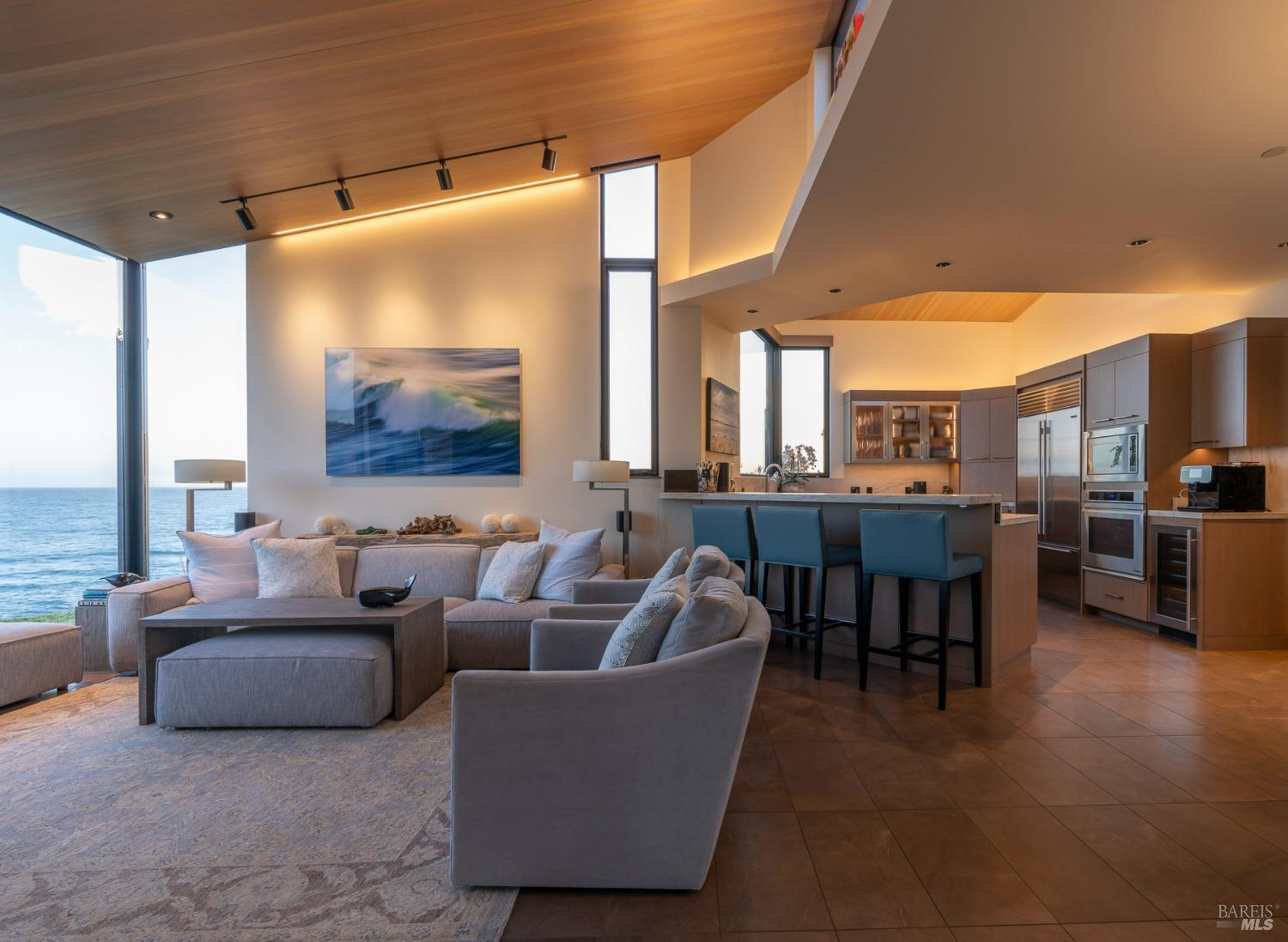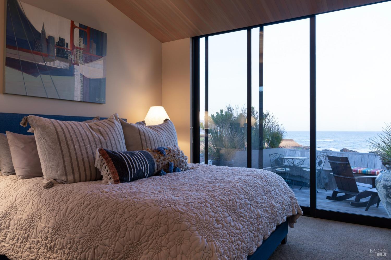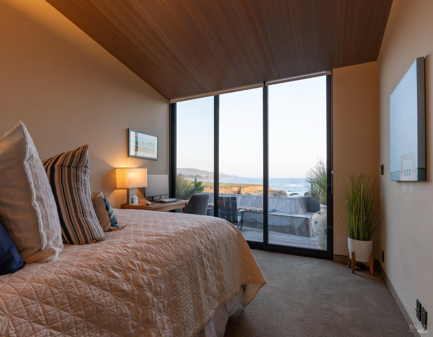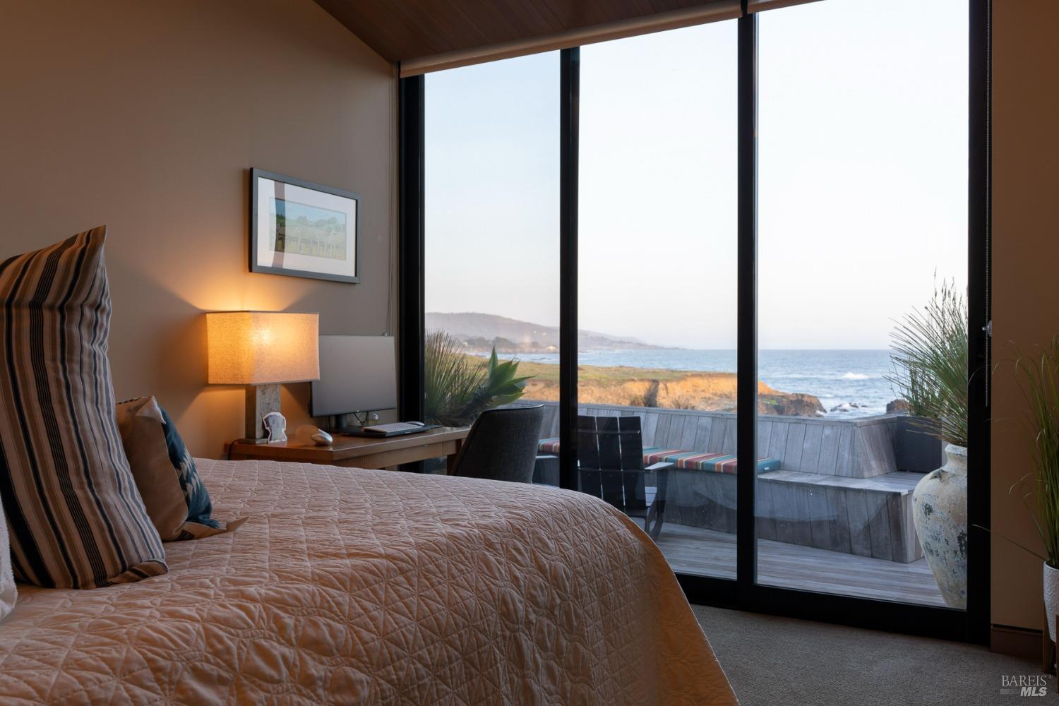 Experience coastal luxury with this ultra-custom 3-bed, 3.5-bath oceanfront masterpiece on a bluff top lot with unobstructed miles of Sonoma Coast whitewater views and no trail in front. The modern architecture features seamless indoor-outdoor flow from the beautifully landscaped courtyard, breezeway folding doors through the house to the expansive oceanfront deck ideal for entertaining or peaceful relaxation. Open concept living and dining areas are designed to maximize the breathtaking ocean views. The premium chef's kitchen is a culinary dream with Dacor and Sub-Zero appliances, custom cabinetry, and luxurious countertops. The primary bedroom suite features a cozy fireplace, a window seat and panoramic whitewater views. The spa-like primary bath has a deep soaking tub, glass-enclosed shower and white-water views from the sinks. Two large guest suites open to private ocean view decks with sitting nooks and built-in spa. Systems incl. high-quality LED lighting, in-floor radiant heating, whole-house generator, solar arrays, battery back-up walls, EV charger, high-quality low-maintenance concrete siding, copper roof and Ipe decks. This one-of-a-kind home is a true coastal sanctuary. This is more than a home; it's a lifestyle you can only find at The Sea Ranch.
