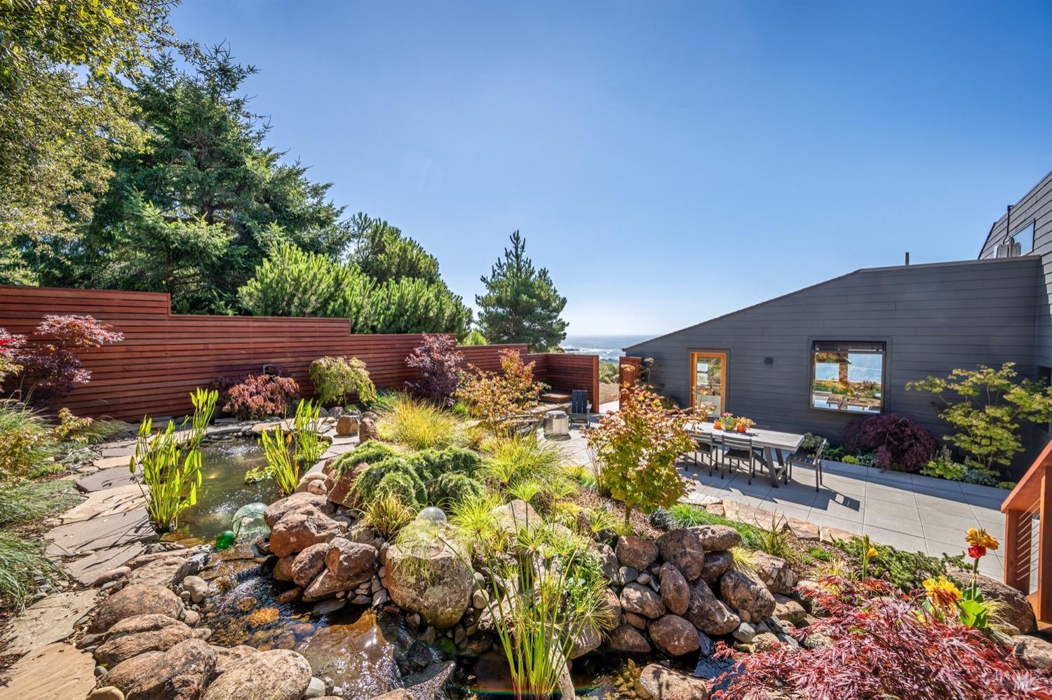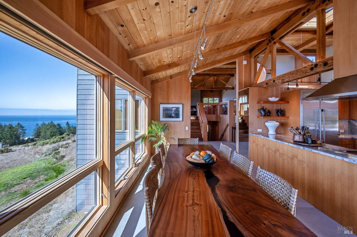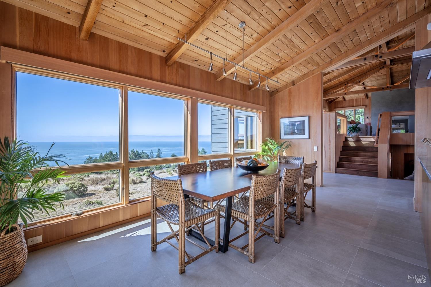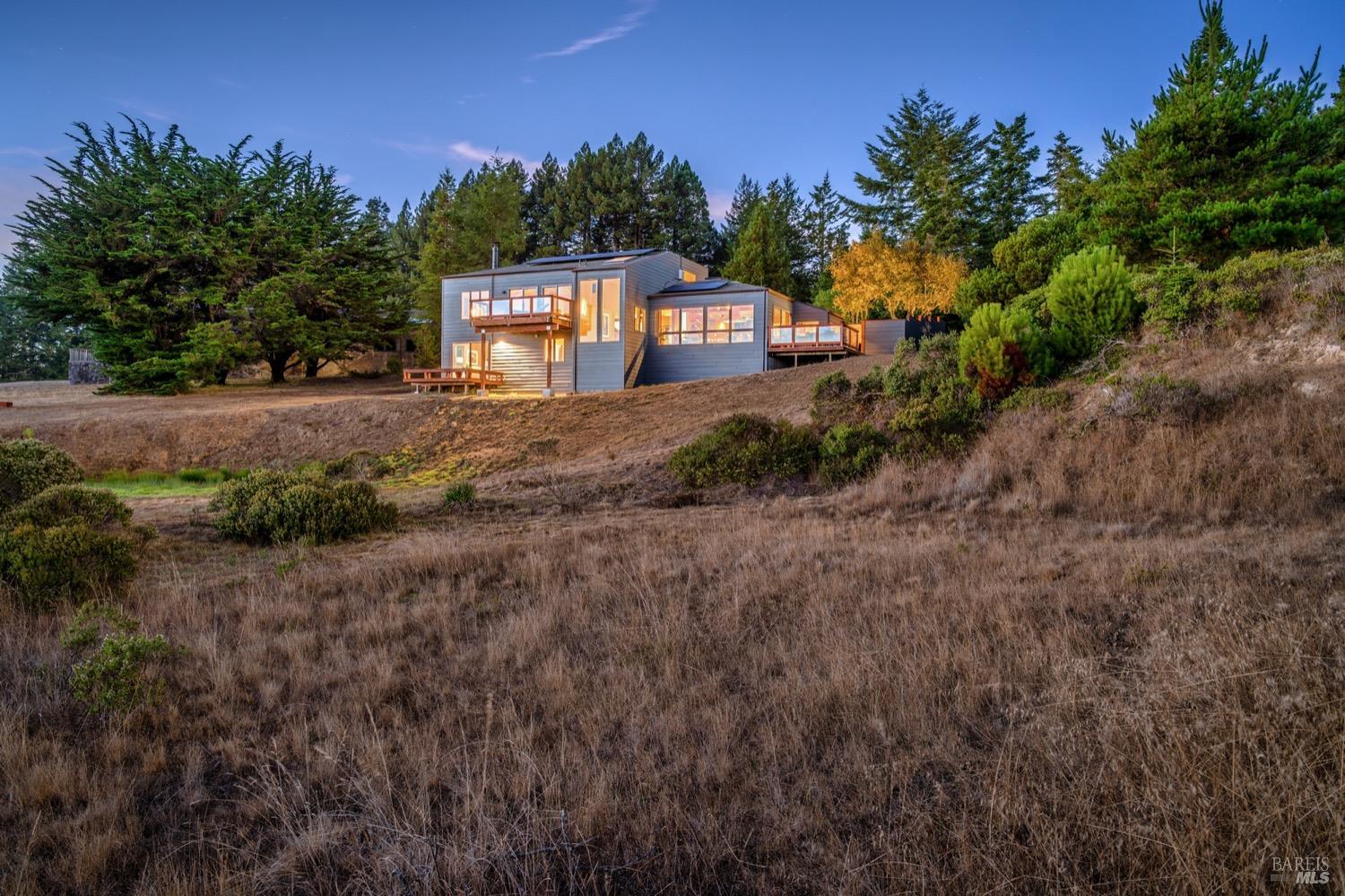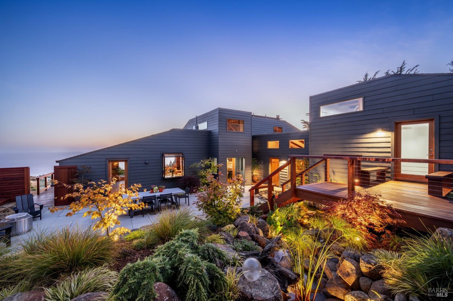 In 2023 this wonderful home was extensively remodeled and updated, using the finest materials and craftsmanship. One of the first Real Estate Brokers at The Sea Ranch who had his pick of building sites, chose 440 Drovers Close. This piece of Sea Ranch history, includes a 1.39-acre lot with breathtaking panoramic white and blue views including Black Point Beach to the South. Waves can be heard over the more than nine acres of Sea Ranch commons that add to the property's unmatched privacy. Legendary builder Ralph Jackson completed the renovation creating the classic Sea Ranch style and craftsmanship including many beautiful vertical grain fir walls. New kitchens and three new bathrooms with the highest quality appliances and fixtures make the inside of this home and its separate guest house as spectacular as the outside views. The main house features a large living room, dining room and kitchen that is ideal for sharing with friends and family, while being cozy enough for one or two. Unique to this property is a 3-car garage and a beautiful entry courtyard with Koi ponds, a custom walkway and stairs leading to an expansive wind-protected patio just outside the front door, and solar panels with the transferable higher rate structure that covers the home's electrical costs.