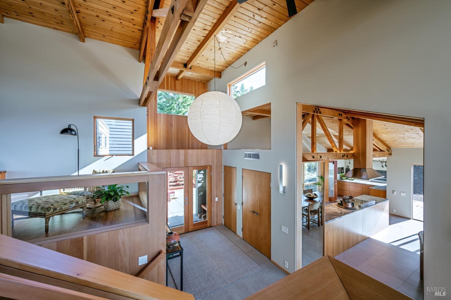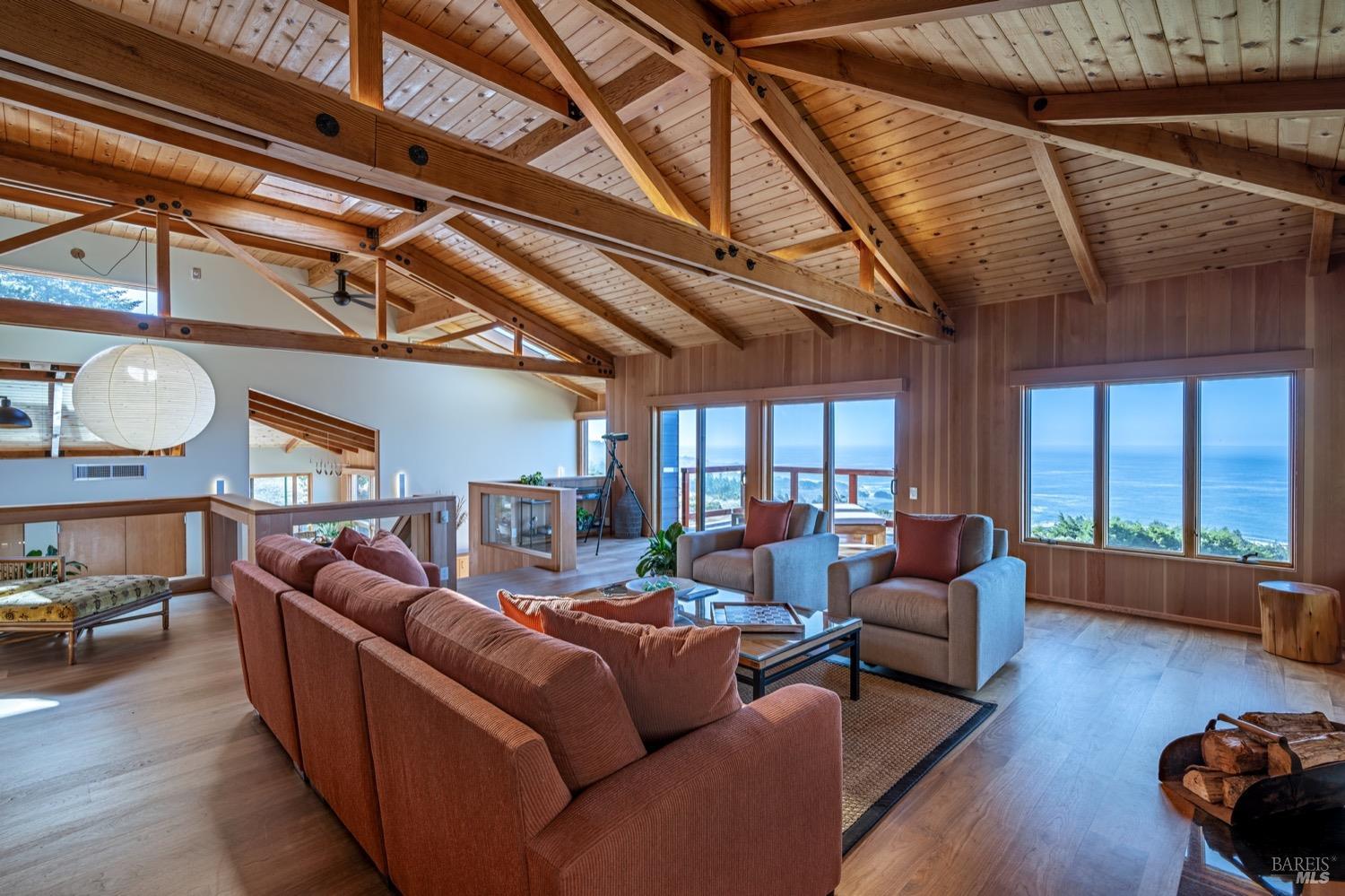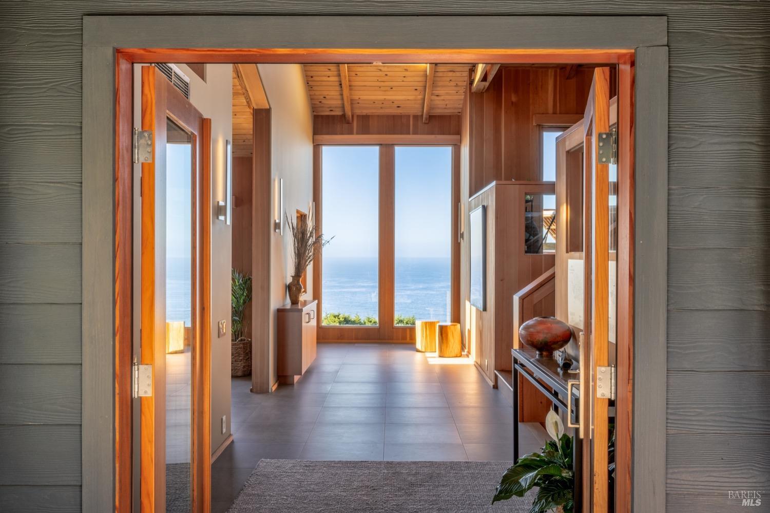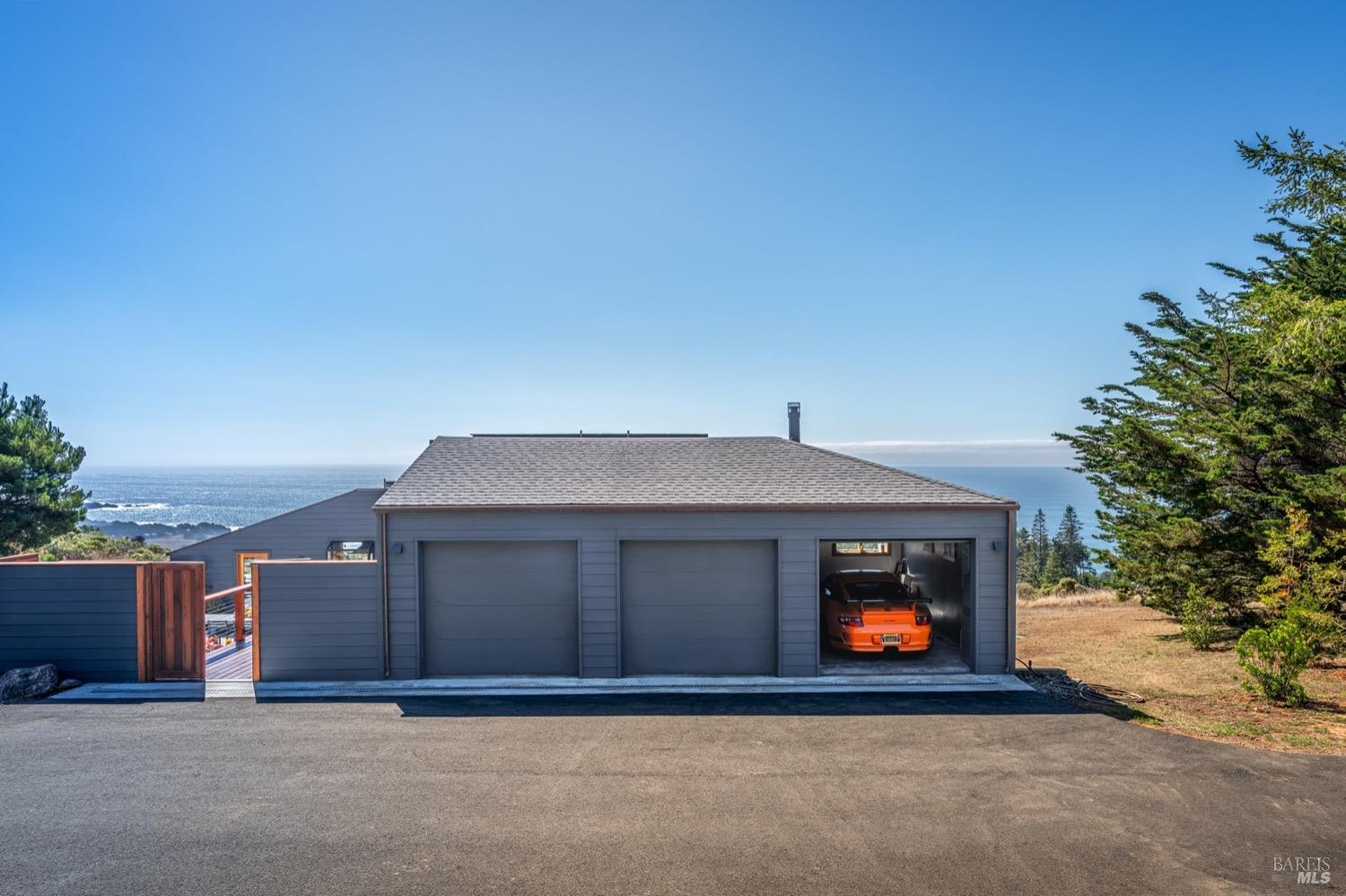 In 2023 this wonderful home was extensively remodeled and updated, using the finest materials and craftsmanship. One of the first Real Estate Brokers at The Sea Ranch who had his pick of building sites, chose 440 Drovers Close. This piece of Sea Ranch history, includes a 1.39-acre lot with breathtaking panoramic white and blue views including Black Point Beach to the South. Waves can be heard over the more than nine acres of Sea Ranch commons that add to the property's unmatched privacy. Legendary builder Ralph Jackson completed the renovation creating the classic Sea Ranch style and craftsmanship including many beautiful vertical grain fir walls. New kitchens and three new bathrooms with the highest quality appliances and fixtures make the inside of this home and its separate guest house as spectacular as the outside views. The main house features a large living room, dining room and kitchen that is ideal for sharing with friends and family, while being cozy enough for one or two. Unique to this property is a 3-car garage and a beautiful entry courtyard with Koi ponds, a custom walkway and stairs leading to an expansive wind-protected patio just outside the front door, and solar panels with the transferable higher rate structure that covers the home's electrical costs.