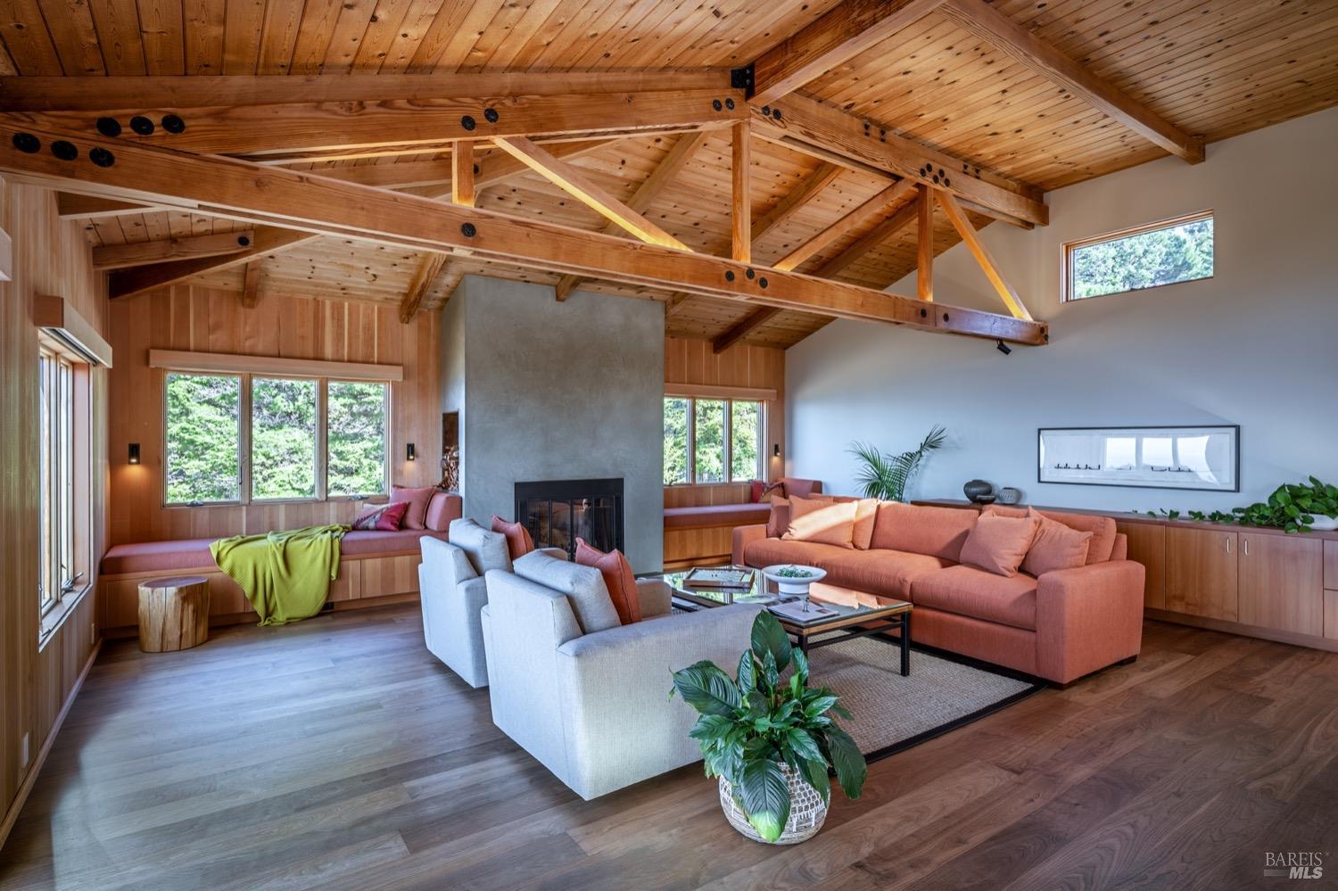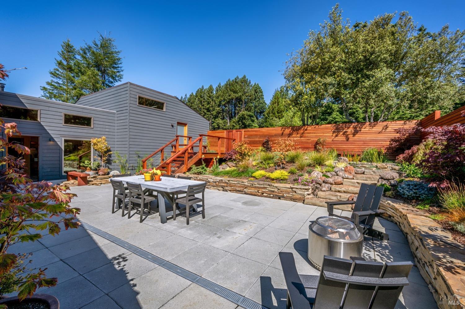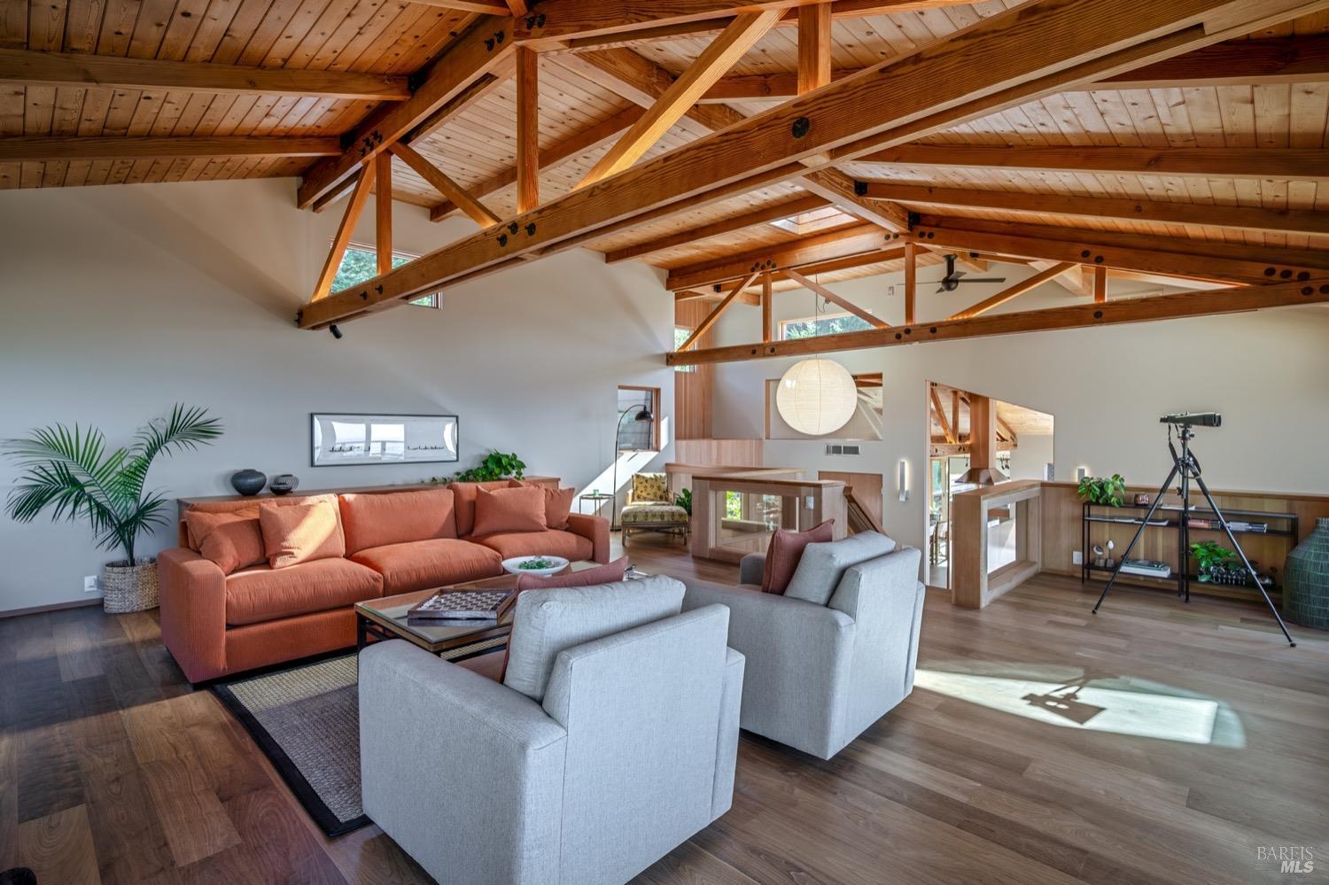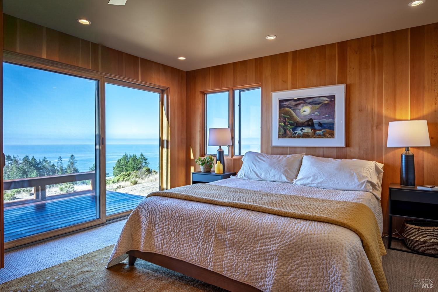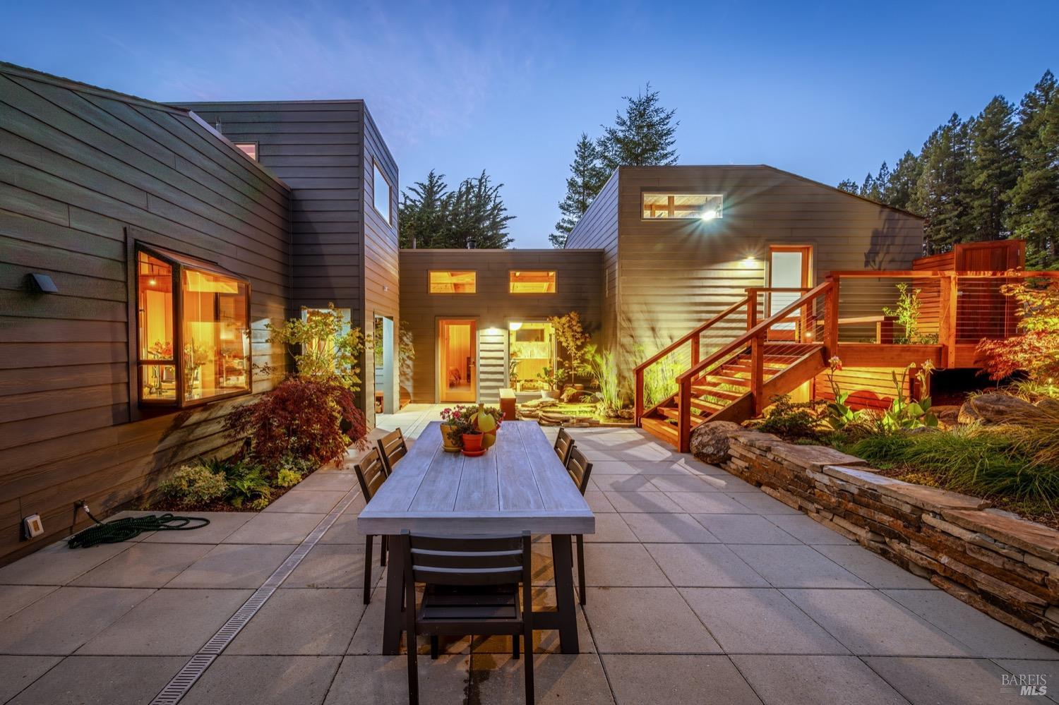 In 2023 this wonderful home was extensively remodeled and updated, using the finest materials and craftsmanship. One of the first Real Estate Brokers at The Sea Ranch who had his pick of building sites, chose 440 Drovers Close. This piece of Sea Ranch history, includes a 1.39-acre lot with breathtaking panoramic white and blue views including Black Point Beach to the South. Waves can be heard over the more than nine acres of Sea Ranch commons that add to the property's unmatched privacy. Legendary builder Ralph Jackson completed the renovation creating the classic Sea Ranch style and craftsmanship including many beautiful vertical grain fir walls. New kitchens and three new bathrooms with the highest quality appliances and fixtures make the inside of this home and its separate guest house as spectacular as the outside views. The main house features a large living room, dining room and kitchen that is ideal for sharing with friends and family, while being cozy enough for one or two. Unique to this property is a 3-car garage and a beautiful entry courtyard with Koi ponds, a custom walkway and stairs leading to an expansive wind-protected patio just outside the front door, and solar panels with the transferable higher rate structure that covers the home's electrical costs.