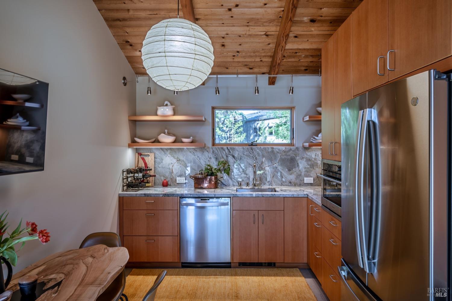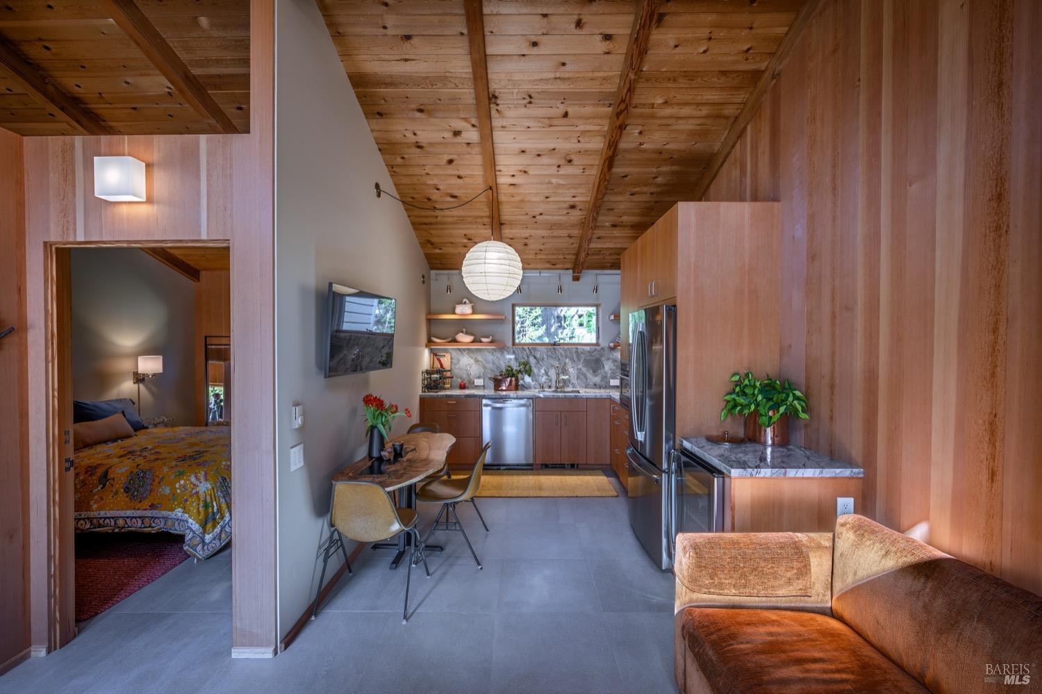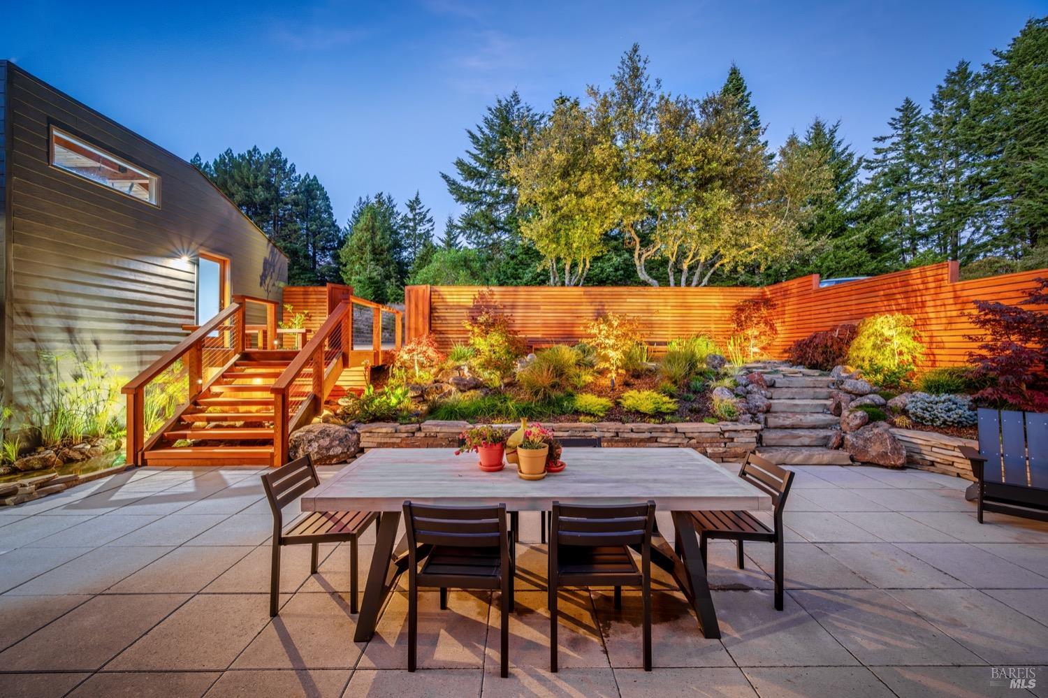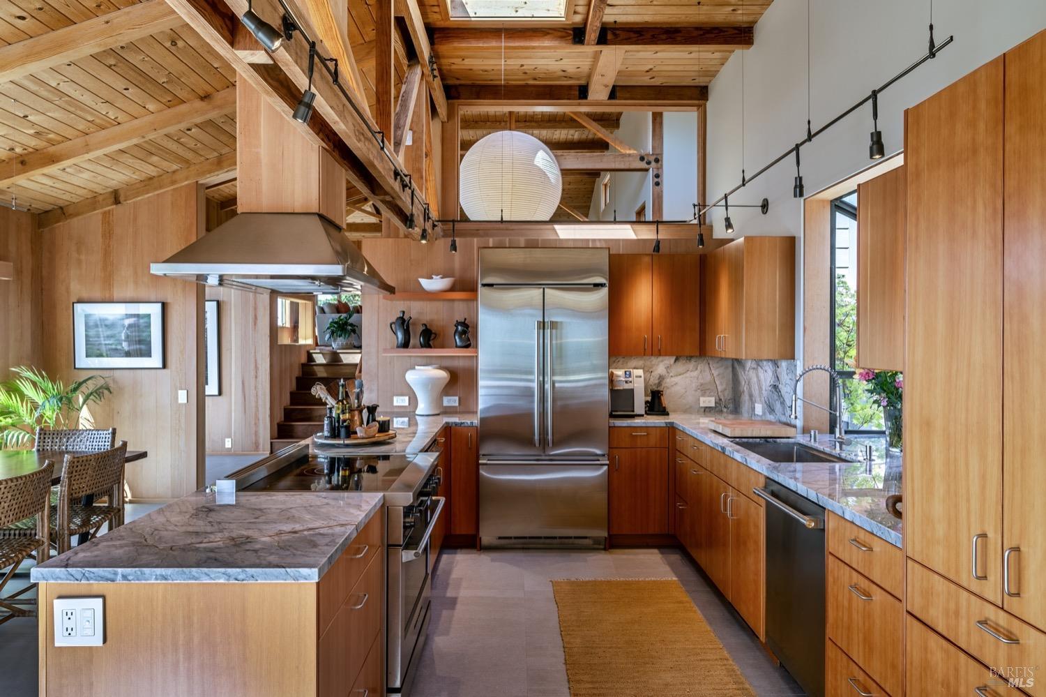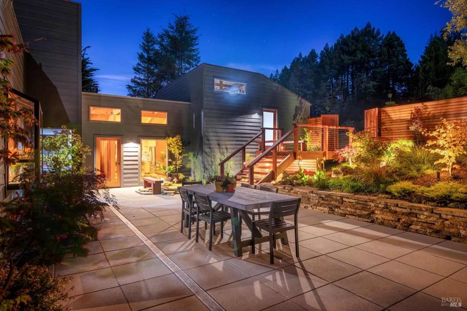 In 2023 this wonderful home was extensively remodeled and updated, using the finest materials and craftsmanship. One of the first Real Estate Brokers at The Sea Ranch who had his pick of building sites, chose 440 Drovers Close. This piece of Sea Ranch history, includes a 1.39-acre lot with breathtaking panoramic white and blue views including Black Point Beach to the South. Waves can be heard over the more than nine acres of Sea Ranch commons that add to the property's unmatched privacy. Legendary builder Ralph Jackson completed the renovation creating the classic Sea Ranch style and craftsmanship including many beautiful vertical grain fir walls. New kitchens and three new bathrooms with the highest quality appliances and fixtures make the inside of this home and its separate guest house as spectacular as the outside views. The main house features a large living room, dining room and kitchen that is ideal for sharing with friends and family, while being cozy enough for one or two. Unique to this property is a 3-car garage and a beautiful entry courtyard with Koi ponds, a custom walkway and stairs leading to an expansive wind-protected patio just outside the front door, and solar panels with the transferable higher rate structure that covers the home's electrical costs.