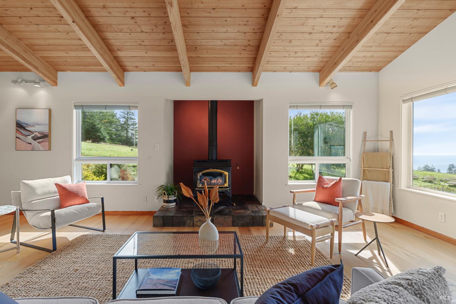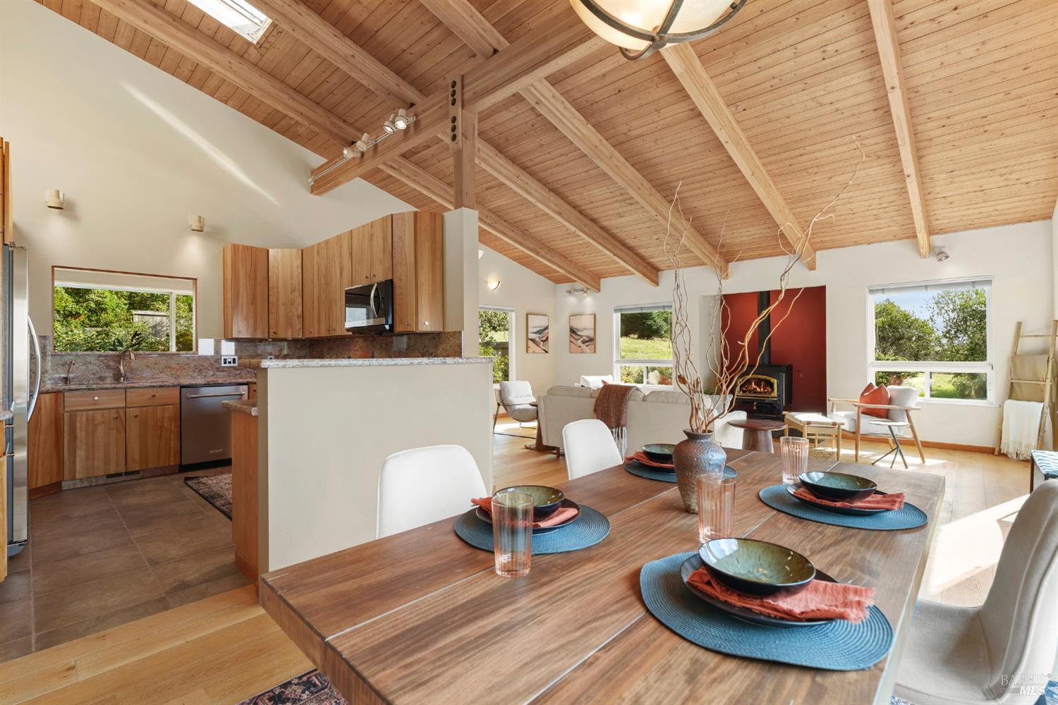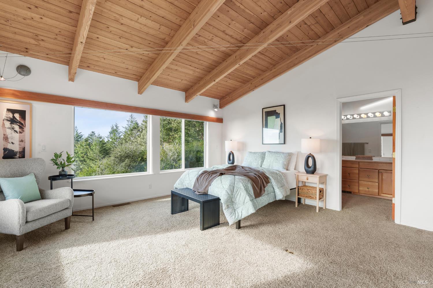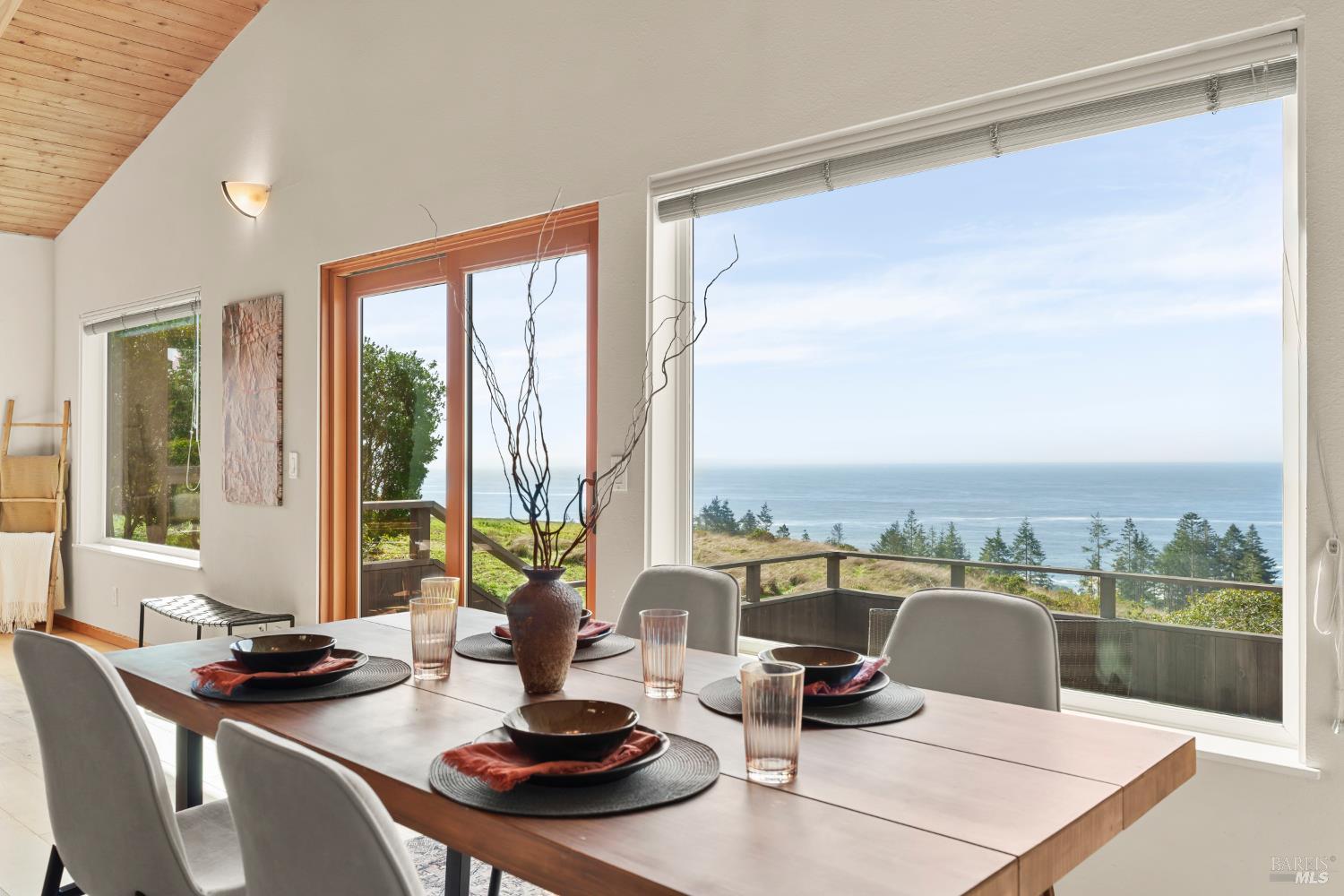 Nestled on a secluded hillside at The Sea Ranch, this property offers sweeping ocean views to the southwest and captivating white water surf directly to the west. The home is buffered by redwoods and commons to the north, while to the south, it overlooks a grassy meadow that's also part of commons. A welcoming Sunroom serves as the perfect transition from the tranquil outdoor environment into the home's warm and inviting interior. Inside, you'll find wood finishes and vaulted ceilings that create a cozy, spacious atmosphere. The Kitchen is appointed with granite countertops, adding both style and functionality. The desirable layout features three bedrooms, two of which are primary en-suite bedrooms, providing privacy and comfort. The oversized two-car garage offers ample storage space. Adjacent to the garage, a light-filled workshop provides additional space for creative or practical endeavors. High-speed internet by Sea Ranch Connect, makes remote work seamless and reliable. Residents have access to over 50 miles of scenic hiking trails, as well as recreation centers equipped with heated swimming pools, tennis courts, and saunas. Located approx 110 miles north of the Golden Gate Bridge along the Sonoma Coast, discover the unique lifestyle and natural beauty of The Sea Ranch.