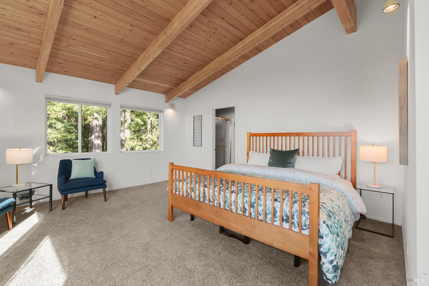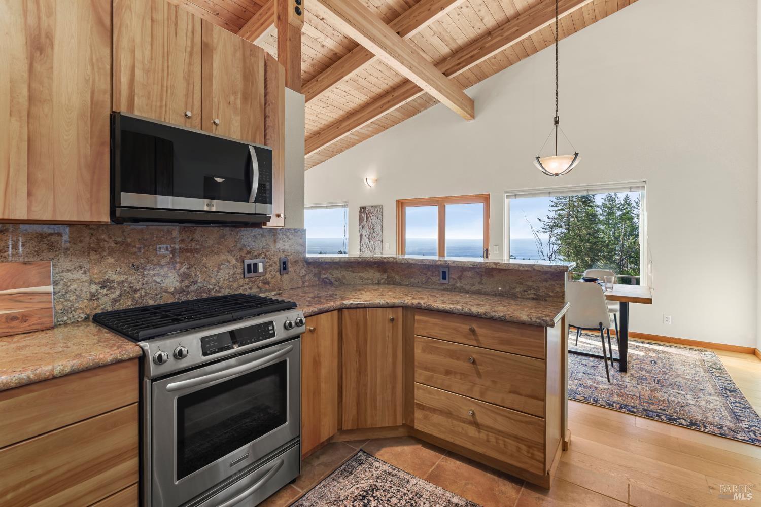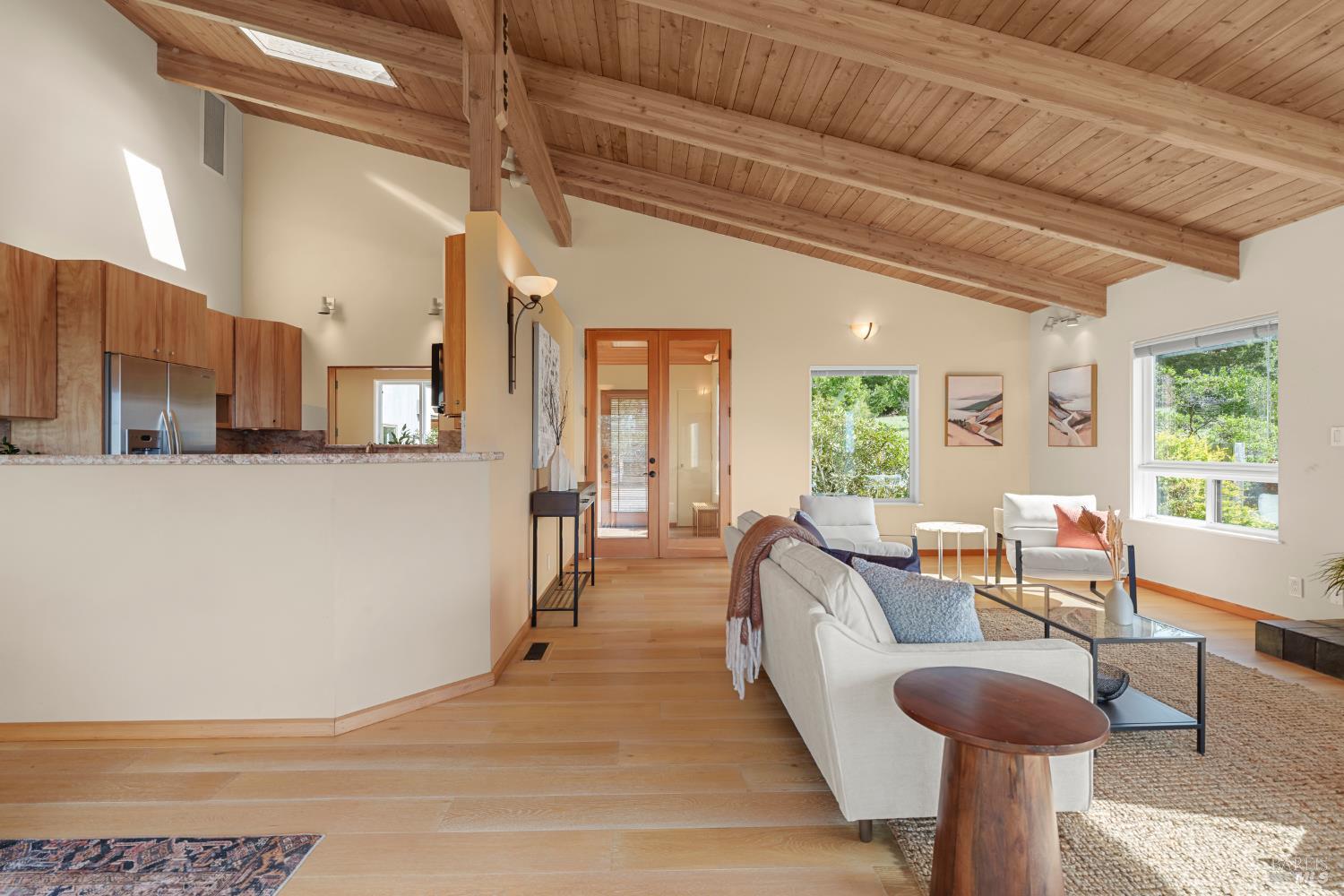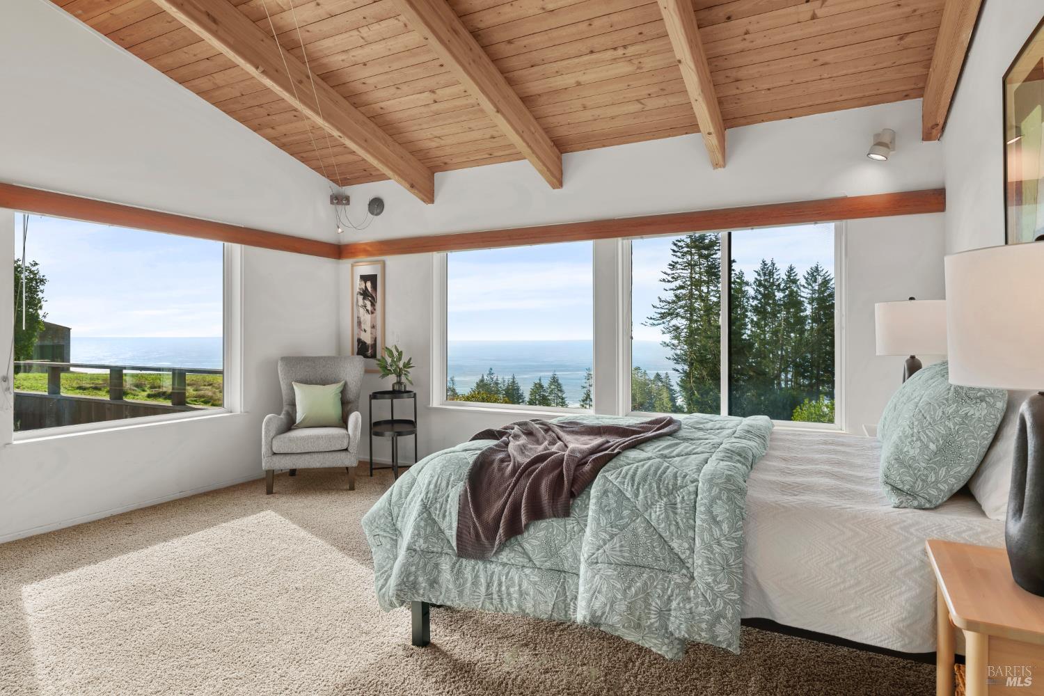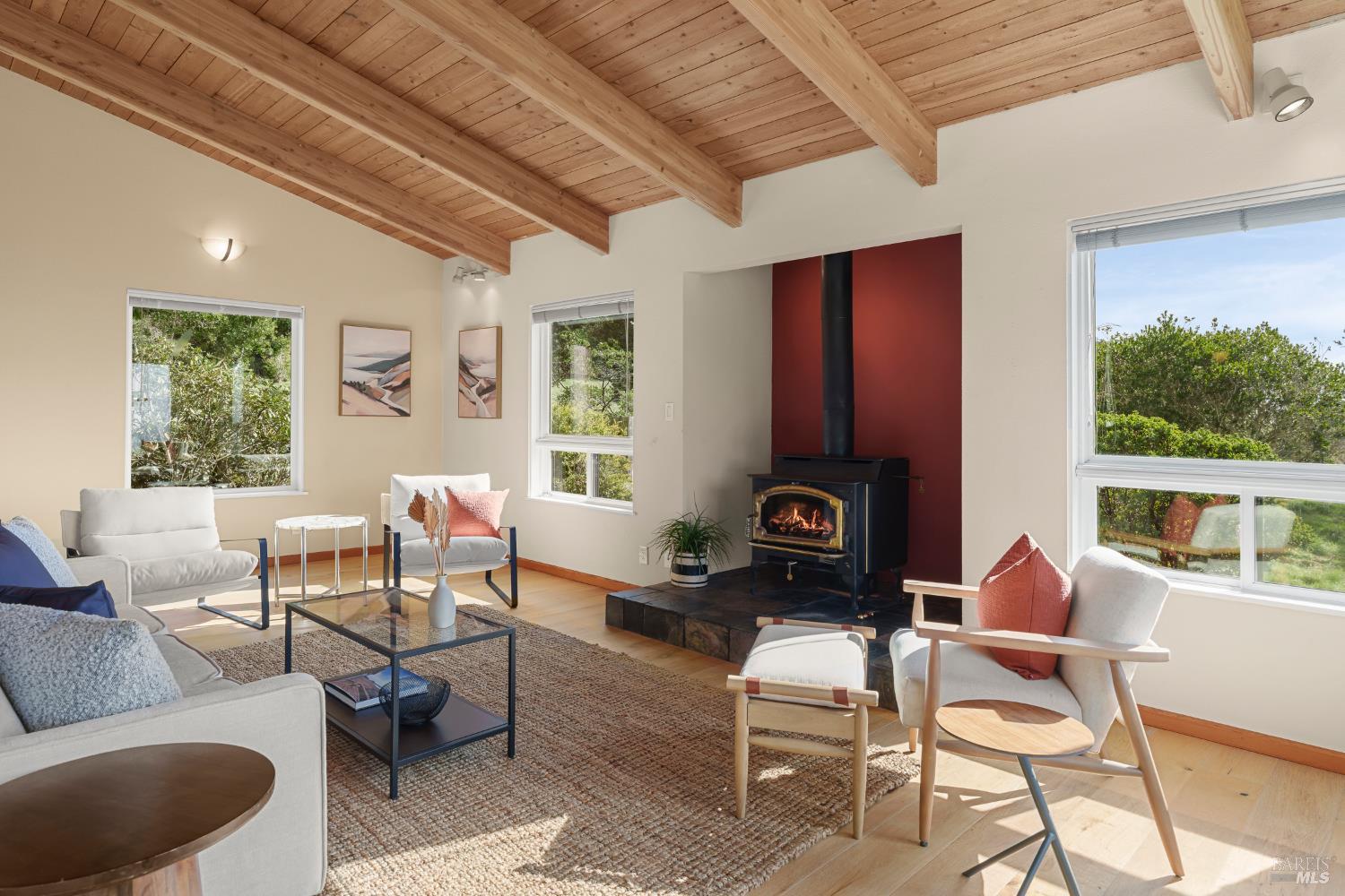 Nestled on a secluded hillside at The Sea Ranch, this property offers sweeping ocean views to the southwest and captivating white water surf directly to the west. The home is buffered by redwoods and commons to the north, while to the south, it overlooks a grassy meadow that's also part of commons. A welcoming Sunroom serves as the perfect transition from the tranquil outdoor environment into the home's warm and inviting interior. Inside, you'll find wood finishes and vaulted ceilings that create a cozy, spacious atmosphere. The Kitchen is appointed with granite countertops, adding both style and functionality. The desirable layout features three bedrooms, two of which are primary en-suite bedrooms, providing privacy and comfort. The oversized two-car garage offers ample storage space. Adjacent to the garage, a light-filled workshop provides additional space for creative or practical endeavors. High-speed internet by Sea Ranch Connect, makes remote work seamless and reliable. Residents have access to over 50 miles of scenic hiking trails, as well as recreation centers equipped with heated swimming pools, tennis courts, and saunas. Located approx 110 miles north of the Golden Gate Bridge along the Sonoma Coast, discover the unique lifestyle and natural beauty of The Sea Ranch.