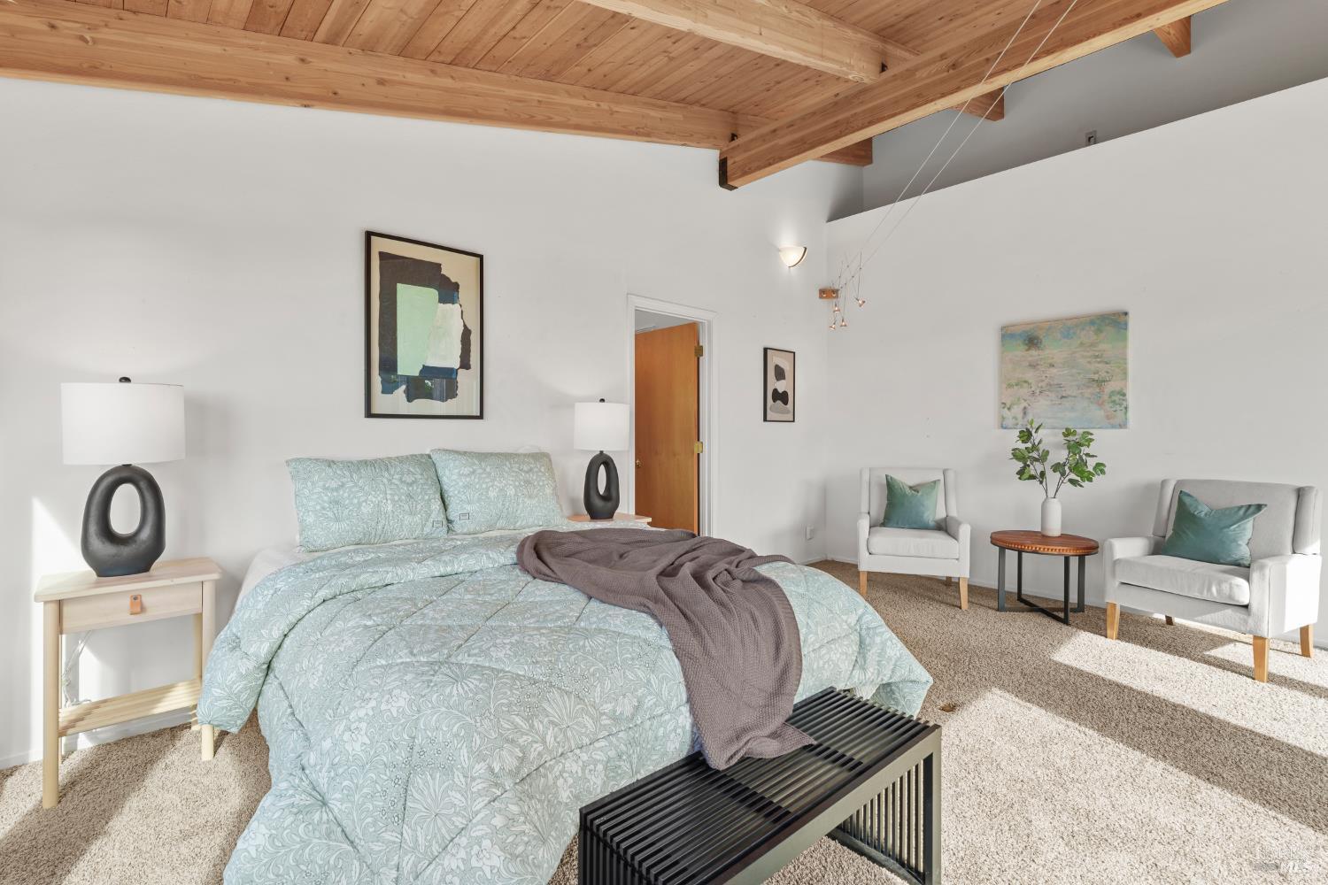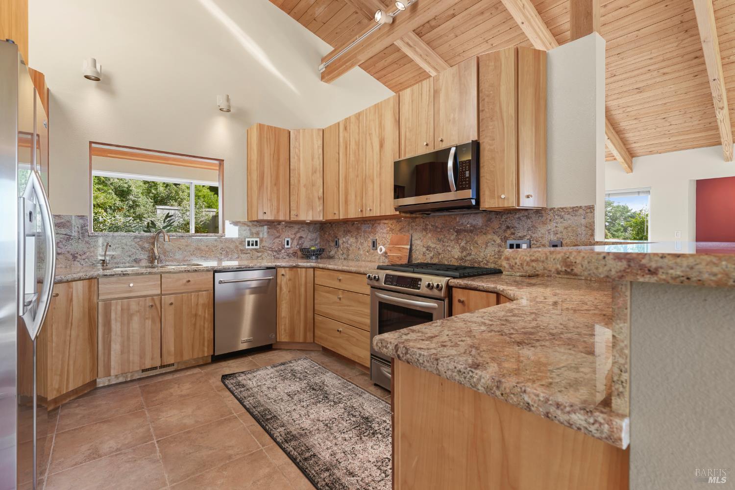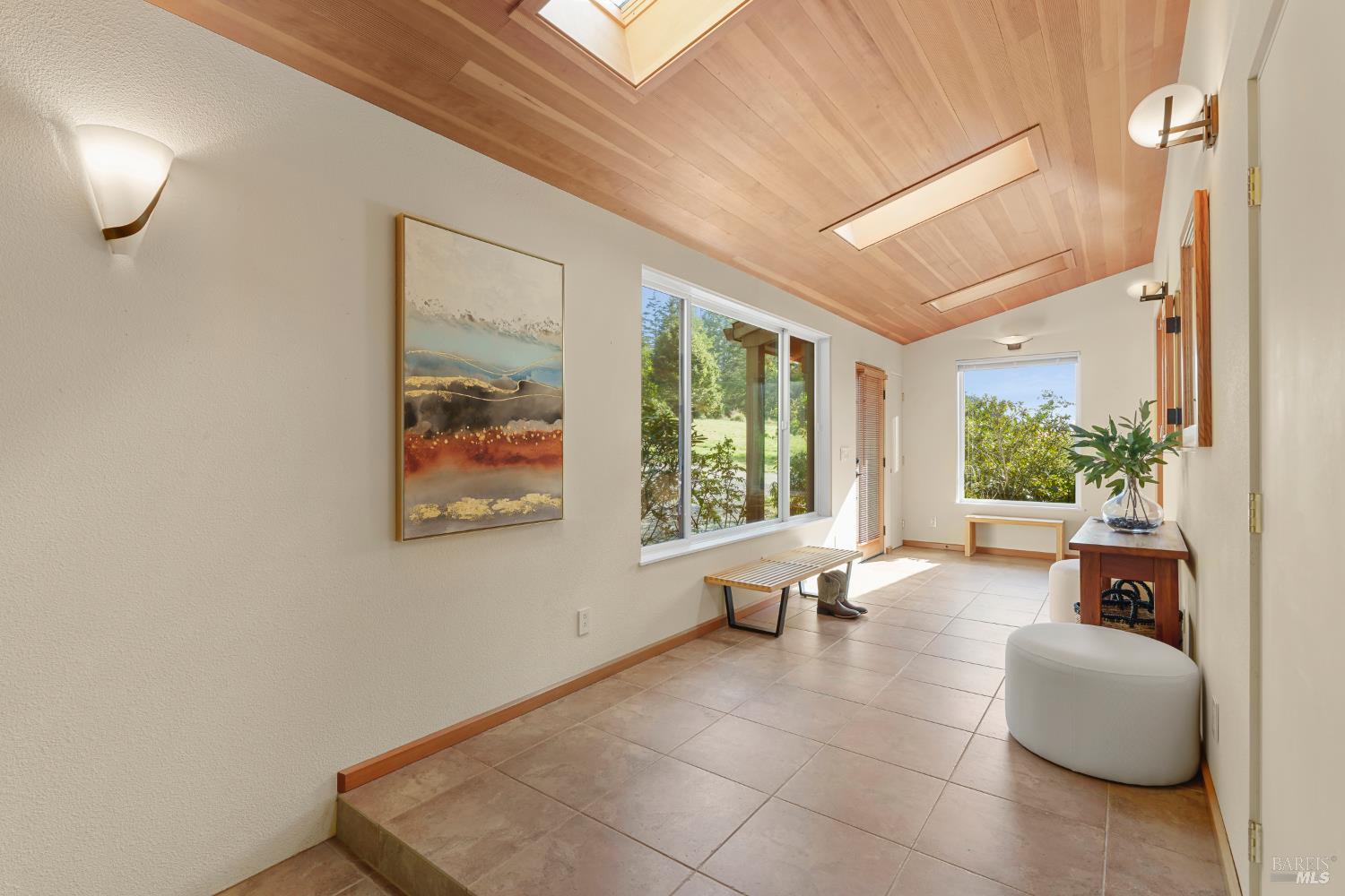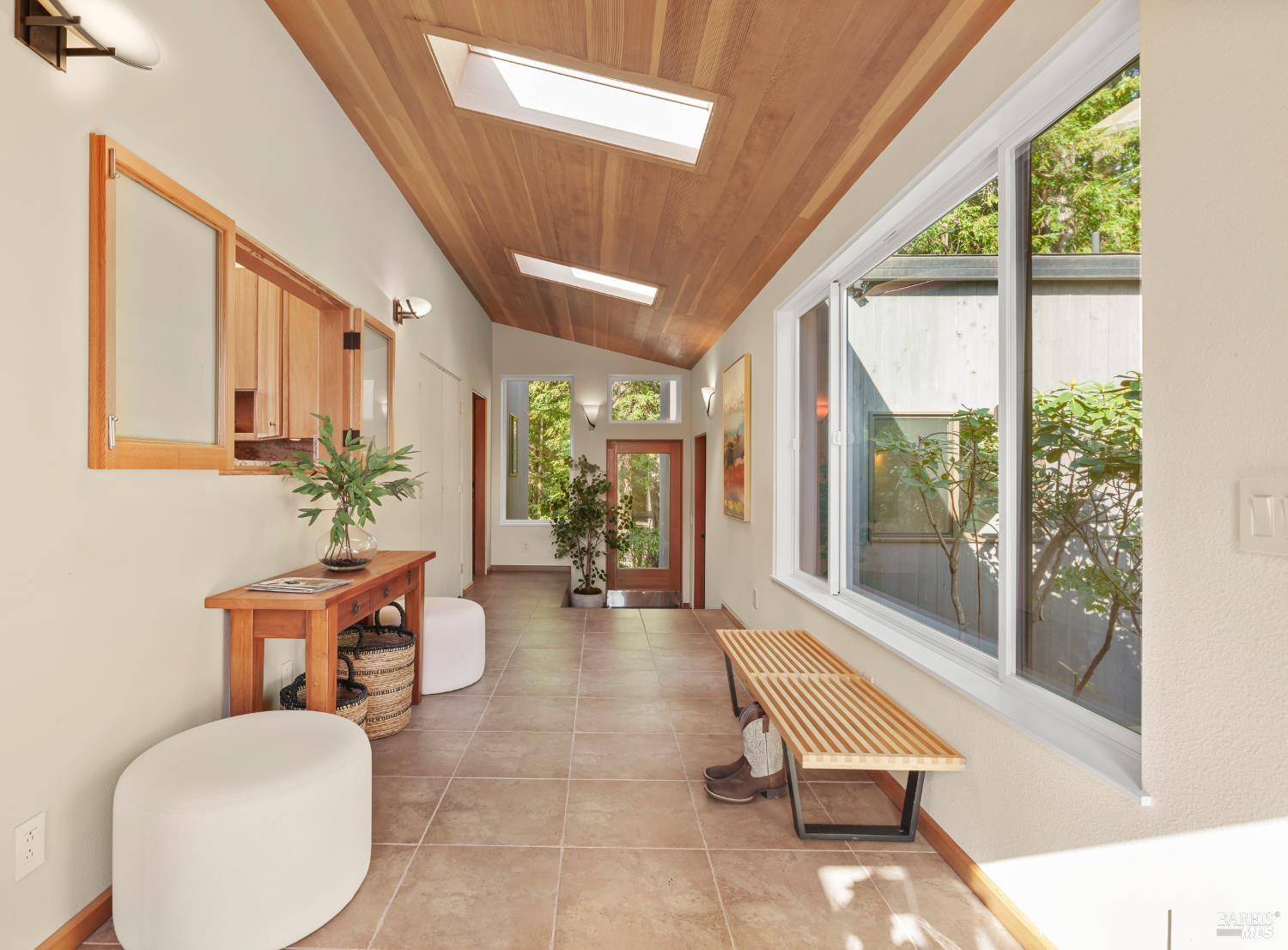 Nestled on a secluded hillside at The Sea Ranch, this property offers sweeping ocean views to the southwest and captivating white water surf directly to the west. The home is buffered by redwoods and commons to the north, while to the south, it overlooks a grassy meadow that's also part of commons. A welcoming Sunroom serves as the perfect transition from the tranquil outdoor environment into the home's warm and inviting interior. Inside, you'll find wood finishes and vaulted ceilings that create a cozy, spacious atmosphere. The Kitchen is appointed with granite countertops, adding both style and functionality. The desirable layout features three bedrooms, two of which are primary en-suite bedrooms, providing privacy and comfort. The oversized two-car garage offers ample storage space. Adjacent to the garage, a light-filled workshop provides additional space for creative or practical endeavors. High-speed internet by Sea Ranch Connect, makes remote work seamless and reliable. Residents have access to over 50 miles of scenic hiking trails, as well as recreation centers equipped with heated swimming pools, tennis courts, and saunas. Located approx 110 miles north of the Golden Gate Bridge along the Sonoma Coast, discover the unique lifestyle and natural beauty of The Sea Ranch.