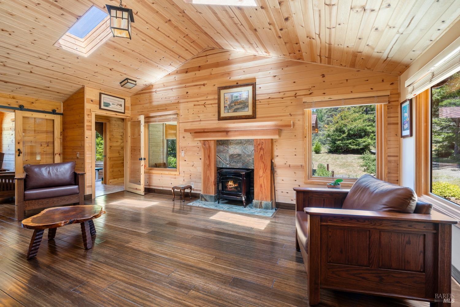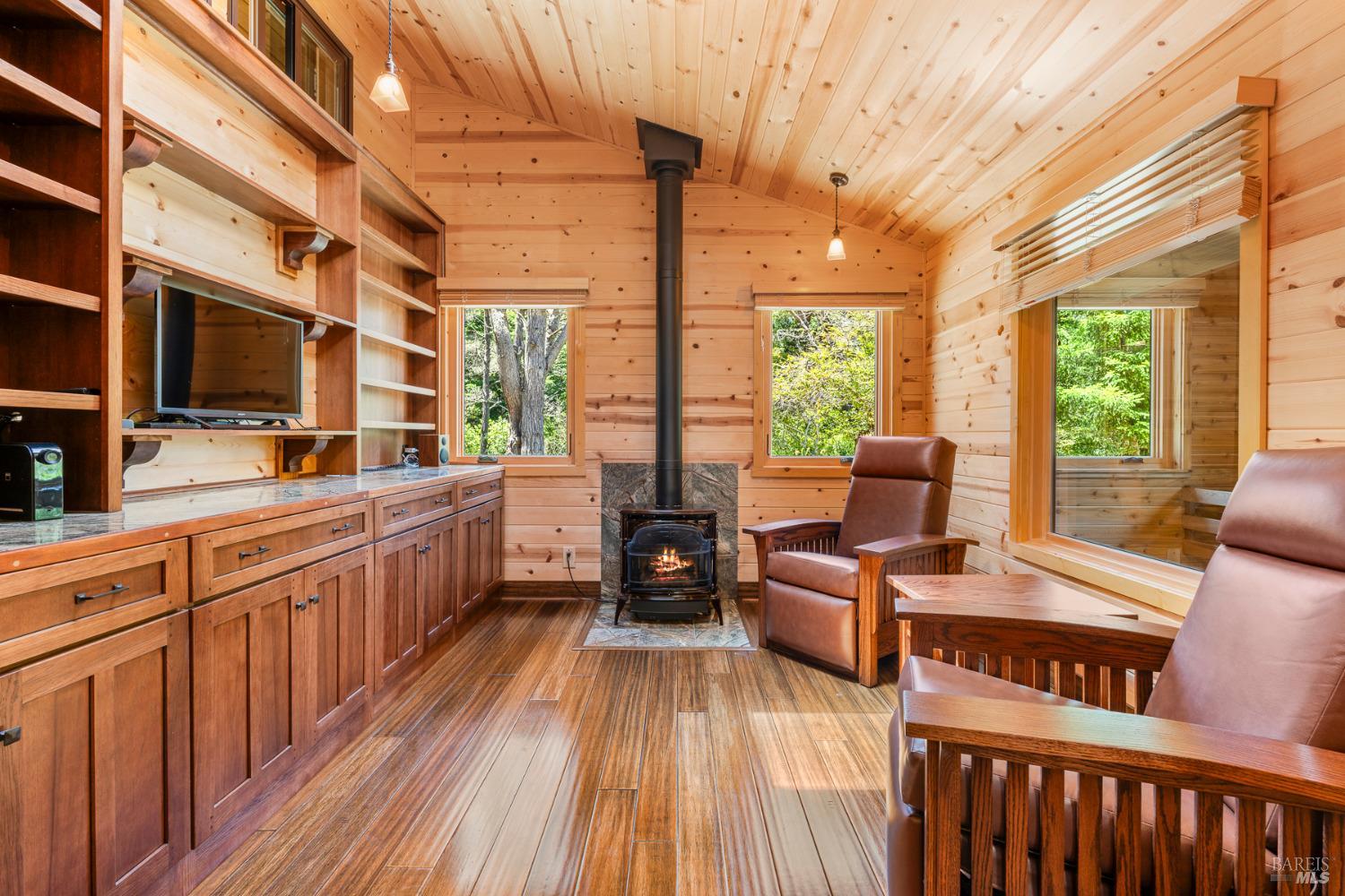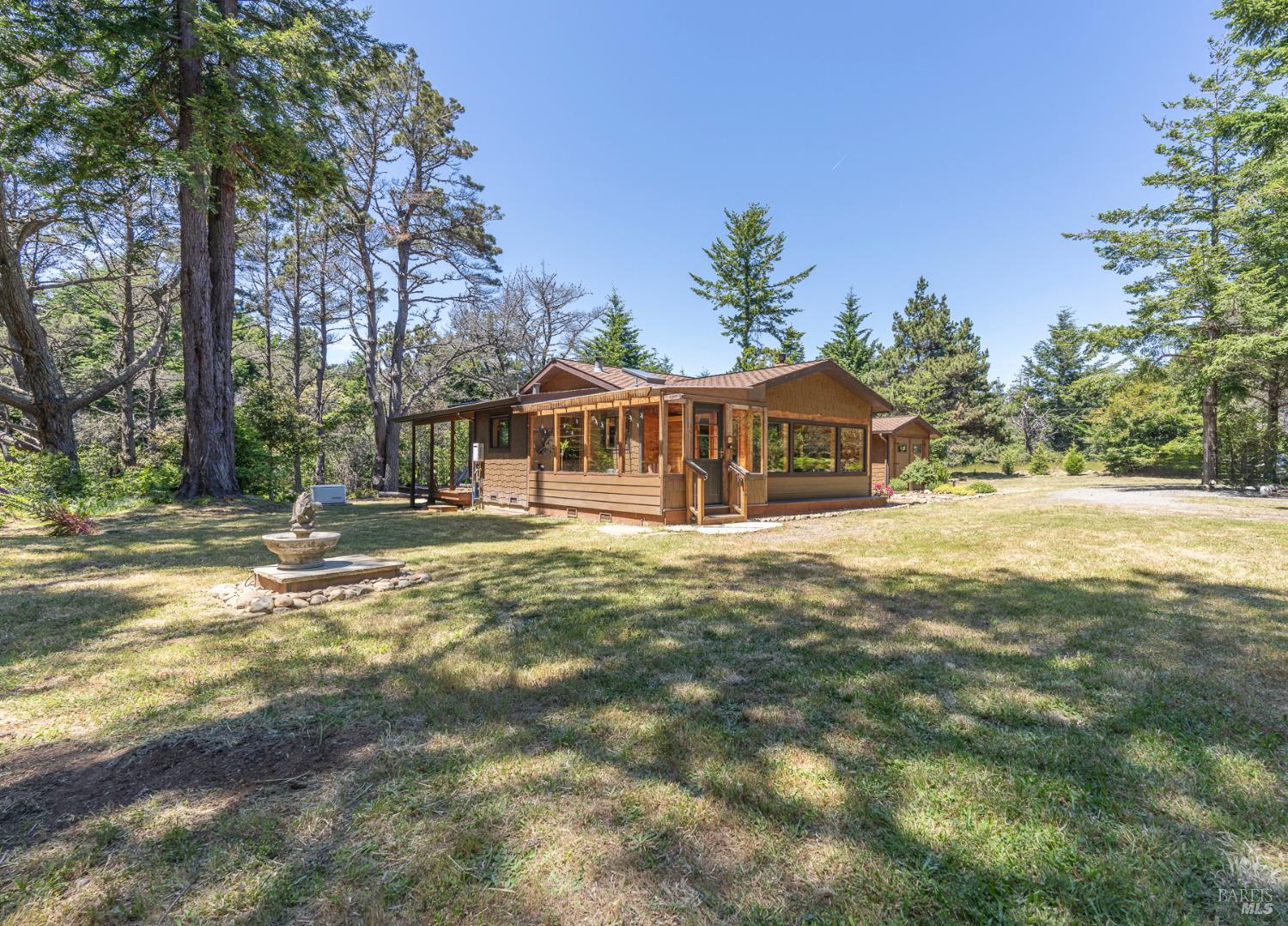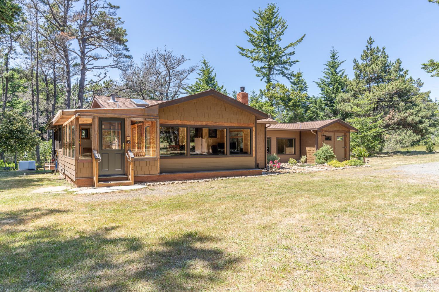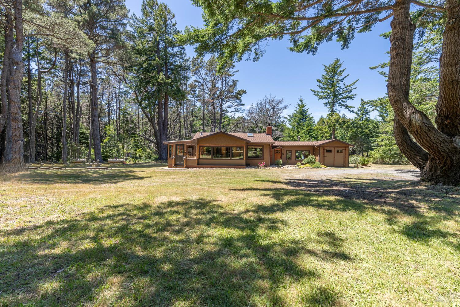 A magical 2 bedroom/1 bath completely rebuilt home located on 2.7 acres with deeded access to private Island Cove. Custom Christopher Ott design hosts Elevated Ceilings with tongue and groove (pine/cedar), Hickory Solid Wood cabinets, Kohler sinks and fixtures, Marble countertops and fireplace; Travertine, Solid Bamboo and Tile flooring; Custom Redwood Greenhouse with Onyx Tile entrance; Sunroom with expansive meadow view surrounded by acres of redwood groves, rhododendrons, dogwoods, Ferns, and a natural spring. Yoga/Sauna studio with Scandia propane 40,000 BTU heater and Vermont Castings Stardance and Hearthstone Propane Stoves along with a 10x12 studio/office. New Redwood deck connected to primary bedroom. An Aga Stove (dual fuel) from England in conjunction with Custom Cherry Butcher Block Amish handmade oak kitchen island and a Butler's pantry with maple butcher block countertop complete an optimal cooking experience. Bosch, Miele and Summit appliances AND an insulated separate studio ready for multiple use. Generac Propane generator, 50 AMP EV prewired, and 30 AMP RV charging hook with water along with a 2019 30-year roof and seamless gutters provide seamless living at its finest. Attached you will find a list of features that define this treasured special home.