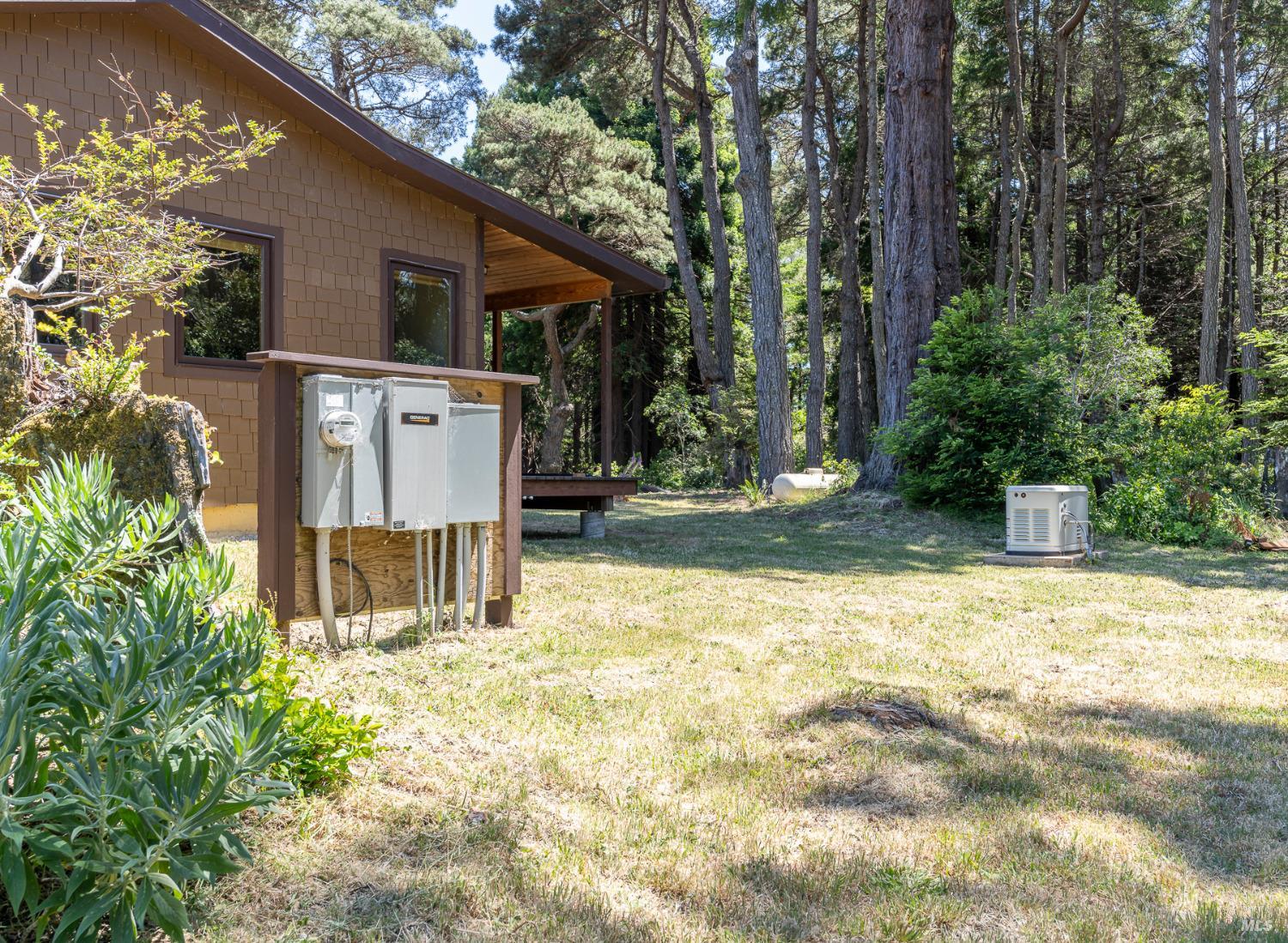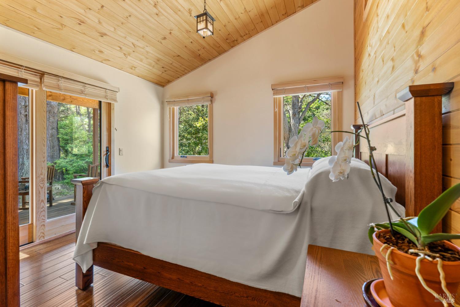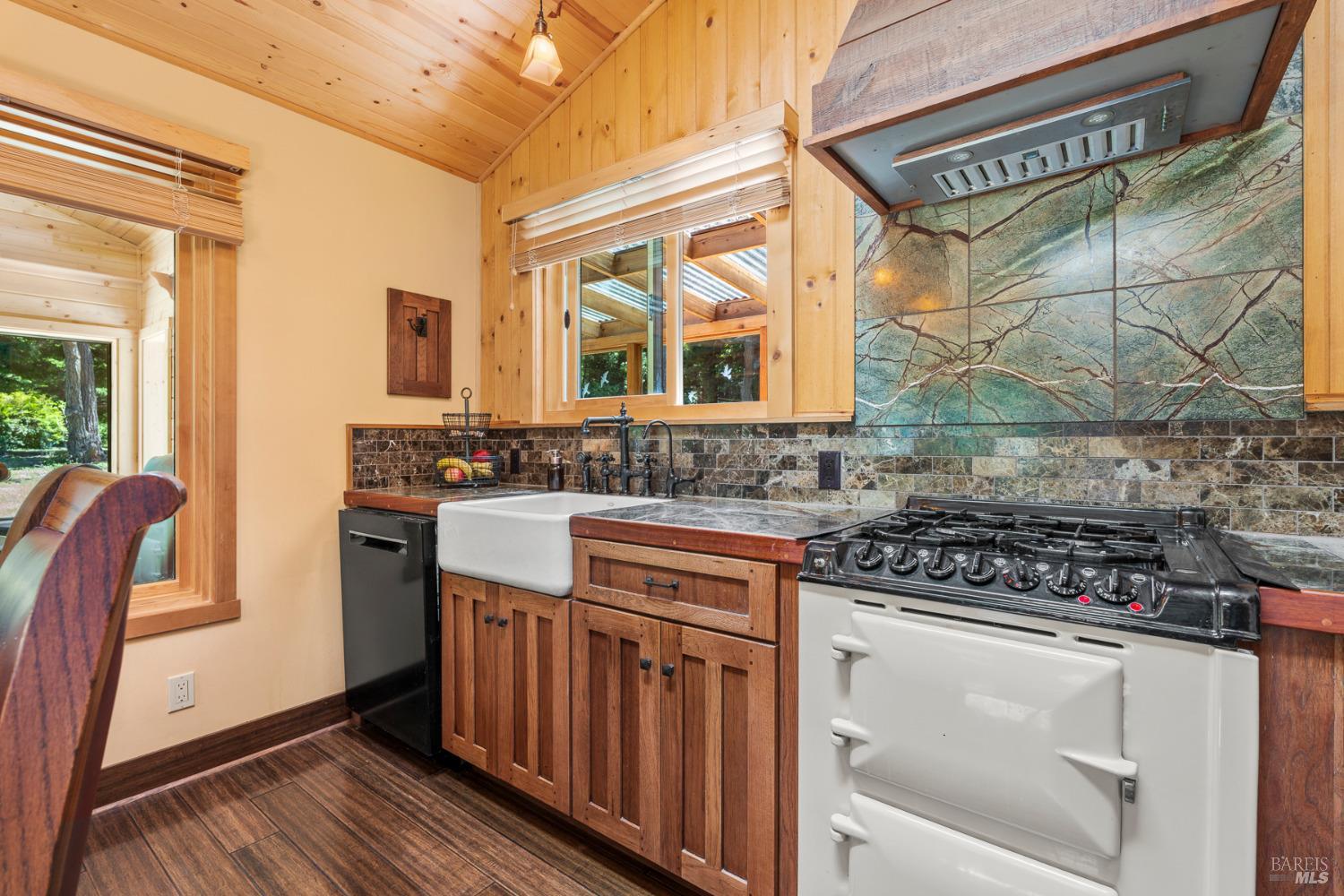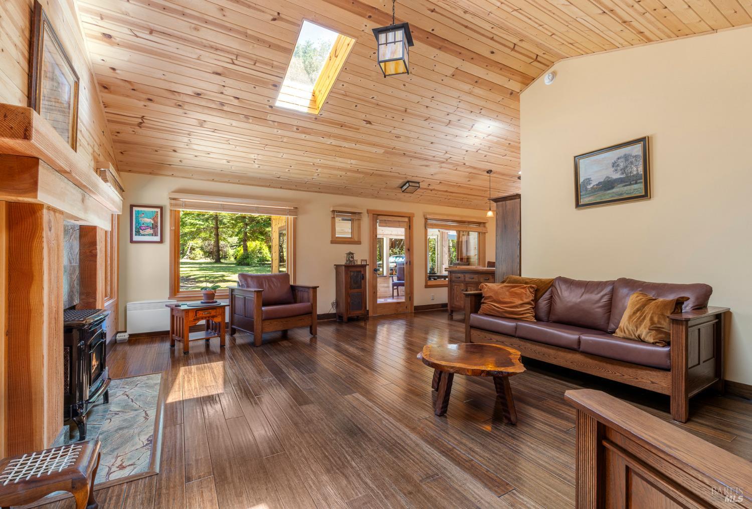 A magical 2 bedroom/1 bath completely rebuilt home located on 2.7 acres with deeded access to private Island Cove. Custom Christopher Ott design hosts Elevated Ceilings with tongue and groove (pine/cedar), Hickory Solid Wood cabinets, Kohler sinks and fixtures, Marble countertops and fireplace; Travertine, Solid Bamboo and Tile flooring; Custom Redwood Greenhouse with Onyx Tile entrance; Sunroom with expansive meadow view surrounded by acres of redwood groves, rhododendrons, dogwoods, Ferns, and a natural spring. Yoga/Sauna studio with Scandia propane 40,000 BTU heater and Vermont Castings Stardance and Hearthstone Propane Stoves along with a 10x12 studio/office. New Redwood deck connected to primary bedroom. An Aga Stove (dual fuel) from England in conjunction with Custom Cherry Butcher Block Amish handmade oak kitchen island and a Butler's pantry with maple butcher block countertop complete an optimal cooking experience. Bosch, Miele and Summit appliances AND an insulated separate studio ready for multiple use. Generac Propane generator, 50 AMP EV prewired, and 30 AMP RV charging hook with water along with a 2019 30-year roof and seamless gutters provide seamless living at its finest. Attached you will find a list of features that define this treasured special home.