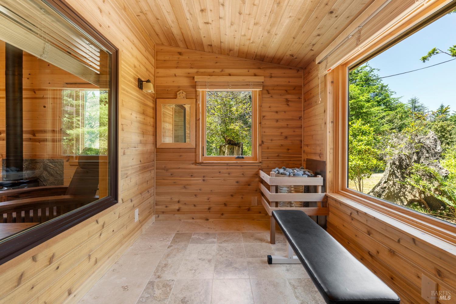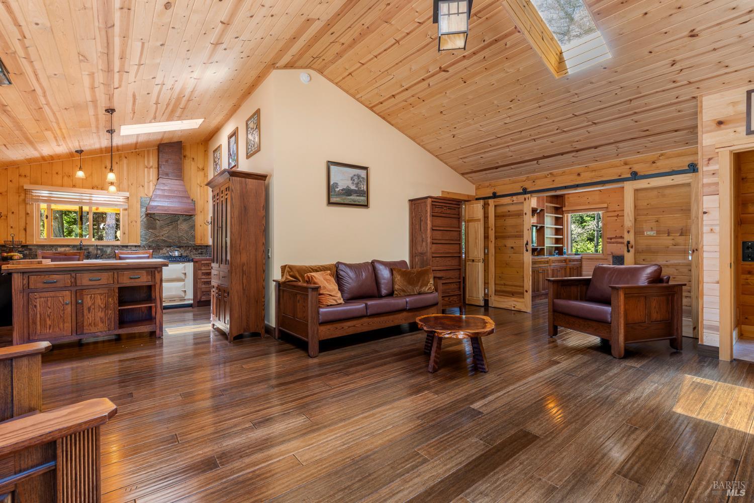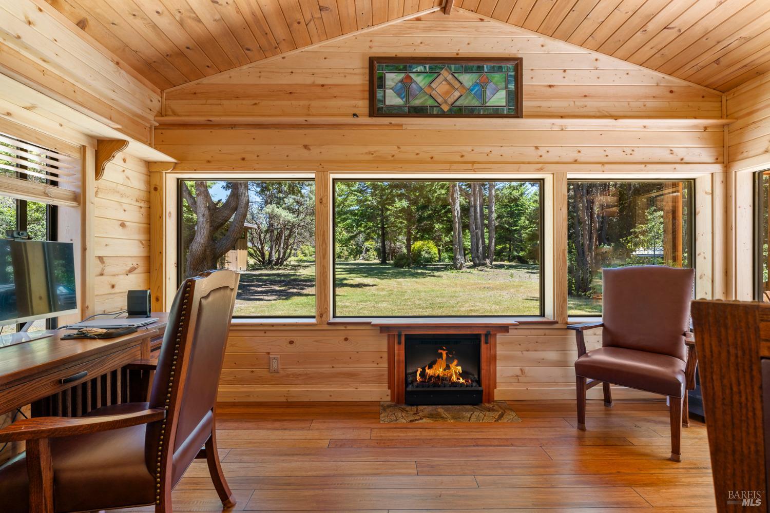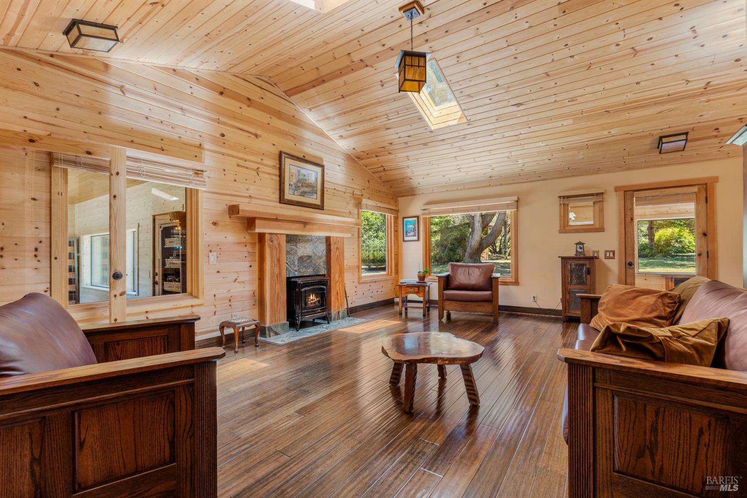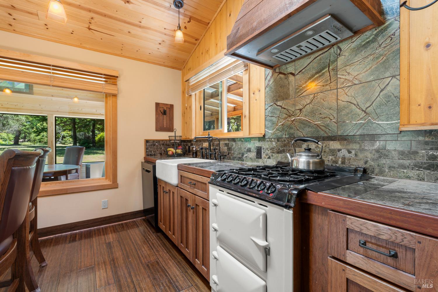 A magical 2 bedroom/1 bath completely rebuilt home located on 2.7 acres with deeded access to private Island Cove. Custom Christopher Ott design hosts Elevated Ceilings with tongue and groove (pine/cedar), Hickory Solid Wood cabinets, Kohler sinks and fixtures, Marble countertops and fireplace; Travertine, Solid Bamboo and Tile flooring; Custom Redwood Greenhouse with Onyx Tile entrance; Sunroom with expansive meadow view surrounded by acres of redwood groves, rhododendrons, dogwoods, Ferns, and a natural spring. Yoga/Sauna studio with Scandia propane 40,000 BTU heater and Vermont Castings Stardance and Hearthstone Propane Stoves along with a 10x12 studio/office. New Redwood deck connected to primary bedroom. An Aga Stove (dual fuel) from England in conjunction with Custom Cherry Butcher Block Amish handmade oak kitchen island and a Butler's pantry with maple butcher block countertop complete an optimal cooking experience. Bosch, Miele and Summit appliances AND an insulated separate studio ready for multiple use. Generac Propane generator, 50 AMP EV prewired, and 30 AMP RV charging hook with water along with a 2019 30-year roof and seamless gutters provide seamless living at its finest. Attached you will find a list of features that define this treasured special home.
