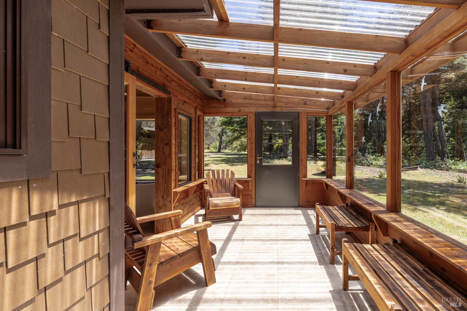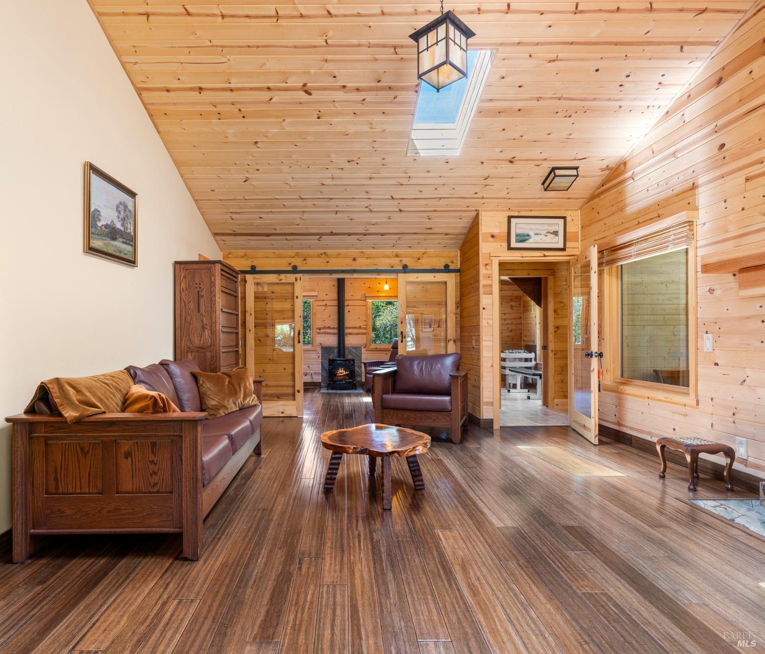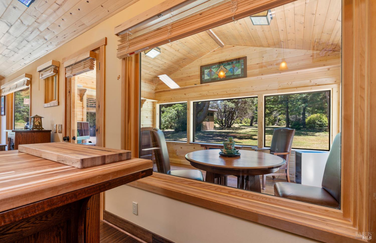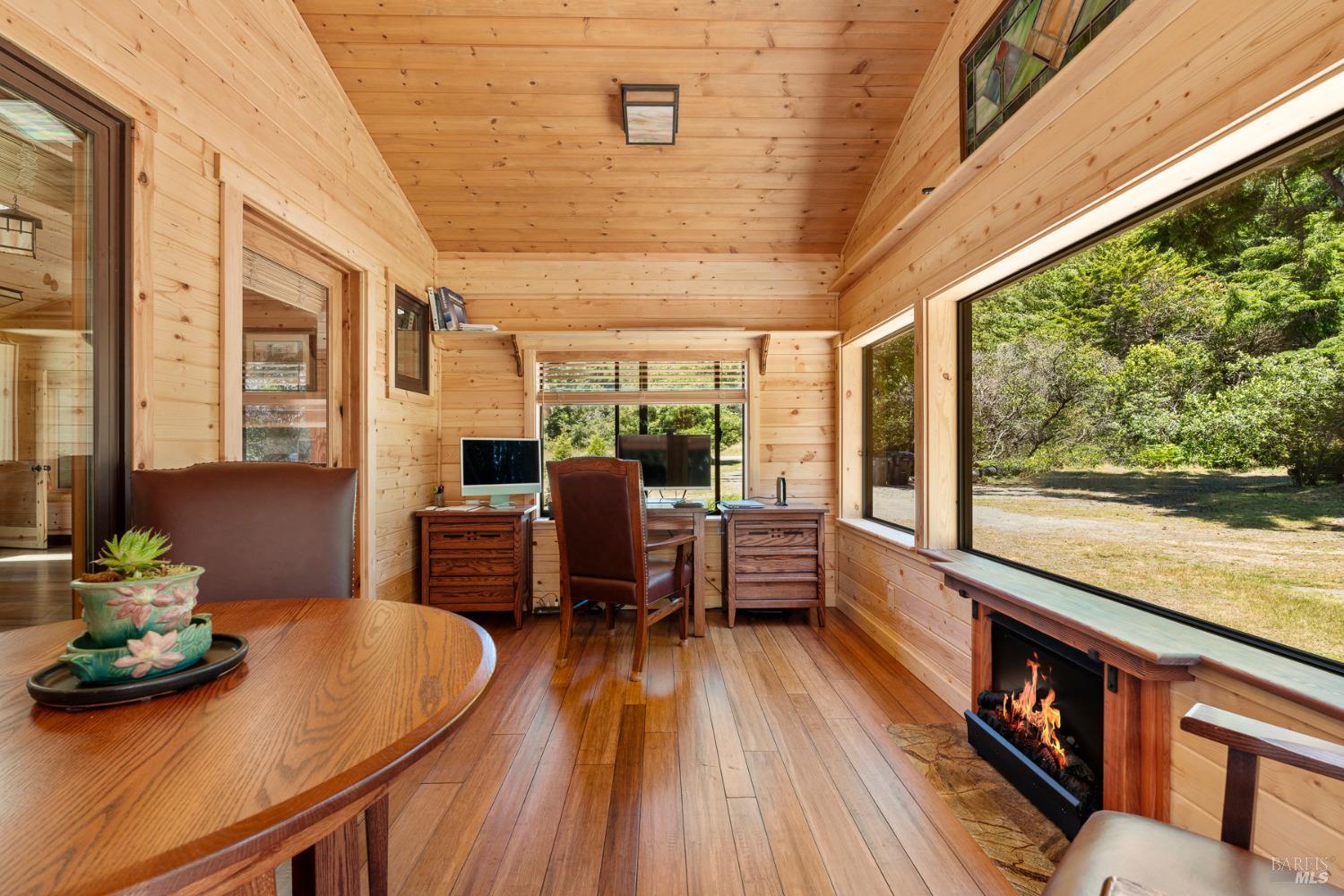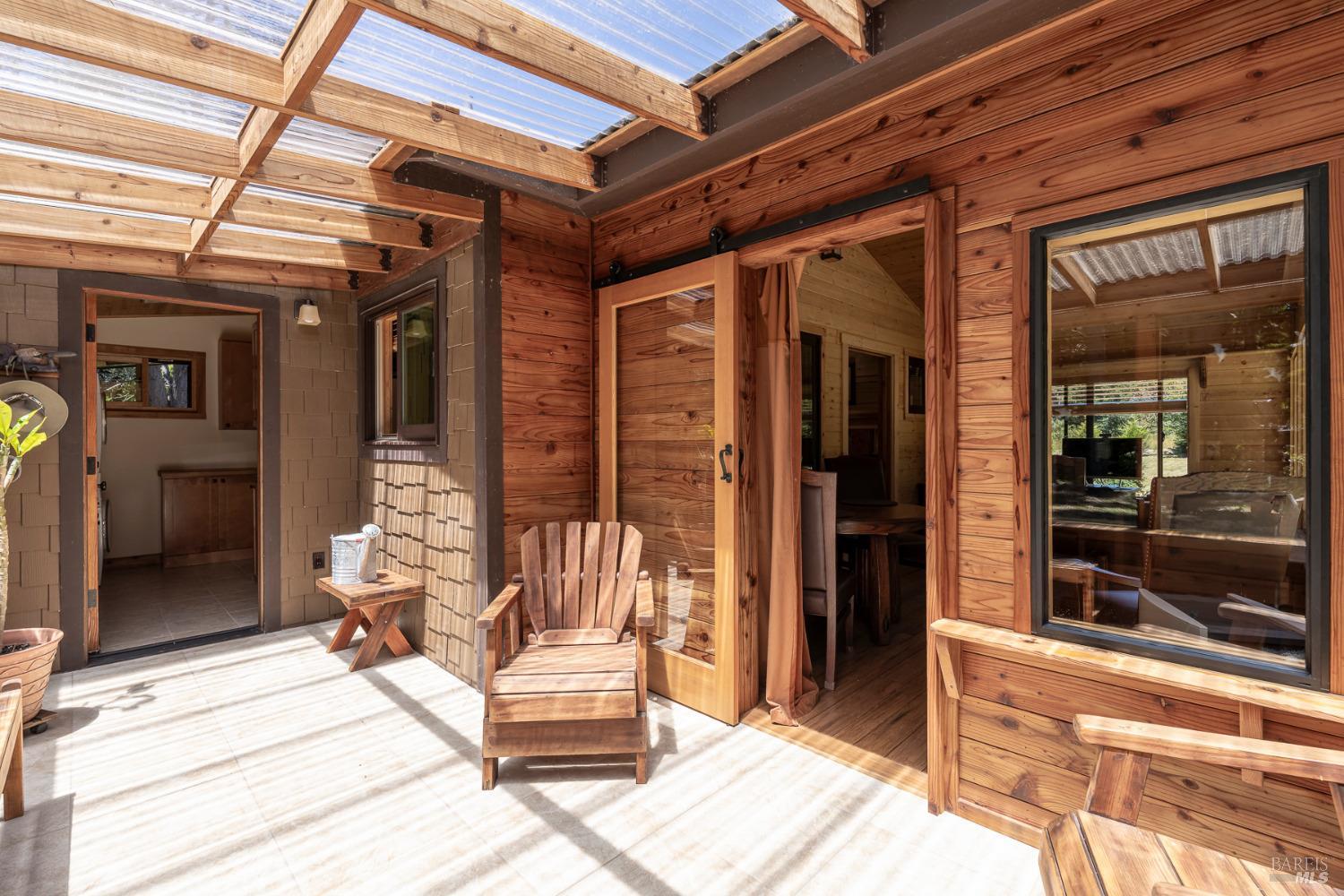 A magical 2 bedroom/1 bath completely rebuilt home located on 2.7 acres with deeded access to private Island Cove. Custom Christopher Ott design hosts Elevated Ceilings with tongue and groove (pine/cedar), Hickory Solid Wood cabinets, Kohler sinks and fixtures, Marble countertops and fireplace; Travertine, Solid Bamboo and Tile flooring; Custom Redwood Greenhouse with Onyx Tile entrance; Sunroom with expansive meadow view surrounded by acres of redwood groves, rhododendrons, dogwoods, Ferns, and a natural spring. Yoga/Sauna studio with Scandia propane 40,000 BTU heater and Vermont Castings Stardance and Hearthstone Propane Stoves along with a 10x12 studio/office. New Redwood deck connected to primary bedroom. An Aga Stove (dual fuel) from England in conjunction with Custom Cherry Butcher Block Amish handmade oak kitchen island and a Butler's pantry with maple butcher block countertop complete an optimal cooking experience. Bosch, Miele and Summit appliances AND an insulated separate studio ready for multiple use. Generac Propane generator, 50 AMP EV prewired, and 30 AMP RV charging hook with water along with a 2019 30-year roof and seamless gutters provide seamless living at its finest. Attached you will find a list of features that define this treasured special home.