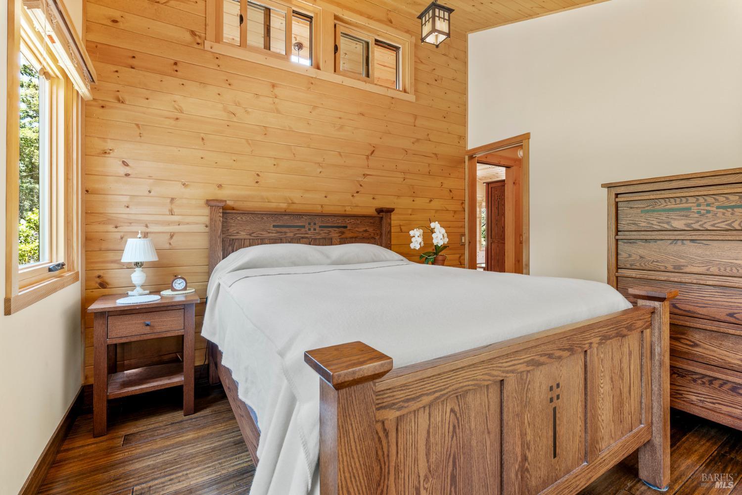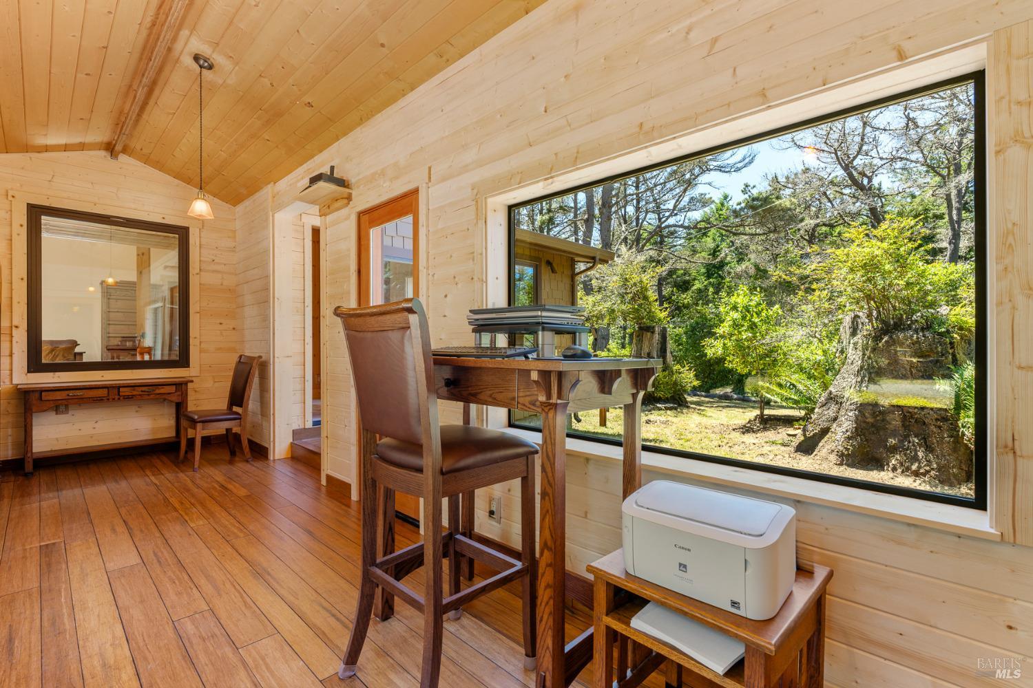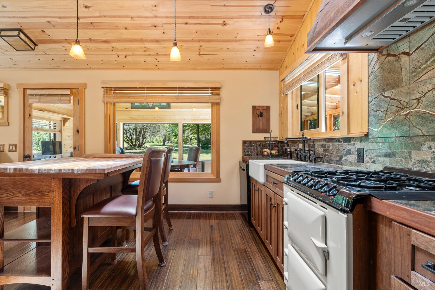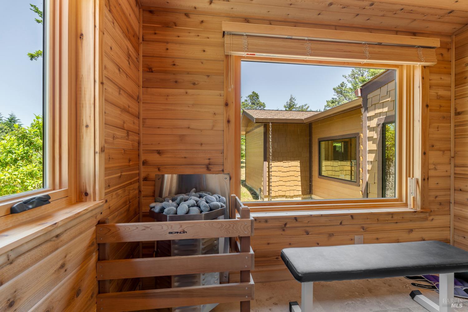 A magical 2 bedroom/1 bath completely rebuilt home located on 2.7 acres with deeded access to private Island Cove. Custom Christopher Ott design hosts Elevated Ceilings with tongue and groove (pine/cedar), Hickory Solid Wood cabinets, Kohler sinks and fixtures, Marble countertops and fireplace; Travertine, Solid Bamboo and Tile flooring; Custom Redwood Greenhouse with Onyx Tile entrance; Sunroom with expansive meadow view surrounded by acres of redwood groves, rhododendrons, dogwoods, Ferns, and a natural spring. Yoga/Sauna studio with Scandia propane 40,000 BTU heater and Vermont Castings Stardance and Hearthstone Propane Stoves along with a 10x12 studio/office. New Redwood deck connected to primary bedroom. An Aga Stove (dual fuel) from England in conjunction with Custom Cherry Butcher Block Amish handmade oak kitchen island and a Butler's pantry with maple butcher block countertop complete an optimal cooking experience. Bosch, Miele and Summit appliances AND an insulated separate studio ready for multiple use. Generac Propane generator, 50 AMP EV prewired, and 30 AMP RV charging hook with water along with a 2019 30-year roof and seamless gutters provide seamless living at its finest. Attached you will find a list of features that define this treasured special home.