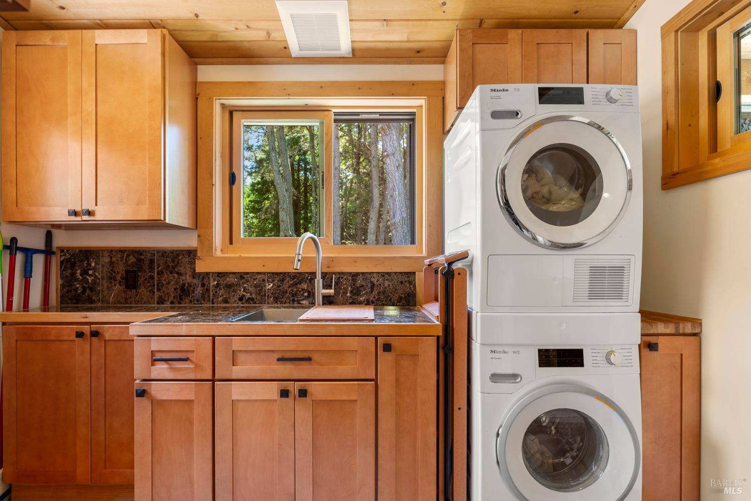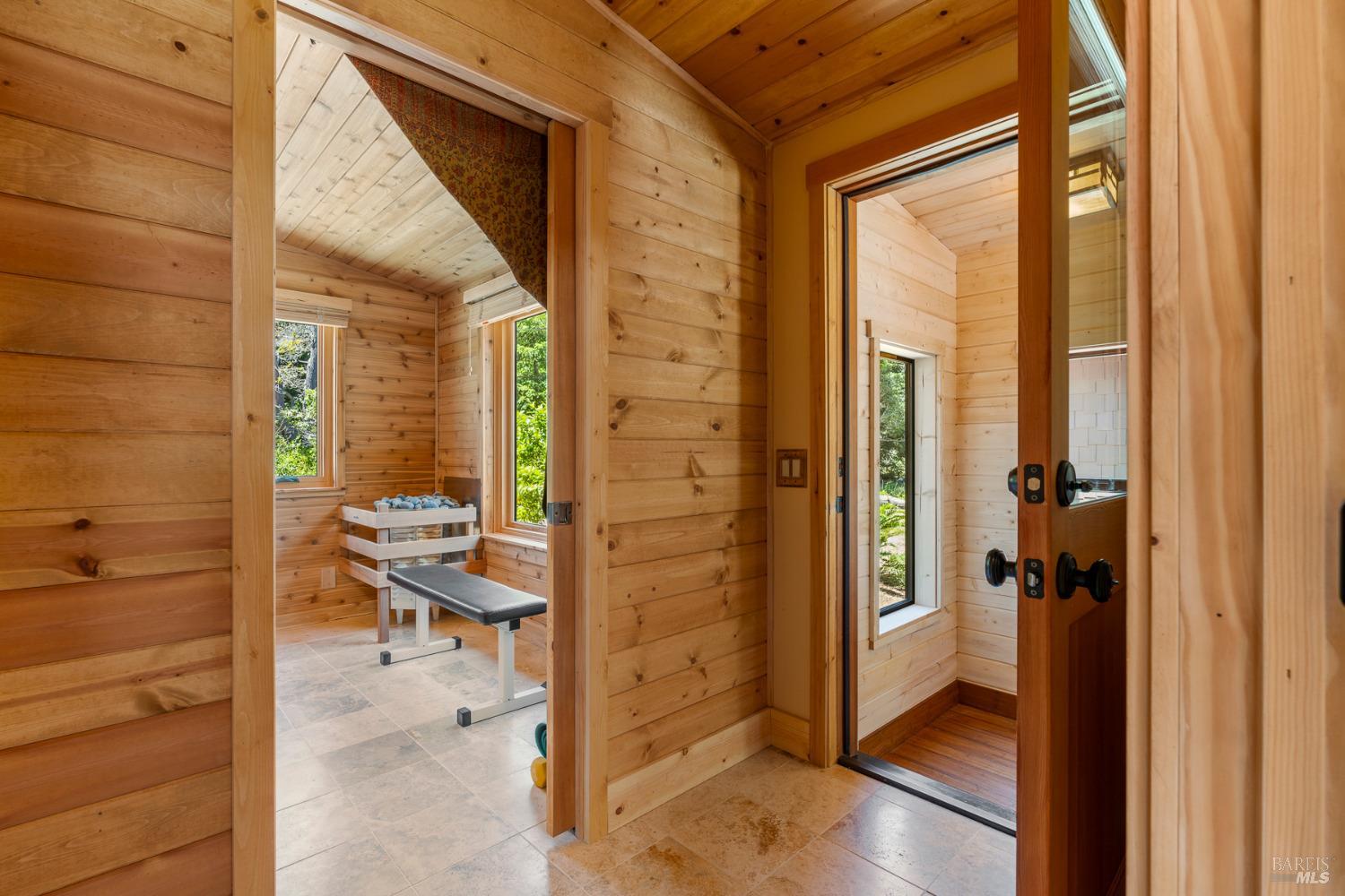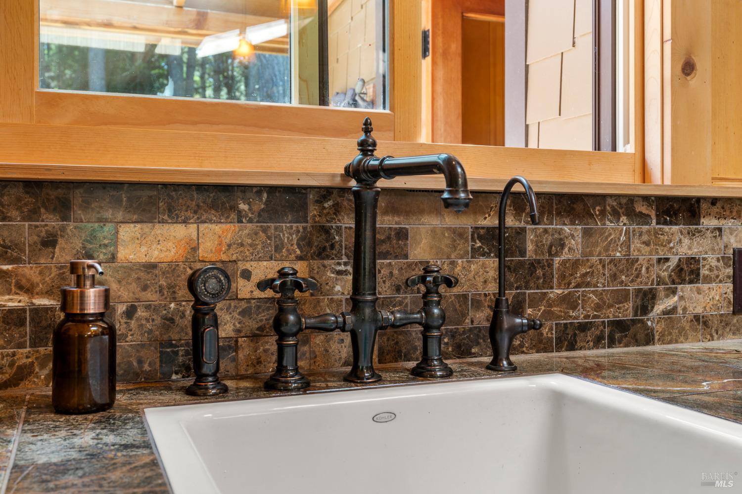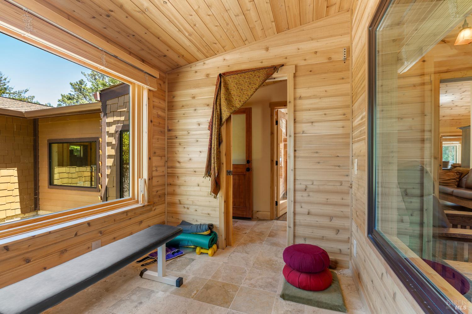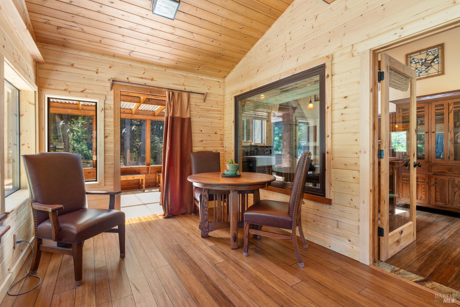 A magical 2 bedroom/1 bath completely rebuilt home located on 2.7 acres with deeded access to private Island Cove. Custom Christopher Ott design hosts Elevated Ceilings with tongue and groove (pine/cedar), Hickory Solid Wood cabinets, Kohler sinks and fixtures, Marble countertops and fireplace; Travertine, Solid Bamboo and Tile flooring; Custom Redwood Greenhouse with Onyx Tile entrance; Sunroom with expansive meadow view surrounded by acres of redwood groves, rhododendrons, dogwoods, Ferns, and a natural spring. Yoga/Sauna studio with Scandia propane 40,000 BTU heater and Vermont Castings Stardance and Hearthstone Propane Stoves along with a 10x12 studio/office. New Redwood deck connected to primary bedroom. An Aga Stove (dual fuel) from England in conjunction with Custom Cherry Butcher Block Amish handmade oak kitchen island and a Butler's pantry with maple butcher block countertop complete an optimal cooking experience. Bosch, Miele and Summit appliances AND an insulated separate studio ready for multiple use. Generac Propane generator, 50 AMP EV prewired, and 30 AMP RV charging hook with water along with a 2019 30-year roof and seamless gutters provide seamless living at its finest. Attached you will find a list of features that define this treasured special home.