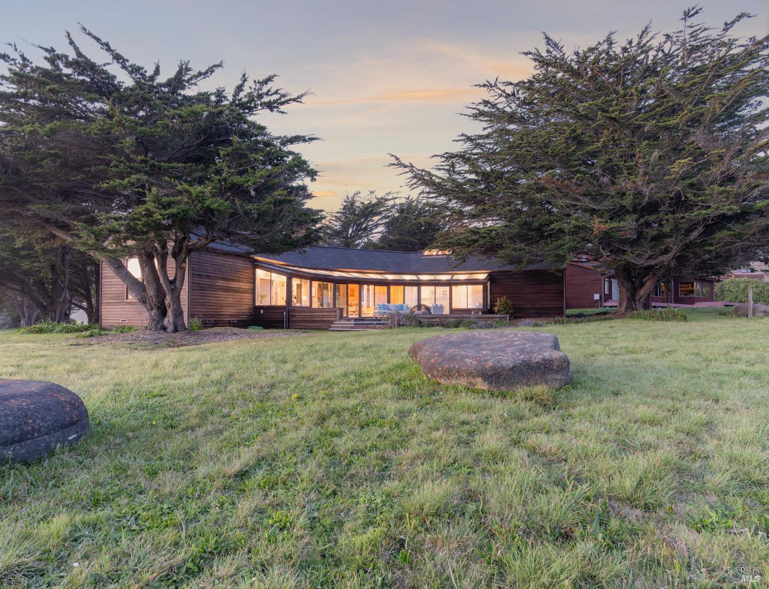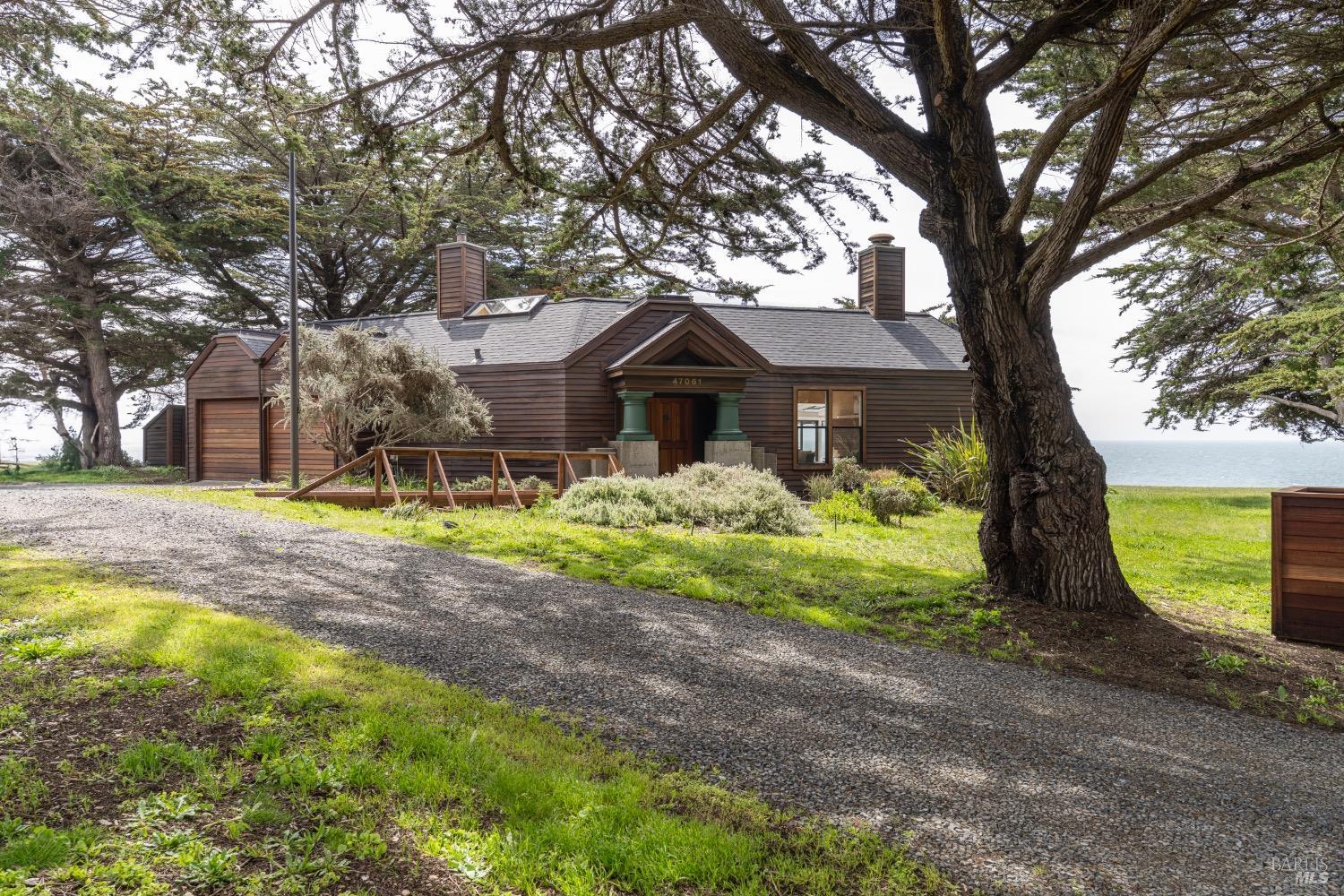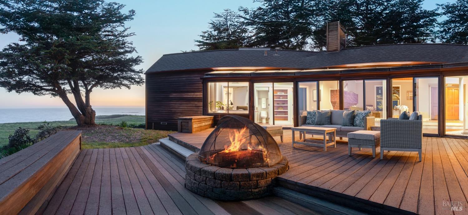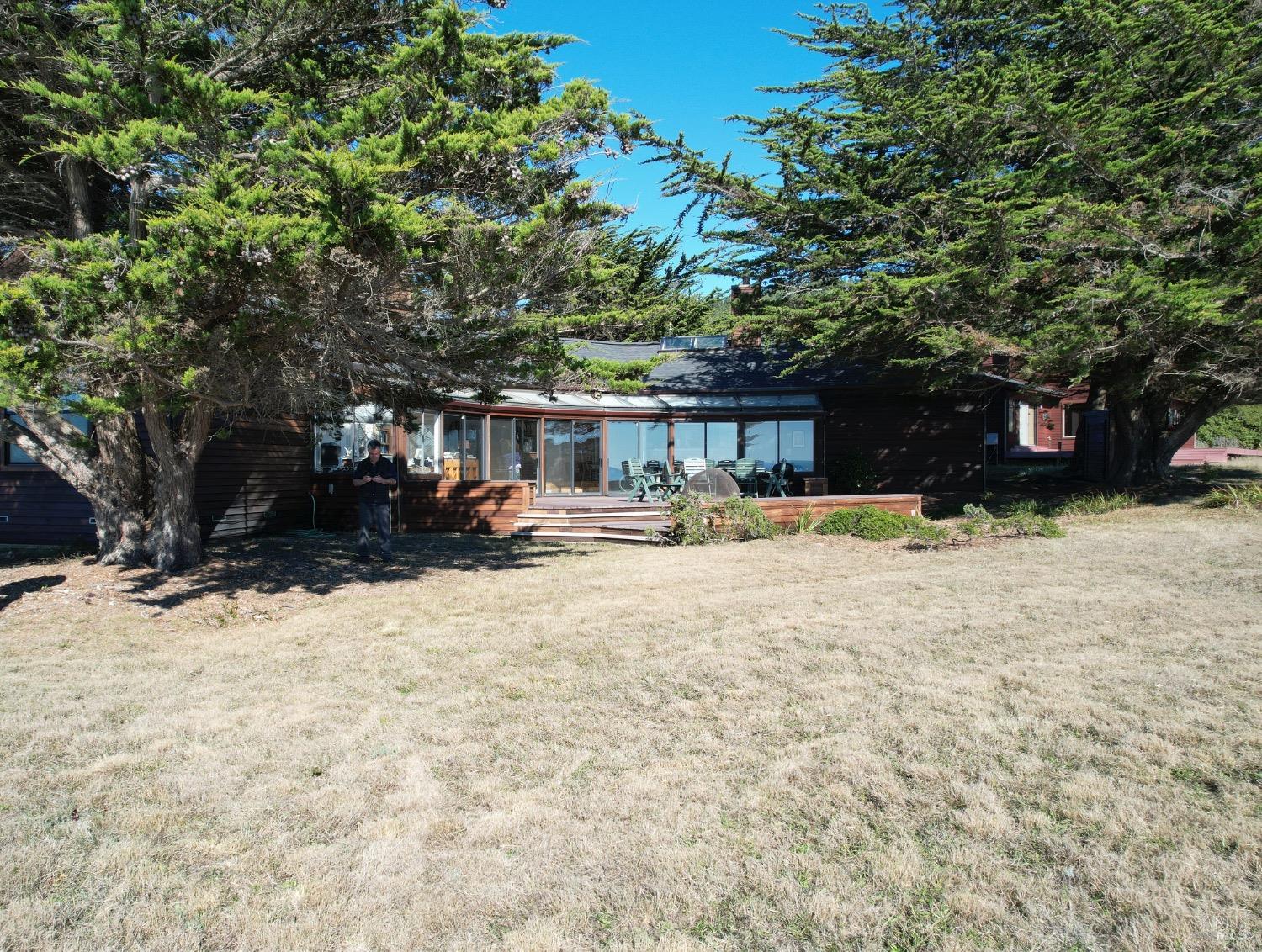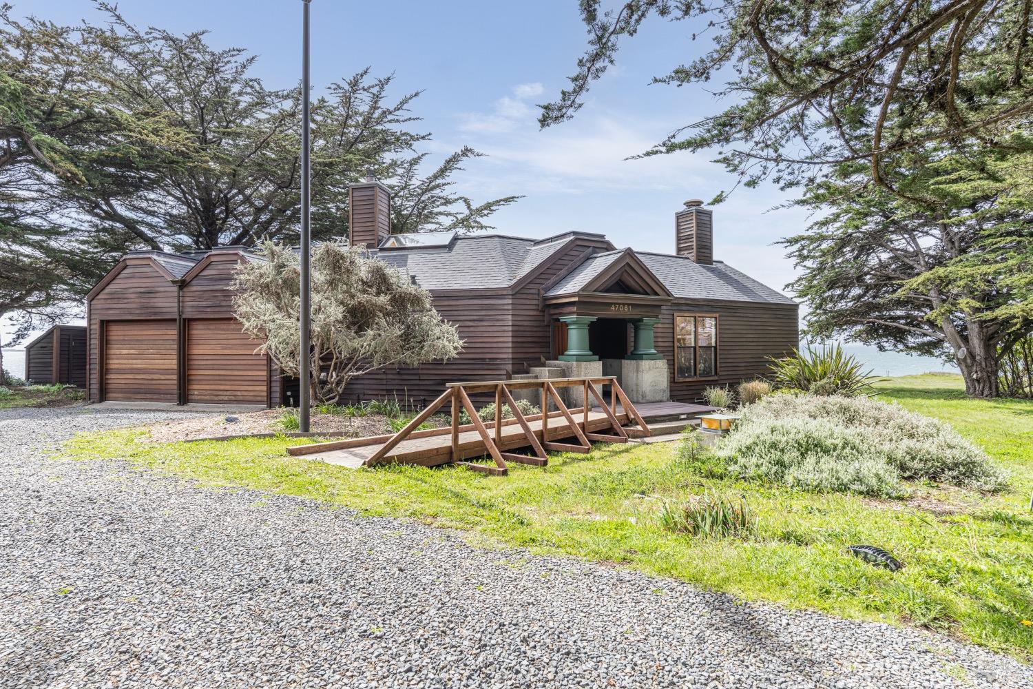 This 0.76-acre premium oceanfront location and residence offers a south coast orientation with views of the incredible surf. When you step into this beautiful home, you will be drawn to the expansive wall of glass sliding doors that open directly onto a spacious deck. The sights and sounds of the ocean will instantly engage your senses, bringing you to a calm state of mind. Obie Bowman designed this passive solar home with a solarium, known as the Pozzi Residence, for a retired developer and his wife as a second home. It is constructed with a wooden frame and redwood bevel siding. The solarium floor features tile on concrete over a continuous rock bed. Cherished and maintained by the second owners as their full-time home for the last 25 years, this property includes a remodeled kitchen, recently refinished timeless red oak wood floors, and pressure-washed and oiled redwood siding. An established cypress hedgerow on the windward side of the property offers protection from the wind-swept point. A caricature of a classical entry whimsically recalls the original owner's admiration for classical architecture. From this site, you can observe migrating whales, native birds, and grazing deer. Plan your forever escape to the Mendocino Coast. Come make 47061 Big Gulch home!