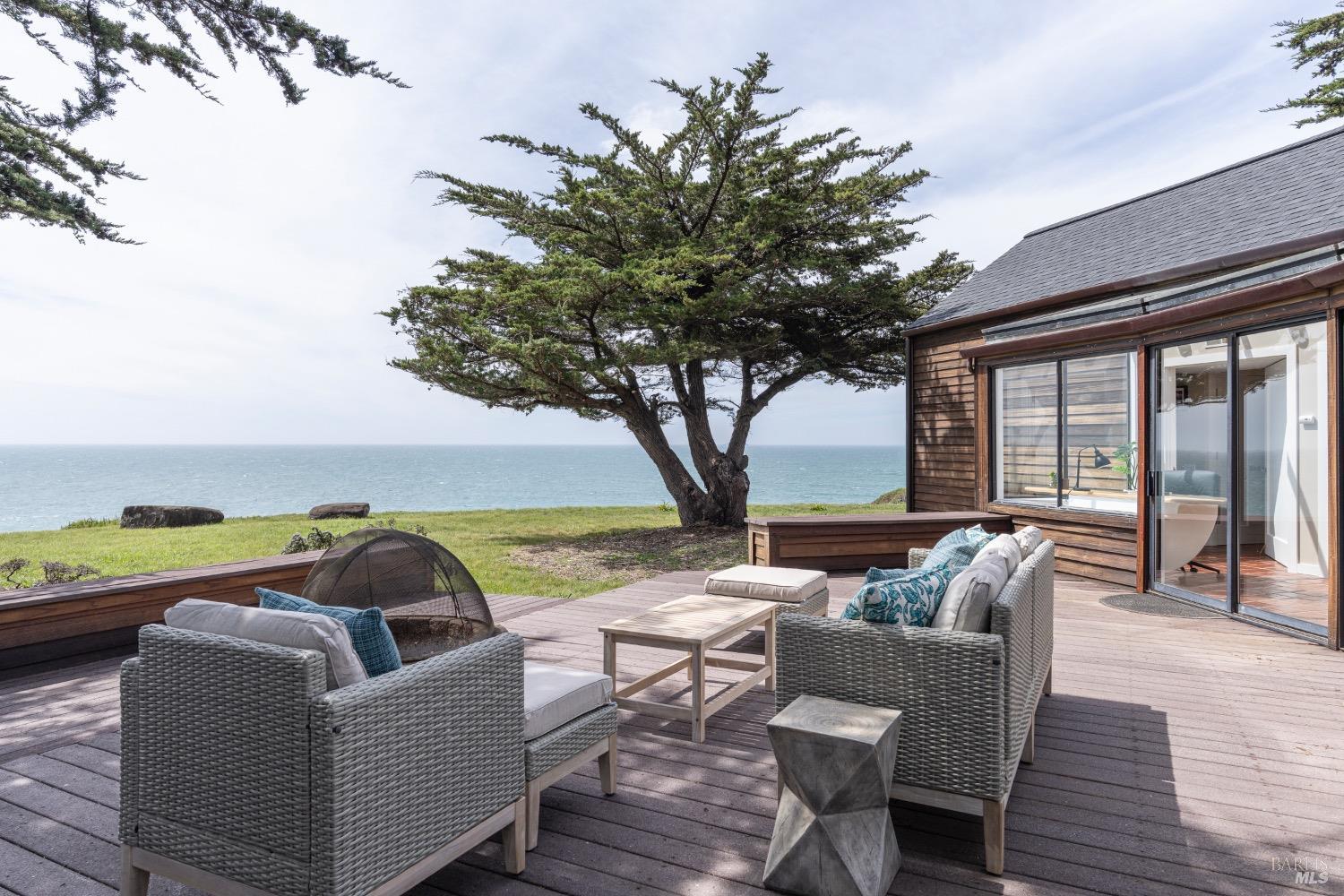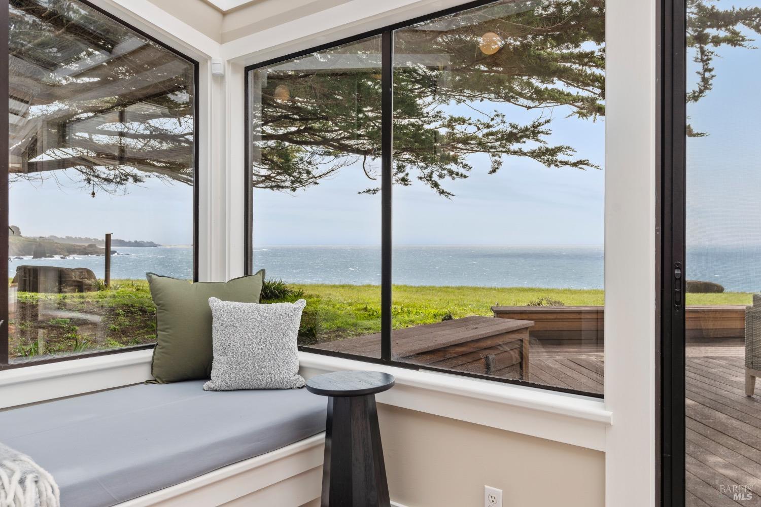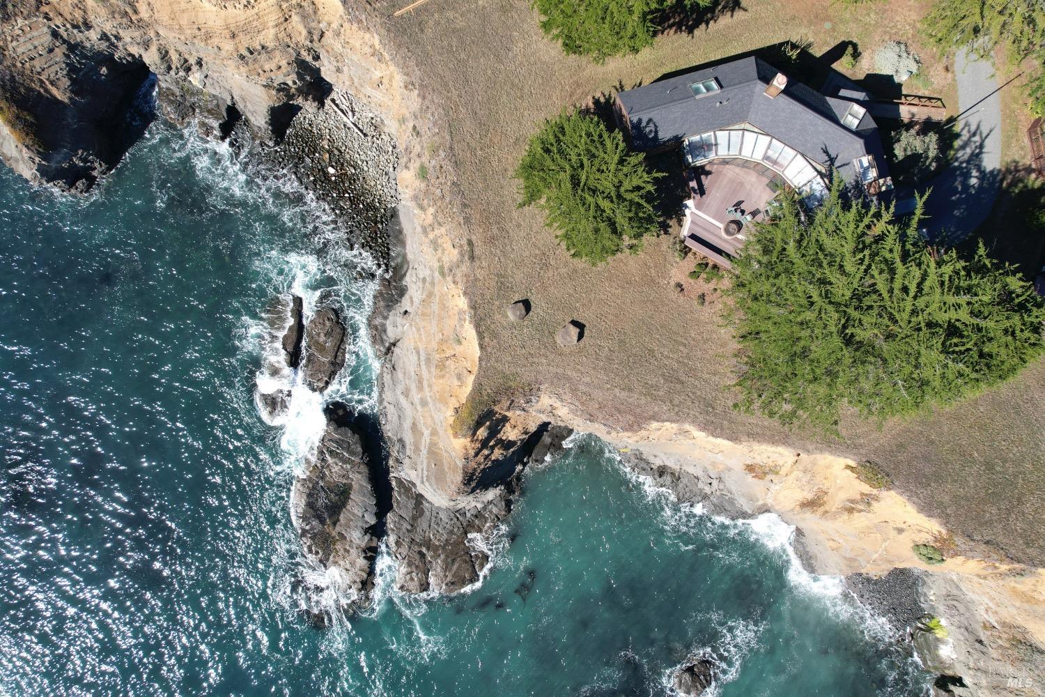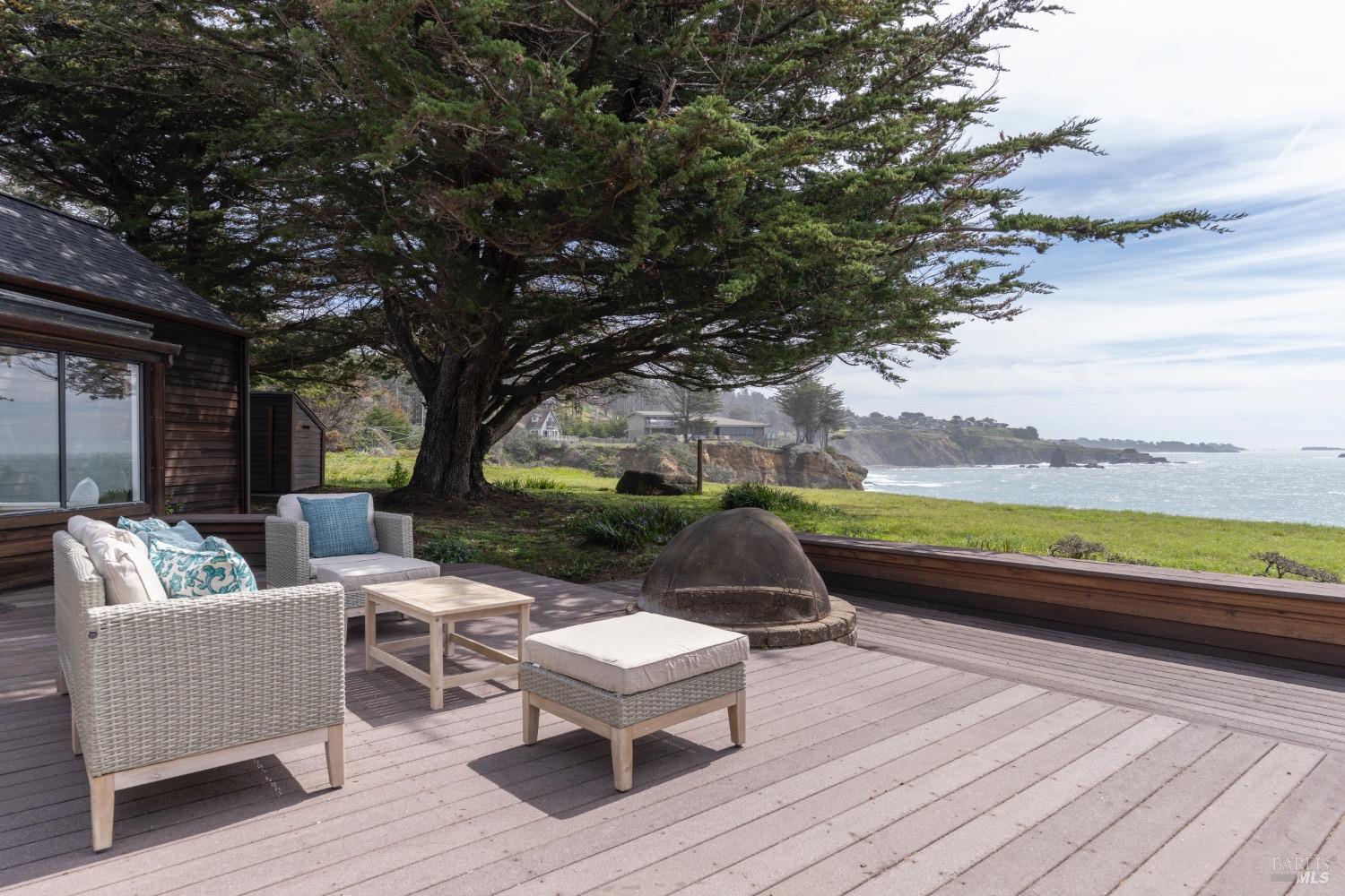 This 0.76-acre premium oceanfront location and residence offers a south coast orientation with views of the incredible surf. When you step into this beautiful home, you will be drawn to the expansive wall of glass sliding doors that open directly onto a spacious deck. The sights and sounds of the ocean will instantly engage your senses, bringing you to a calm state of mind. Obie Bowman designed this passive solar home with a solarium, known as the Pozzi Residence, for a retired developer and his wife as a second home. It is constructed with a wooden frame and redwood bevel siding. The solarium floor features tile on concrete over a continuous rock bed. Cherished and maintained by the second owners as their full-time home for the last 25 years, this property includes a remodeled kitchen, recently refinished timeless red oak wood floors, and pressure-washed and oiled redwood siding. An established cypress hedgerow on the windward side of the property offers protection from the wind-swept point. A caricature of a classical entry whimsically recalls the original owner's admiration for classical architecture. From this site, you can observe migrating whales, native birds, and grazing deer. Plan your forever escape to the Mendocino Coast. Come make 47061 Big Gulch home!
