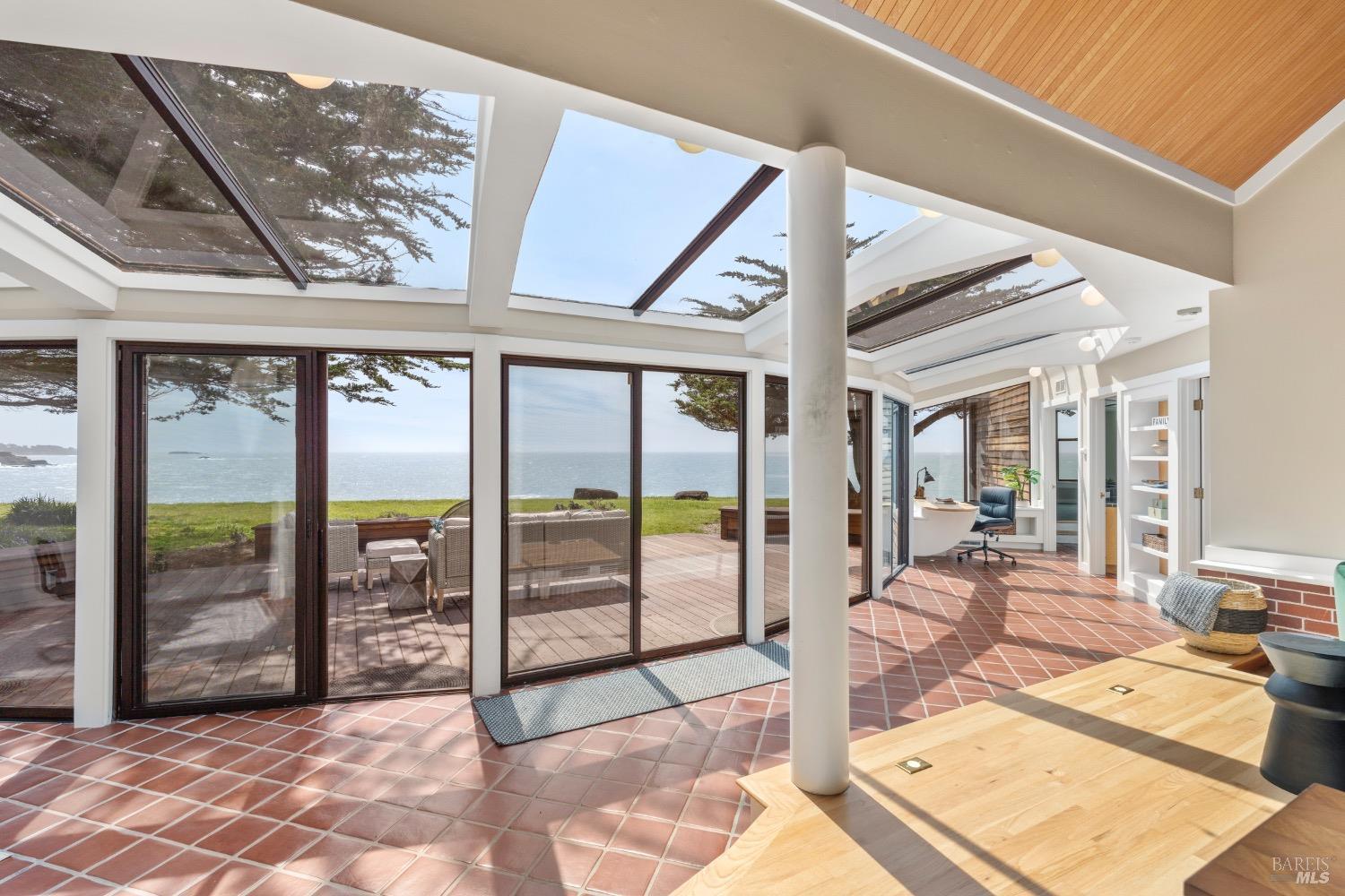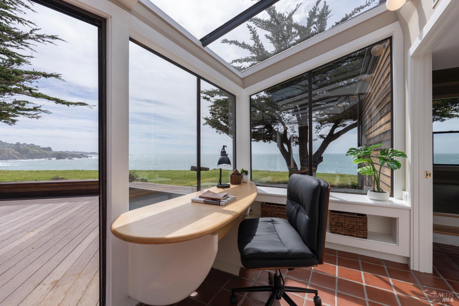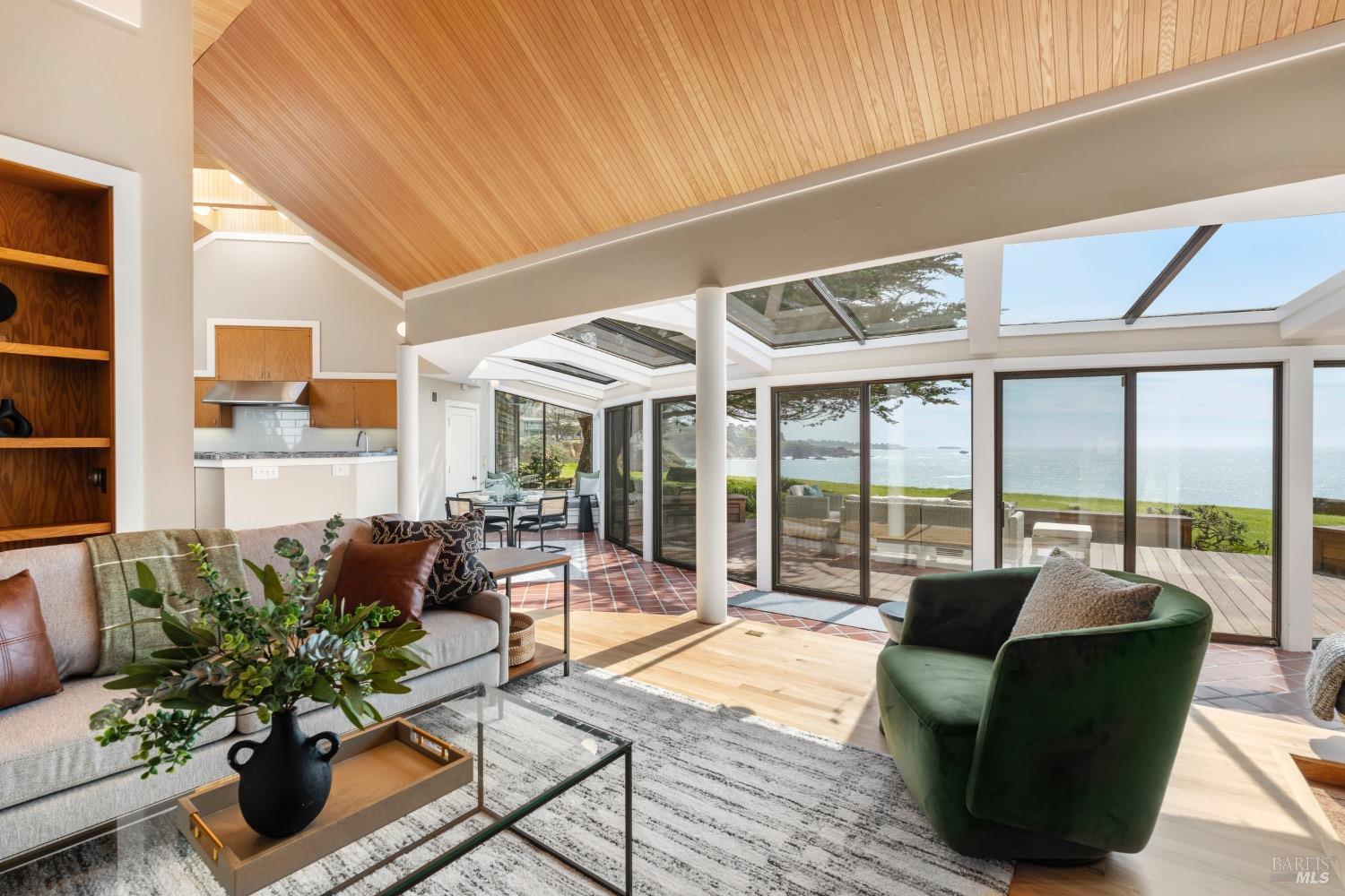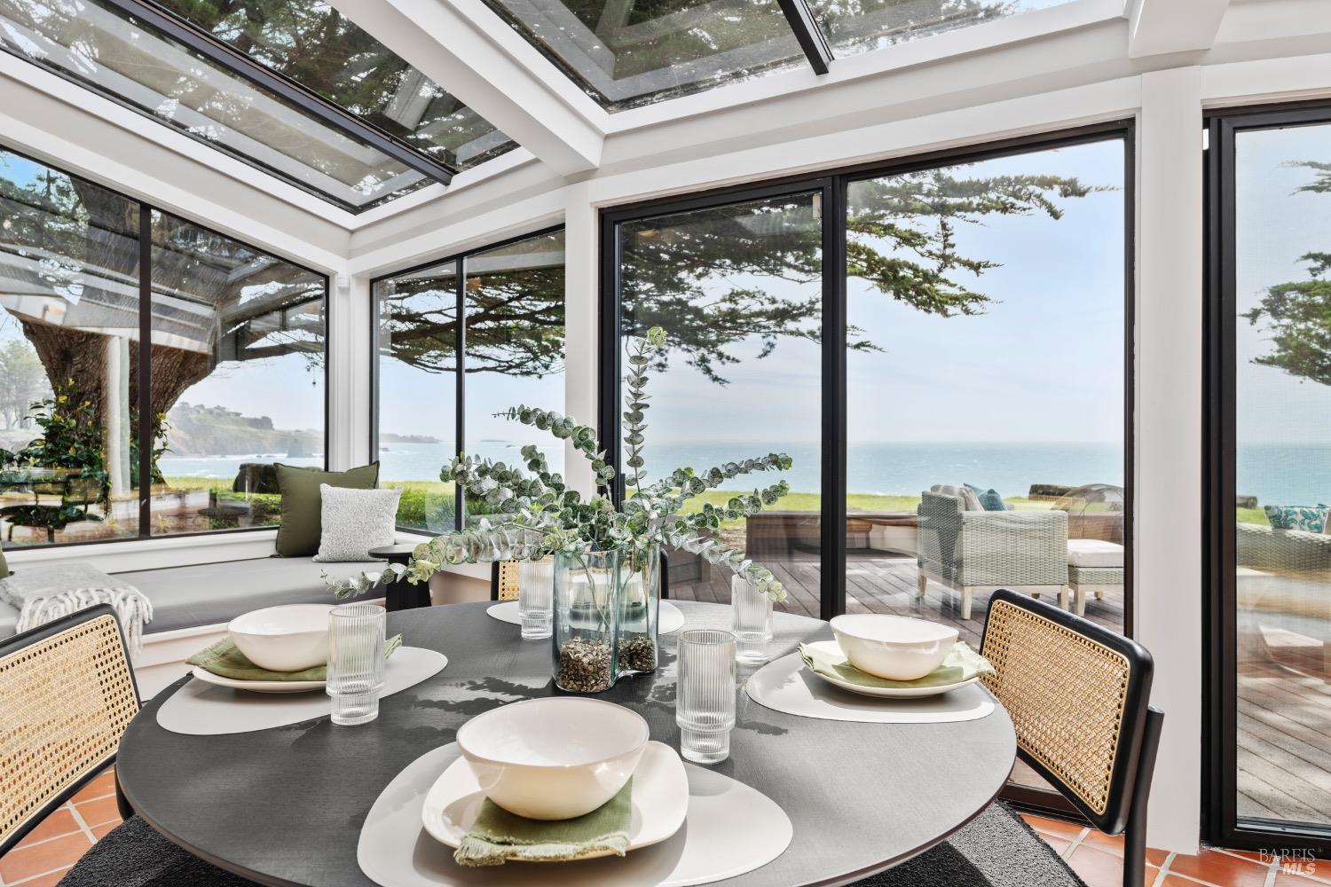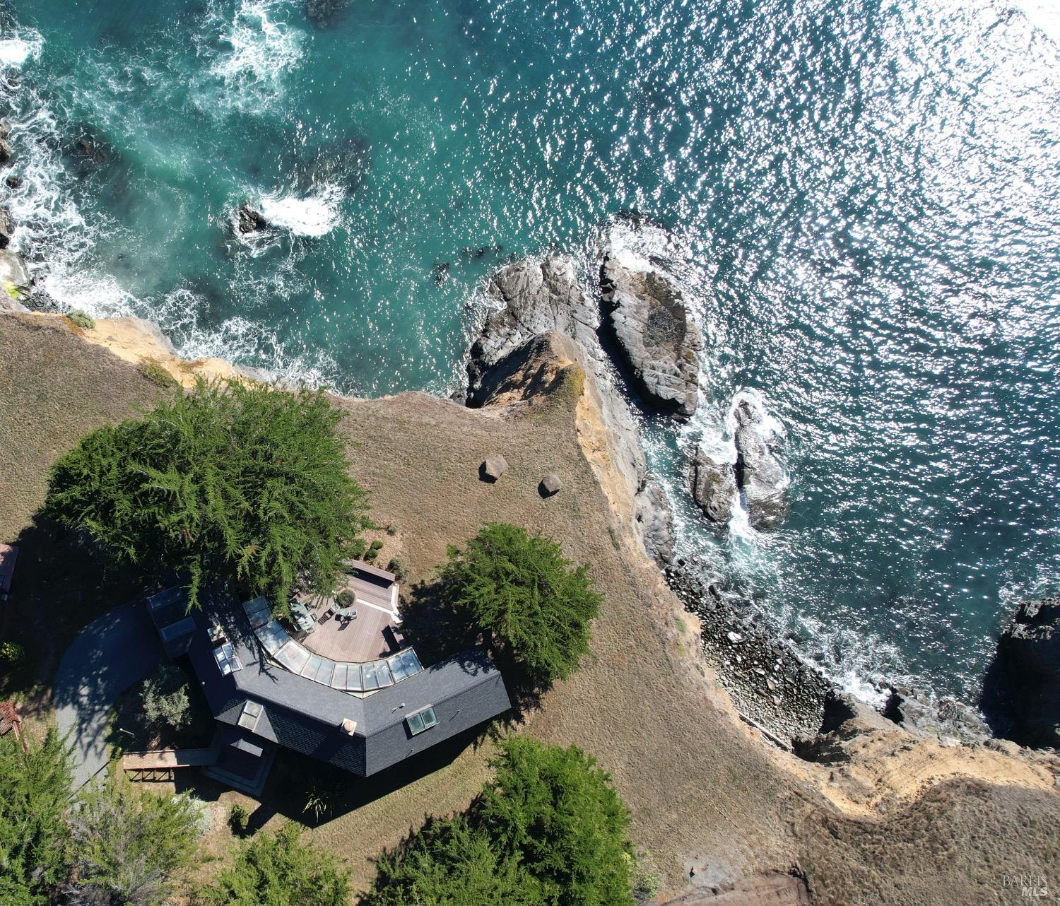 This 0.76-acre premium oceanfront location and residence offers a south coast orientation with views of the incredible surf. When you step into this beautiful home, you will be drawn to the expansive wall of glass sliding doors that open directly onto a spacious deck. The sights and sounds of the ocean will instantly engage your senses, bringing you to a calm state of mind. Obie Bowman designed this passive solar home with a solarium, known as the Pozzi Residence, for a retired developer and his wife as a second home. It is constructed with a wooden frame and redwood bevel siding. The solarium floor features tile on concrete over a continuous rock bed. Cherished and maintained by the second owners as their full-time home for the last 25 years, this property includes a remodeled kitchen, recently refinished timeless red oak wood floors, and pressure-washed and oiled redwood siding. An established cypress hedgerow on the windward side of the property offers protection from the wind-swept point. A caricature of a classical entry whimsically recalls the original owner's admiration for classical architecture. From this site, you can observe migrating whales, native birds, and grazing deer. Plan your forever escape to the Mendocino Coast. Come make 47061 Big Gulch home!