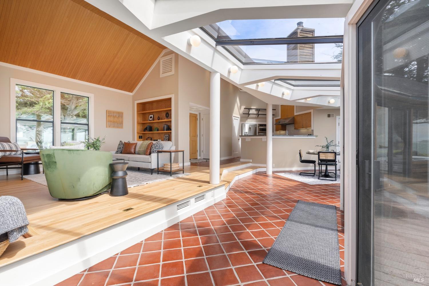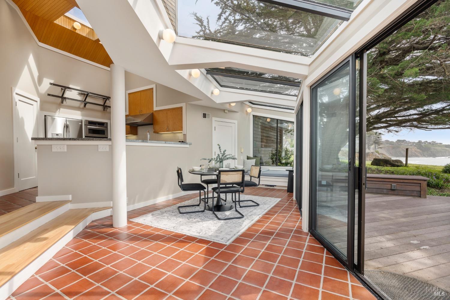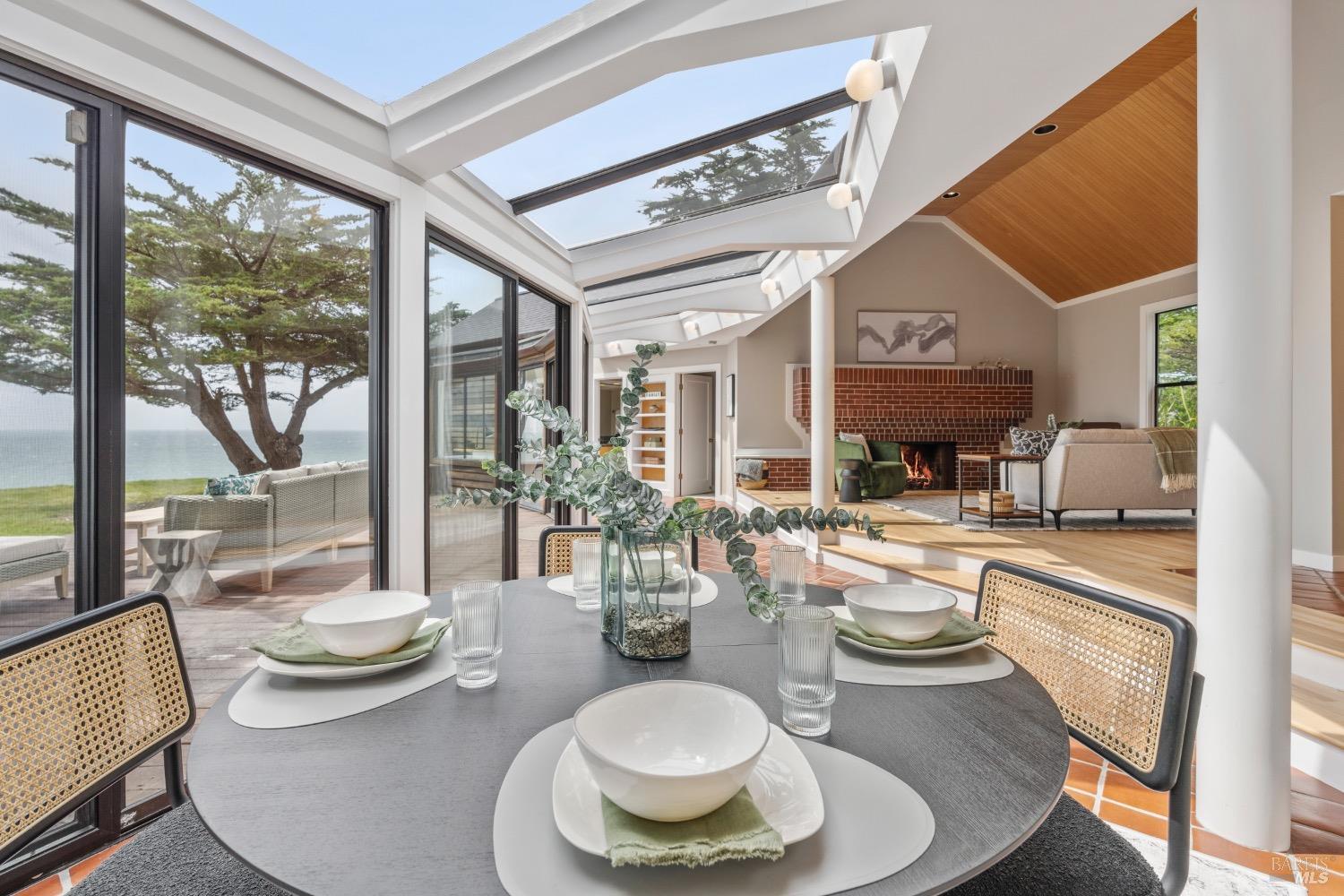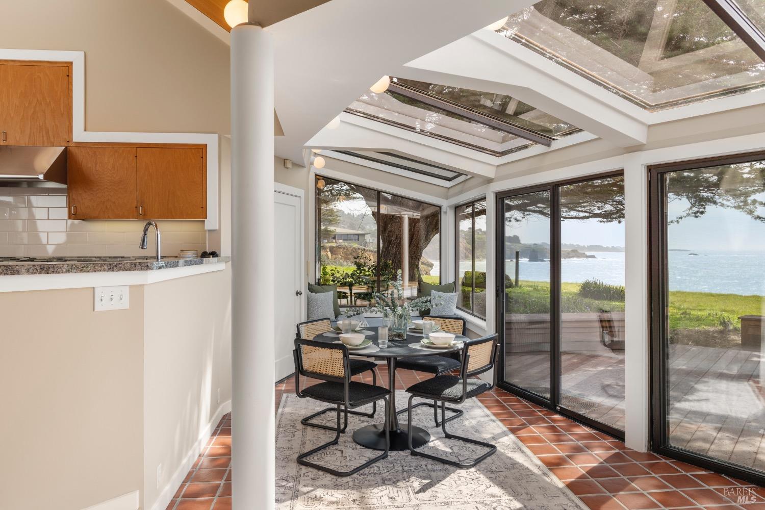 This 0.76-acre premium oceanfront location and residence offers a south coast orientation with views of the incredible surf. When you step into this beautiful home, you will be drawn to the expansive wall of glass sliding doors that open directly onto a spacious deck. The sights and sounds of the ocean will instantly engage your senses, bringing you to a calm state of mind. Obie Bowman designed this passive solar home with a solarium, known as the Pozzi Residence, for a retired developer and his wife as a second home. It is constructed with a wooden frame and redwood bevel siding. The solarium floor features tile on concrete over a continuous rock bed. Cherished and maintained by the second owners as their full-time home for the last 25 years, this property includes a remodeled kitchen, recently refinished timeless red oak wood floors, and pressure-washed and oiled redwood siding. An established cypress hedgerow on the windward side of the property offers protection from the wind-swept point. A caricature of a classical entry whimsically recalls the original owner's admiration for classical architecture. From this site, you can observe migrating whales, native birds, and grazing deer. Plan your forever escape to the Mendocino Coast. Come make 47061 Big Gulch home!