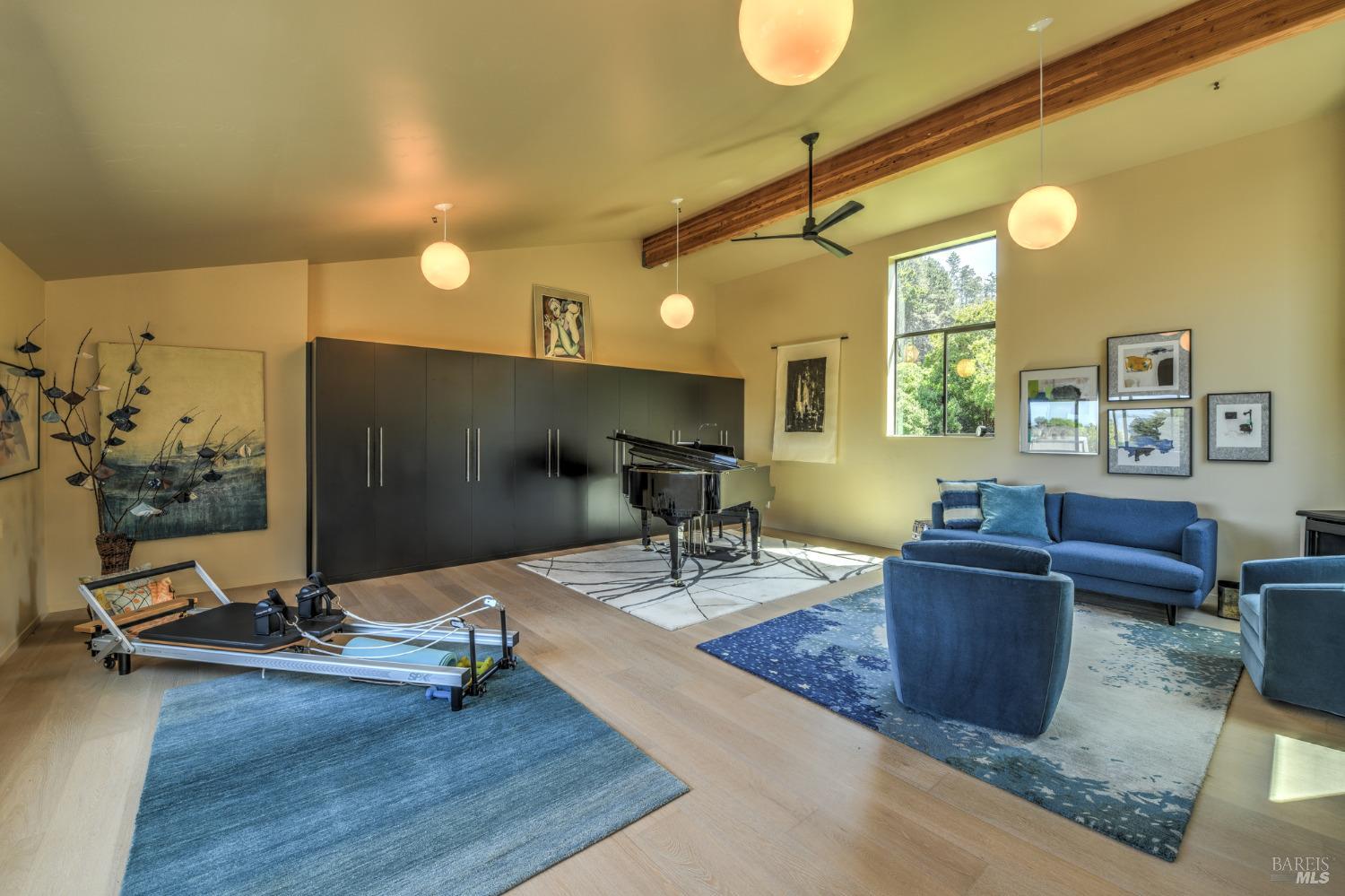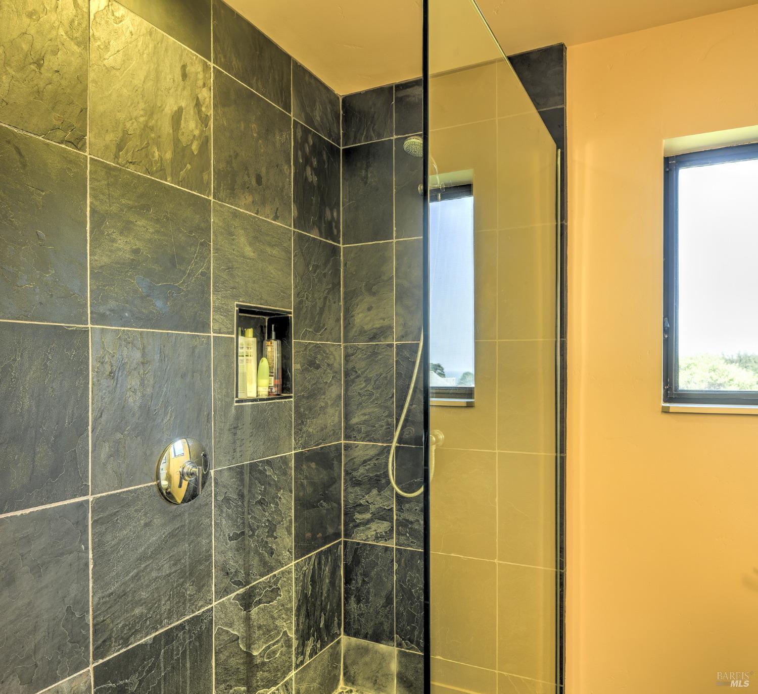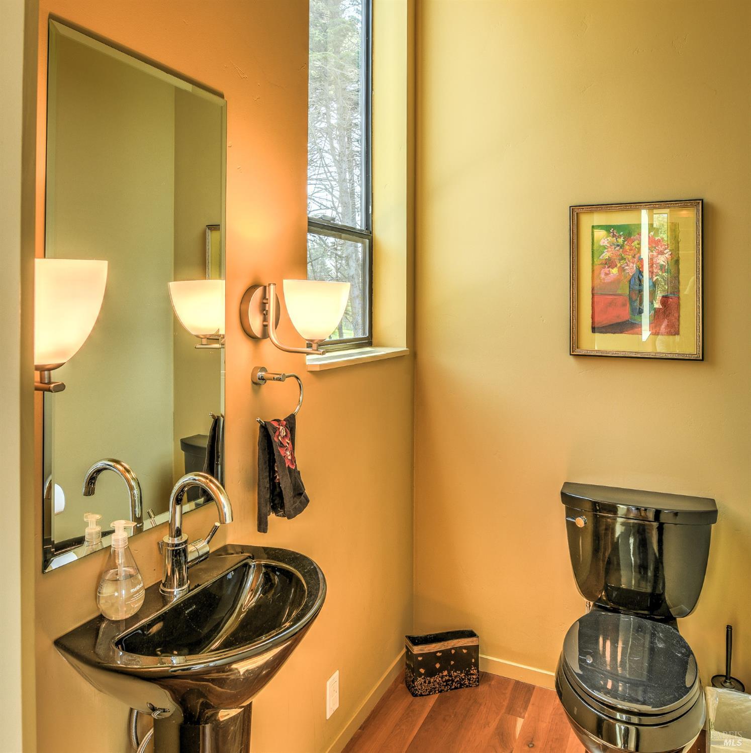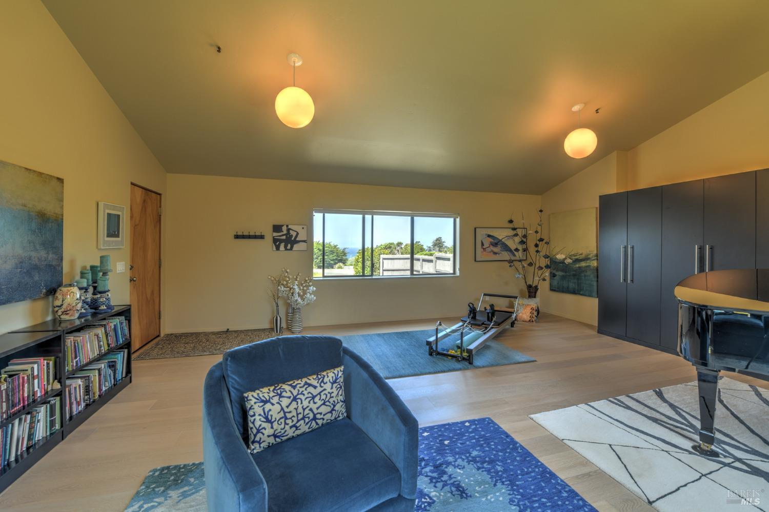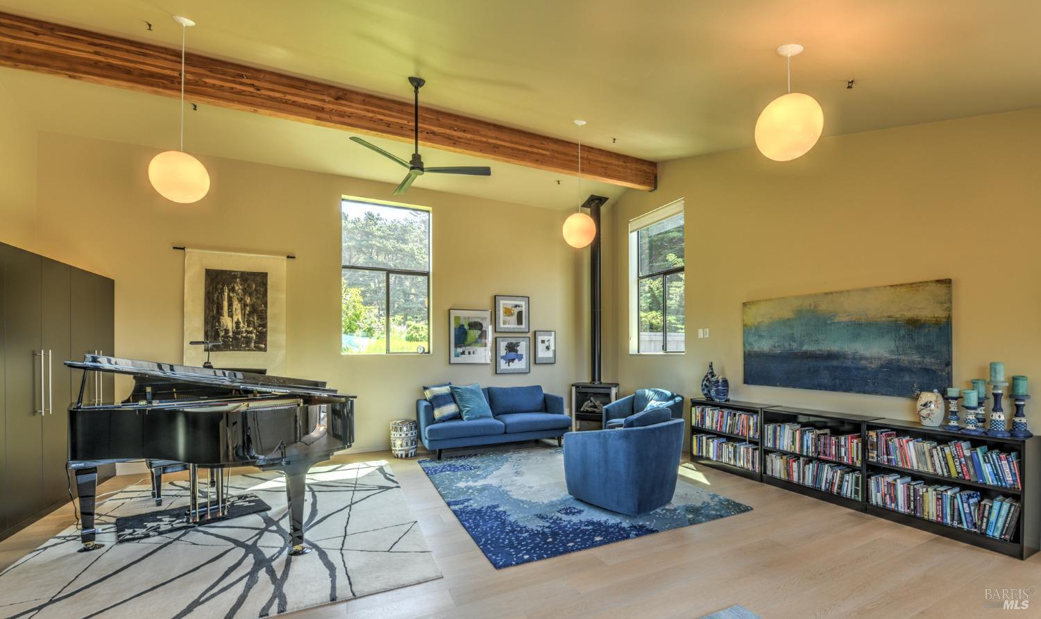 This stunning and meticulous 2 en-suite bedrooms, Brodie designed home is an architectural masterpiece. From the moment you walk down the private entrance path, enter the lovely glass front door, you are greeted by a lovely rock garden, a sweeping ocean view, and a striking contemporary open staircase. Two private en-suites are sited on each side of this entrance and provide space, light and gas fireplaces which contribute to a warm and welcoming ambience. The upper floor Great Room accentuates this level of detail and aesthetic, where large windows, sliding doors to a private deck, built in window seats all lend itself to a coastal experience where ocean, forest and sunset views dominate your visual sphere. The chef's kitchen houses the finest in cabinetry and appliance choice and a huge window captures magnificent forest views to the east. A separate studio space entertains many possibilities - guest room, music room, artist studio. A tranquil escape from city life, this unique Sea Ranch home offers exceptional full time living, vacation rental potential, and 2nd home enjoyment where hiking, whale watching, cooking, reading, and sunsets abound, where ending the day relaxing in a private outdoor spa, watching the stars and listening to the sea is as good as it gets.