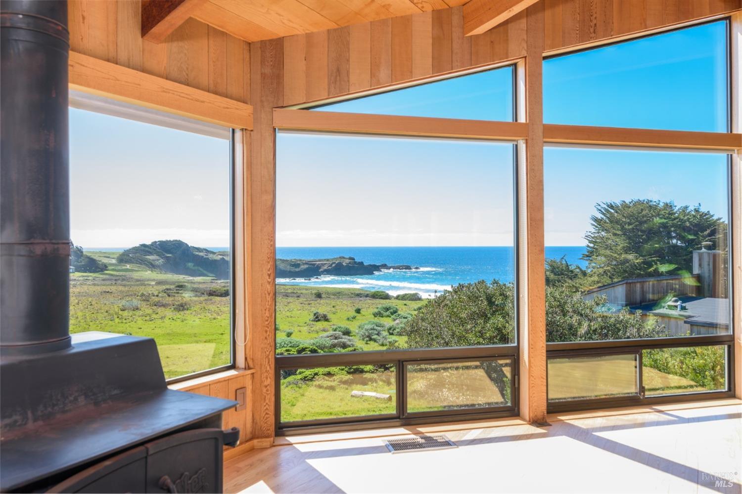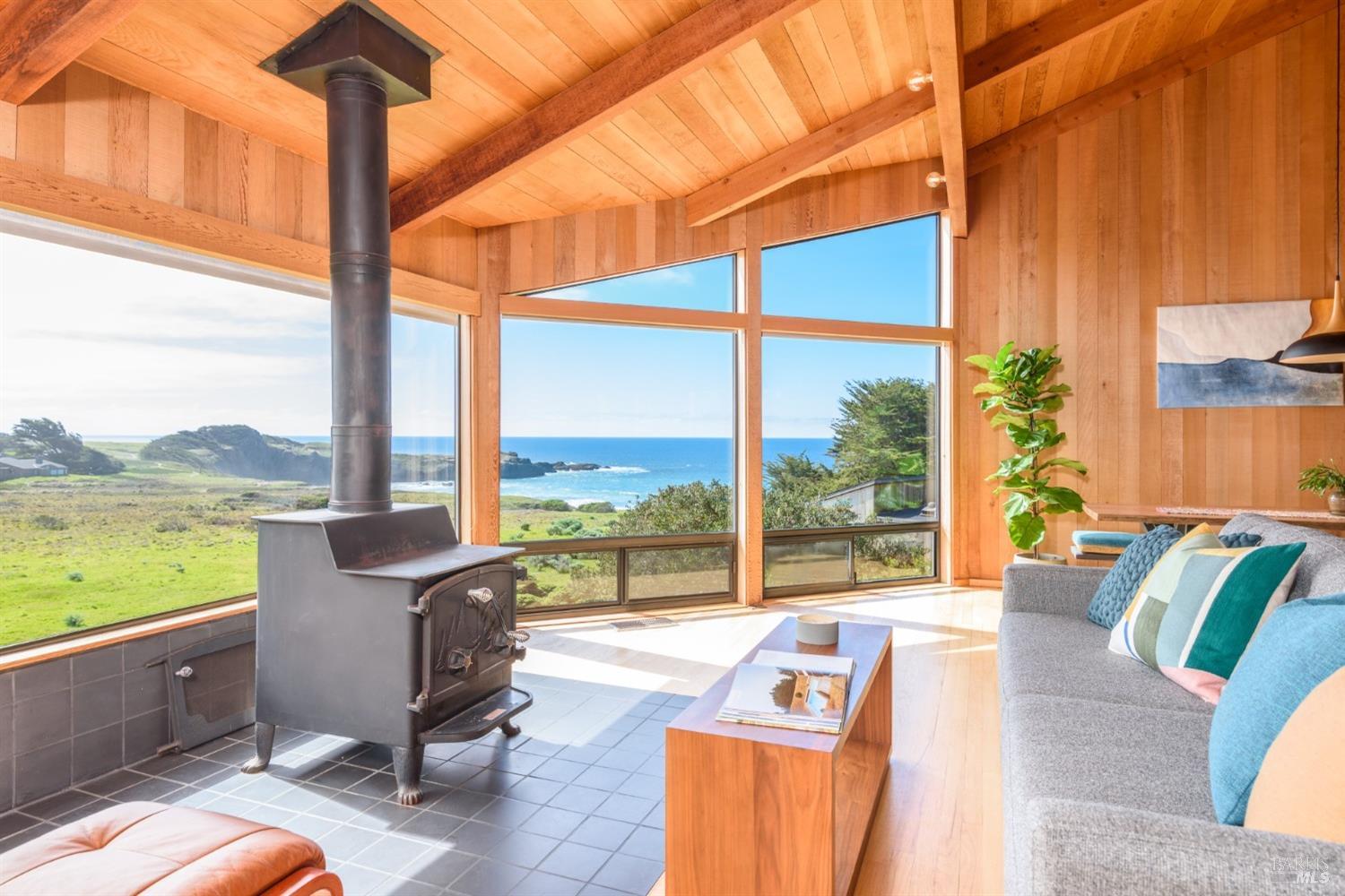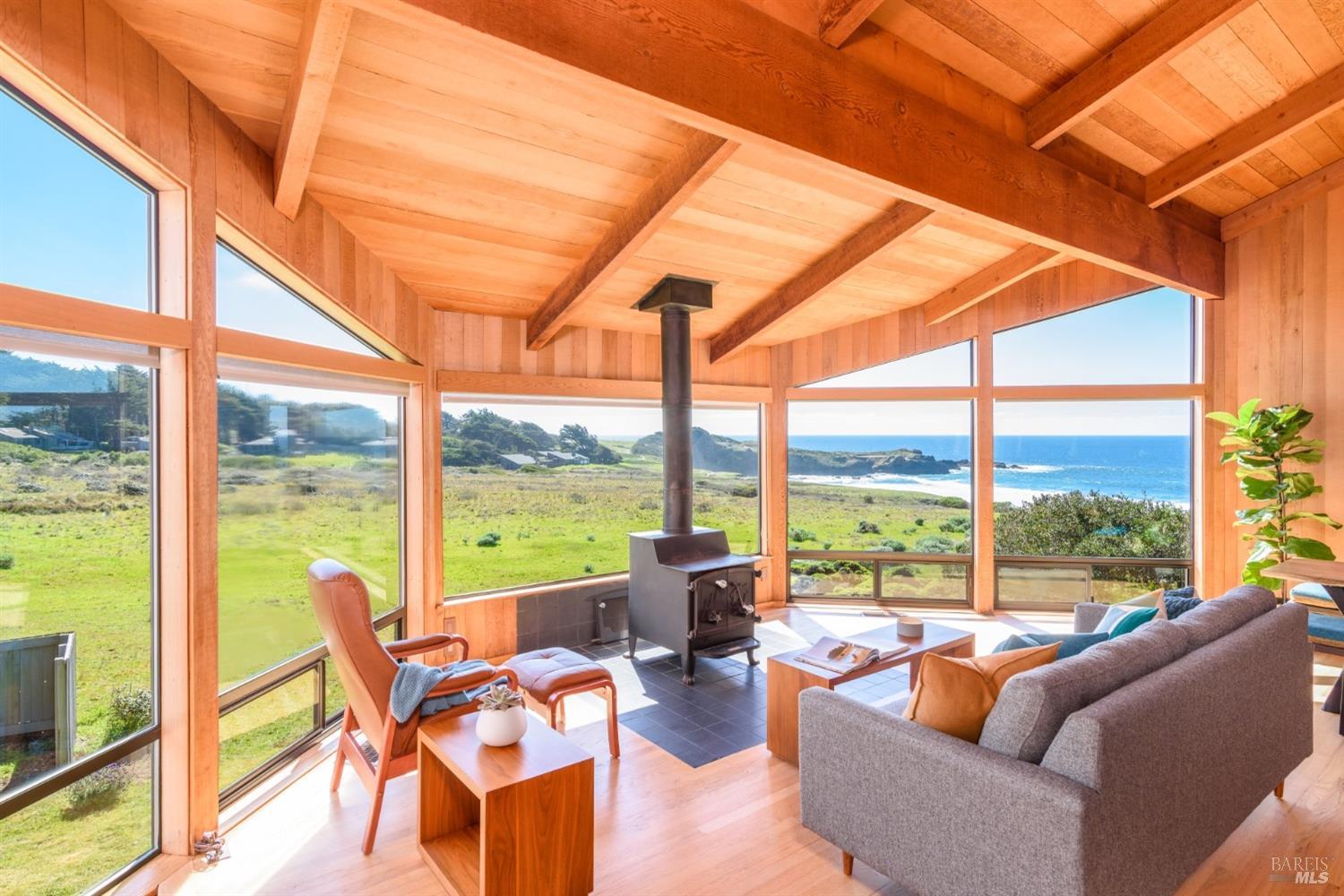 Situated amidst the expansive open West Meadow, offering unparalleled access to the natural splendor of The Sea Ranch. Obie Bowman's, FAIA timeless design captures the essence of living lightly on the land. This 3-bed/2-bath home features unobstructed vistas of Black Point Beach & the Pacific Ocean beyond. Step into the soaring great room, suffused with natural light, oak floors, open beamed ceiling & a cozy wood-burning stove. The open galley kitchen seamlessly connects to the living & dining areas. It offers not only functionality but also a perfect setting for entertaining while enjoying the dramatic backdrop of sea. Breathtaking views extend from the great room to the primary suite, where large windows welcome in the coastal panorama, creating an inviting retreat. Views grace the guest room, while the bunk room offers a whimsical yet functional retreat for guests. Step outside to the ocean-facing deck & experience the profound sense of peace & rejuvenation that comes from being embraced by the coastal landscape, where every moment is a gift for the soul. A rare opportunity to own a home in this coveted location, where the timeless allure of Sea Ranch living awaits. Access to Black Point Beach, Moonraker Recreation Center & The Sea Ranch Lodge at your doorstep.
