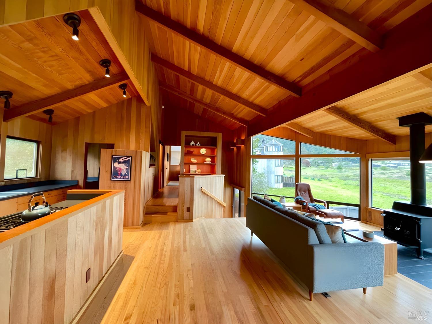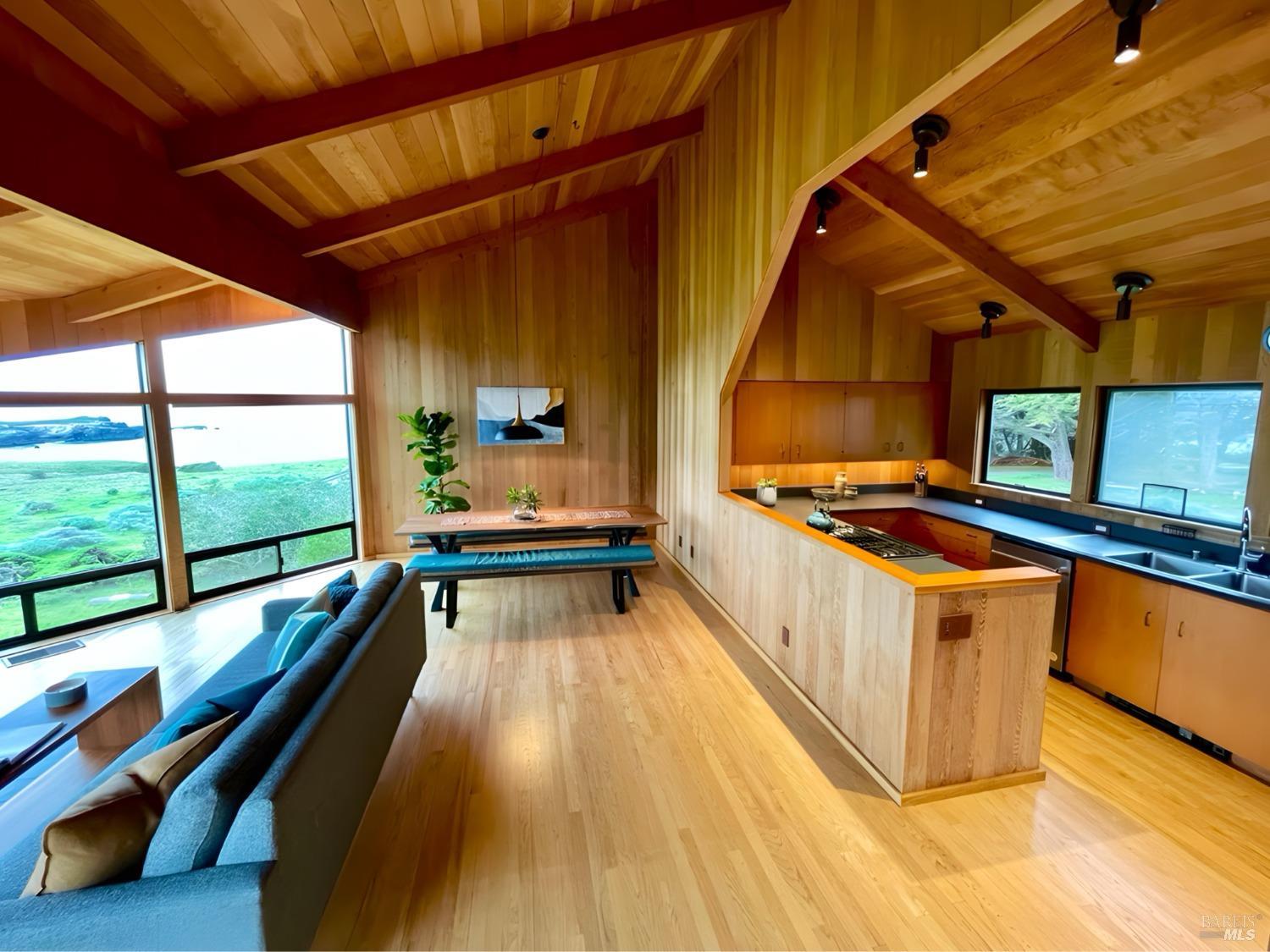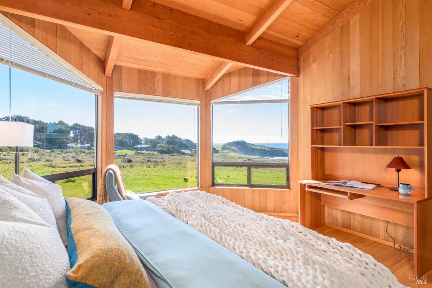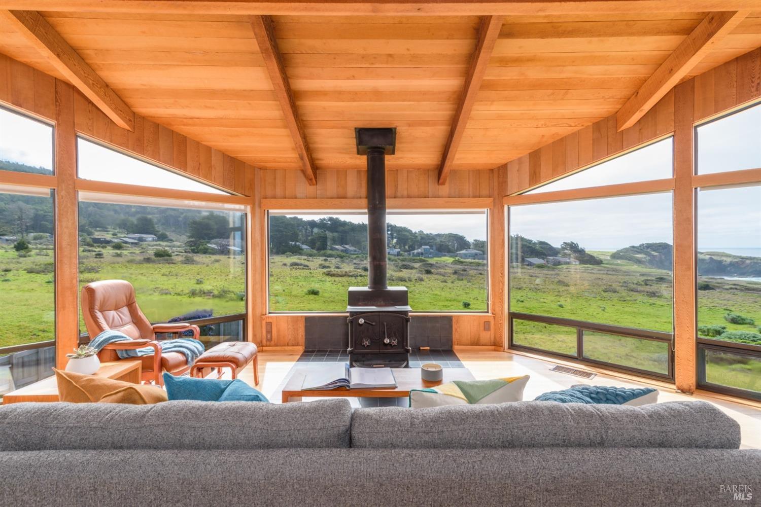 Situated amidst the expansive open West Meadow, offering unparalleled access to the natural splendor of The Sea Ranch. Obie Bowman's, FAIA timeless design captures the essence of living lightly on the land. This 3-bed/2-bath home features unobstructed vistas of Black Point Beach & the Pacific Ocean beyond. Step into the soaring great room, suffused with natural light, oak floors, open beamed ceiling & a cozy wood-burning stove. The open galley kitchen seamlessly connects to the living & dining areas. It offers not only functionality but also a perfect setting for entertaining while enjoying the dramatic backdrop of sea. Breathtaking views extend from the great room to the primary suite, where large windows welcome in the coastal panorama, creating an inviting retreat. Views grace the guest room, while the bunk room offers a whimsical yet functional retreat for guests. Step outside to the ocean-facing deck & experience the profound sense of peace & rejuvenation that comes from being embraced by the coastal landscape, where every moment is a gift for the soul. A rare opportunity to own a home in this coveted location, where the timeless allure of Sea Ranch living awaits. Access to Black Point Beach, Moonraker Recreation Center & The Sea Ranch Lodge at your doorstep.