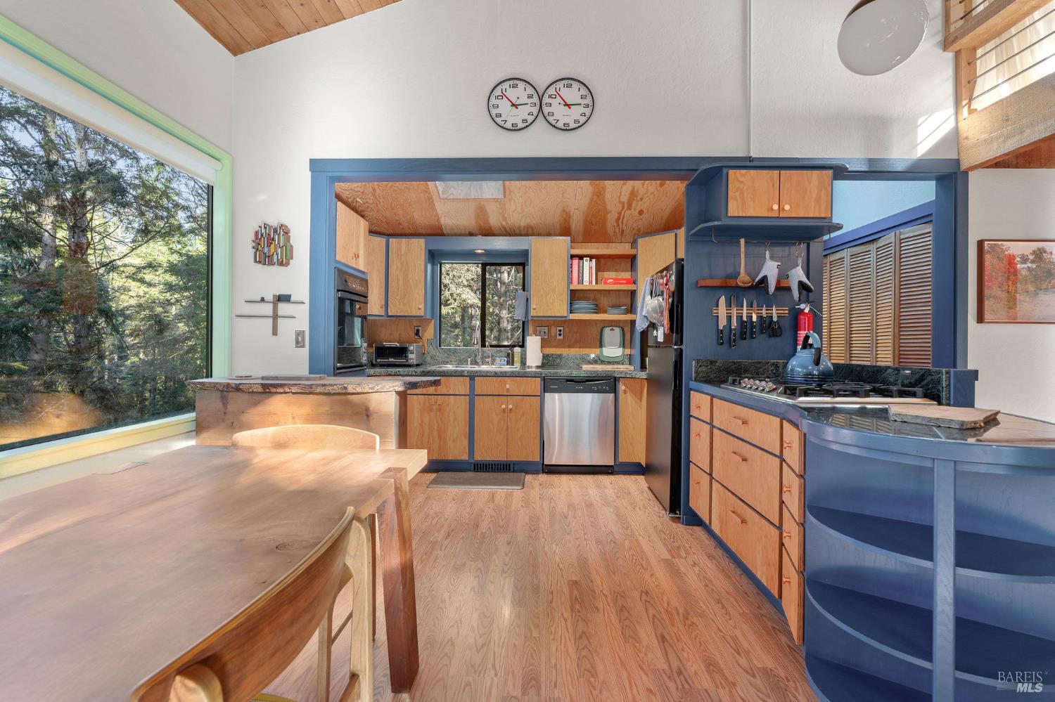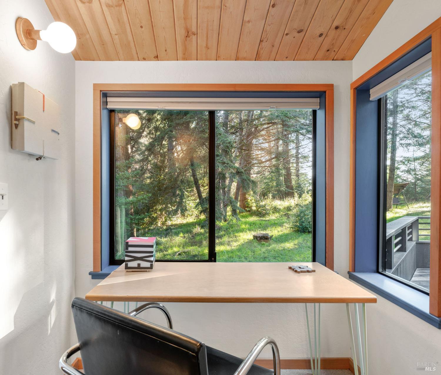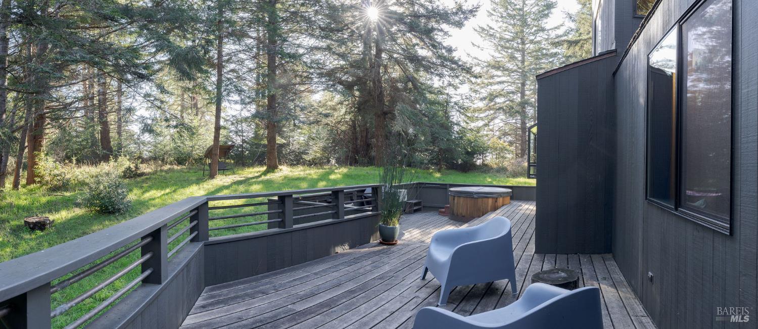 Welcome to 880 River Beach Road at The Sea Ranch where you will discover unparalleled privacy and refuge surrounded by towering fir trees. This home, designed by renowned architect Obie Bowman (1978) with an addition by Dan Levin (2003), blends comfort and craftsmanship, featuring custom built-in shelving and cabinetry. Its setting is tucked just behind the ridge, basking in the sun at the edge of the forest. The main room has an open floor plan framed by four enormous windows that make the forest view feel expansive. This thoughtfully designed home offers privacy, natural beauty, and modern comfort. Bedrooms and bathrooms are positioned at opposite ends of the house for quiet separation. A small third room could be an office or an extra bedroom. Above the main room is a loft area with sweeping views, offering more options for hosting guests. The living room and bedrooms open onto a spacious deck, perfect for outdoor dining, relaxing in the hot tub, or grilling under the trees. The private backyard flows seamlessly into the surrounding forest, creating a tranquil connection to nature that defines the Sea Ranch experience. The ample two-car garage has updated LED lighting and a workbench, perfect for a gym, a studio, or both. This home is also a successful Airbnb with a proven track record. Rent the house today and get a good feel for what it is to live here. From this location high on the ridge within the world renowned Sea Ranch, you can hike from the redwood forest to the sea, kayak on the Gualala South Fork from the magic Hot Spot, bike on miles of private roads, take a swim at one of 3 recreation centers, relax in the sauna, play tennis or pickle ball. Come visit! In 2023, all the siding on the front wall, wrapping from the west corner to the entry, was replaced. All new sheathing and flashing around picture windows on the exterior we installed, and new interior sills. New copper ventilation panels were installed around the house's ample crawl space. All new redwood decking was installed, and a slate entry was added. The house was also power washed, re-stained and sealed. Refinished the hot tub and installed a new cover. A vapor barrier was installed under the house. New roof, including vents along the peak and new skylights. All copper flashing and copper gutters with gutter guards.